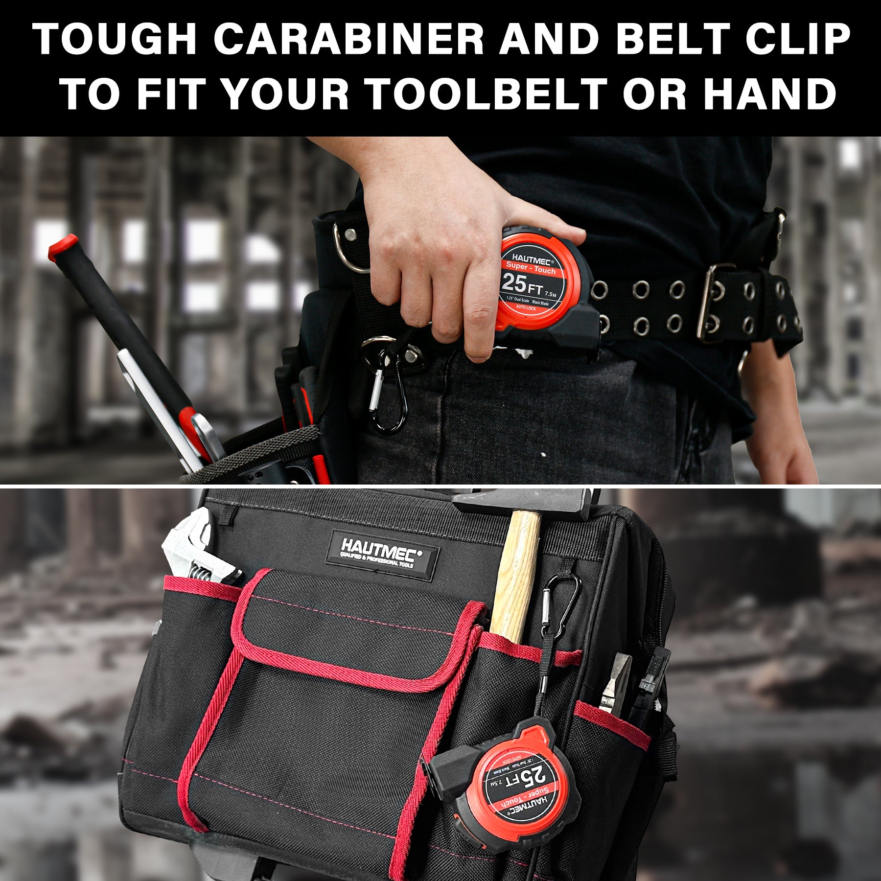 HAUTMEC Pro 25-Foot Tape Measure, 1.25-Inch Wide Carbon Steel Blade, Button Lock, Magnetic Hook, Dual-Sided Imperial/Metric Scale – Heavy-Duty for Contractors and Engineers, HT0283-TM
