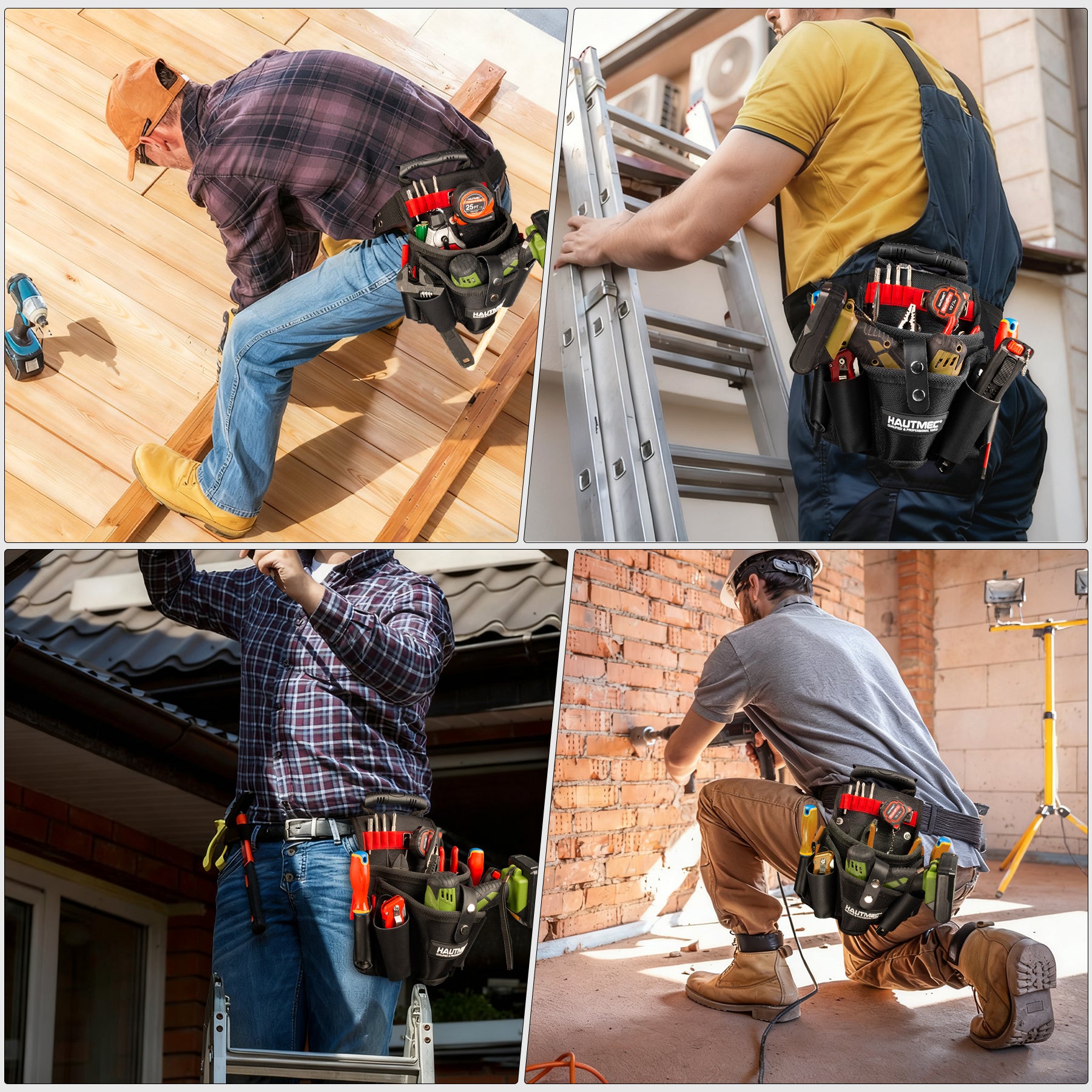 ● 【Engineered for Professionals】Double-stitched seams, riveted stress points, and dual-button safety lock ensure maximum toughness. Perfect for carpenters, electricians, technicians, and builders.