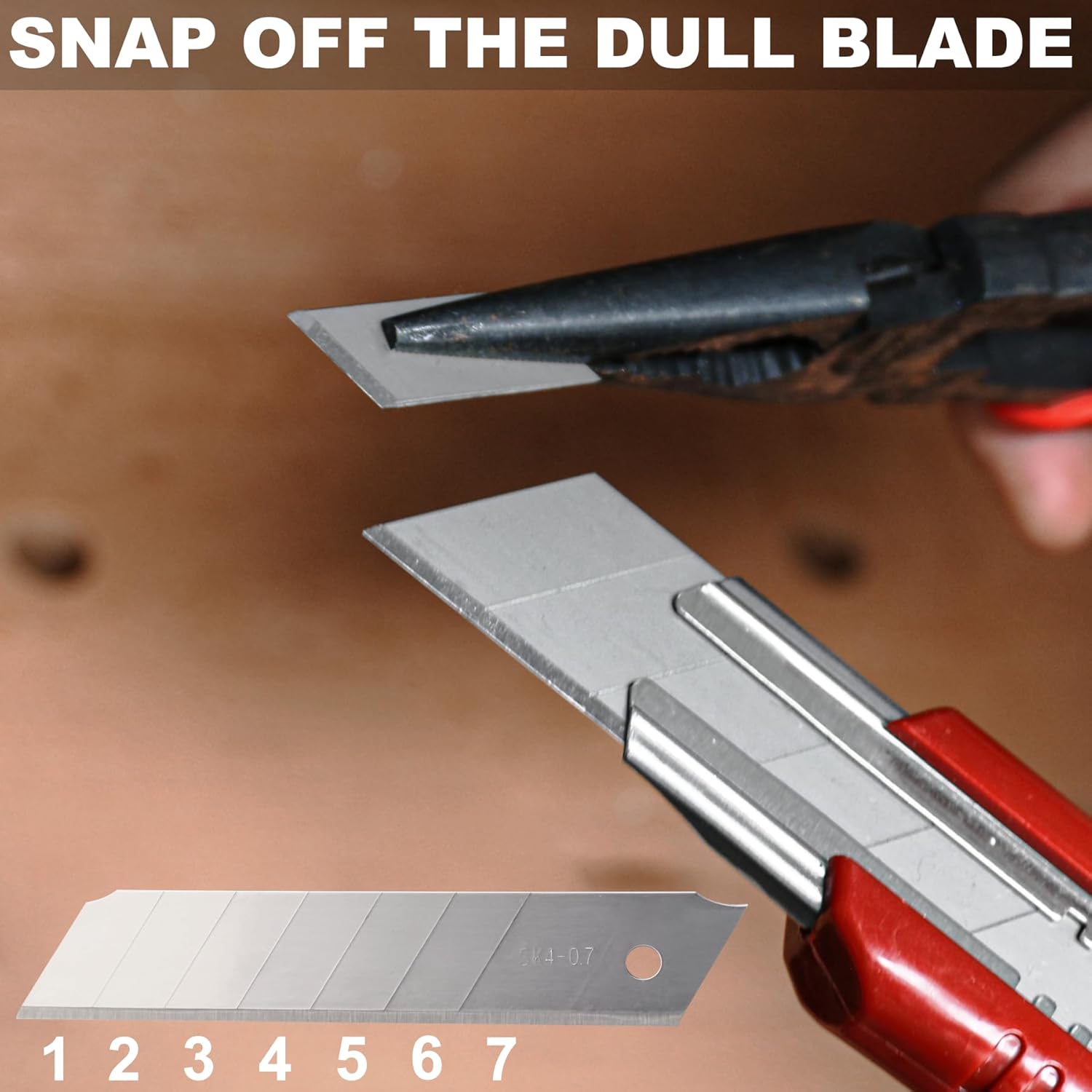 - 【Quality Sharp Blade】Blades play a vital role in knives. This knife has 3pcs 25mm Extra Heavy-Duty SK4 blades which are greater in edge retention, thickness, sharpness and durability than traditional blades, effectively cutting through a variety of materials like drywall, cardboard, cartons, leather, carpets and more