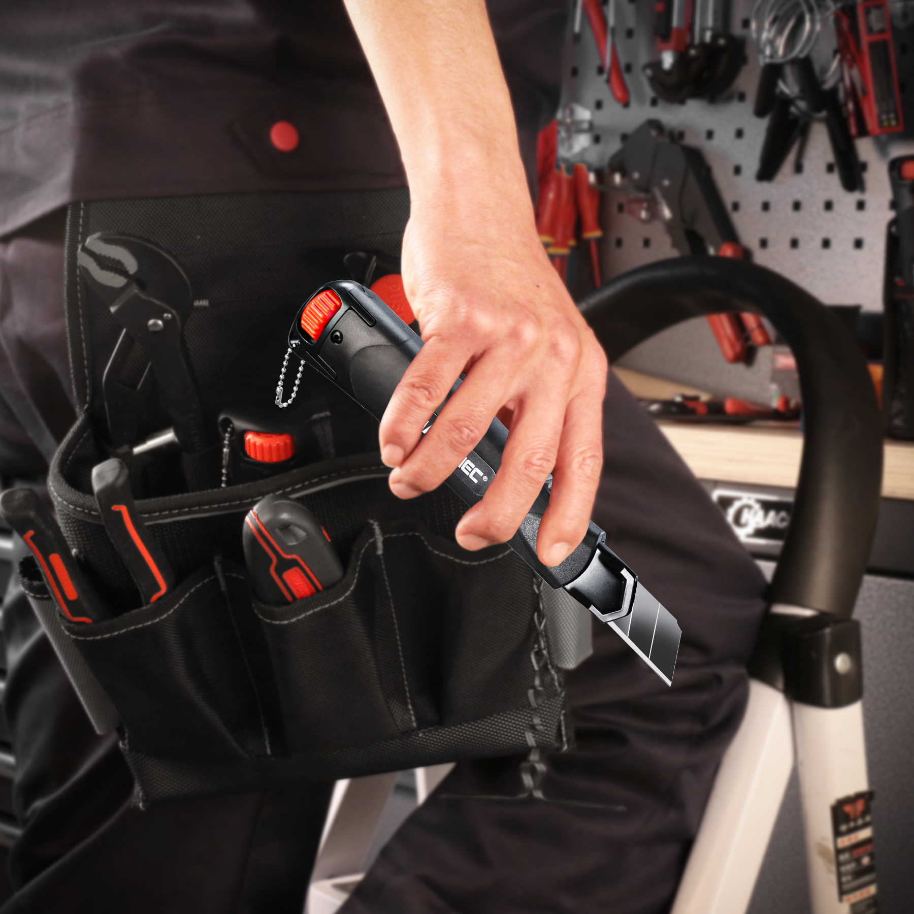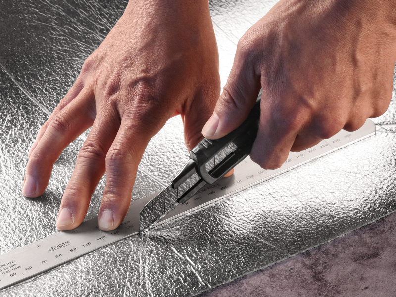 - DOUBLE LOCK MECHANISM - Upgraded safety system with an autolock slider to adjust cutting depth and a red rotary knob for blade fixing and change. The slider customizes the cutting depth and the blade will be locked in the required position automatically. The rotary knob prevents the blade from accidental slipping during use like a ratchet lock