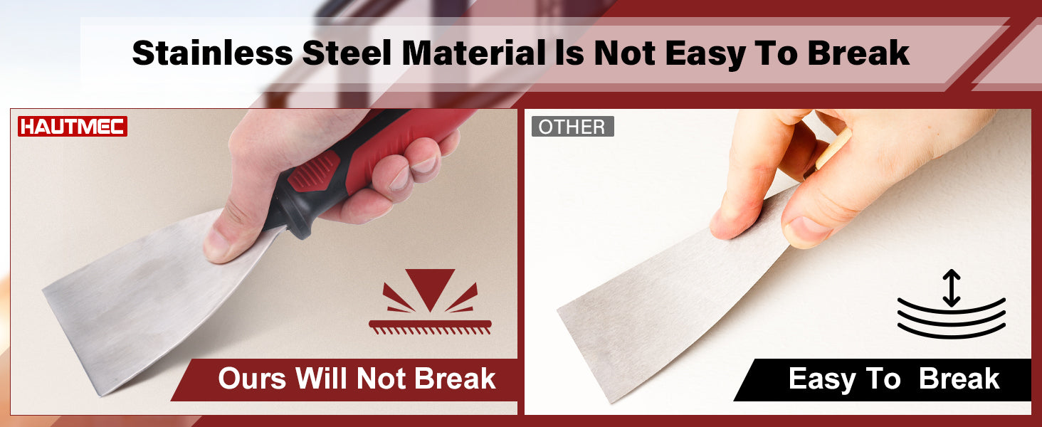- Anti-Rust Quality: Compared with carbon steel material, the stainless steel material is far stronger in terms of corrosion resistance. The rust-free blade makes you more free to work in scraping jobs; wipe clean after each use to prevent build-up and maintain performance