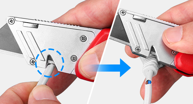 - 【All-in-One Utility Tool】Includes a built-in wire stripper, Phillips & flathead screwdrivers, plus 2 SK4 spare blades in handle storage – a true multitasker for your kit