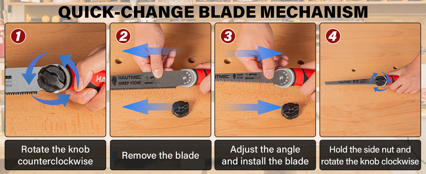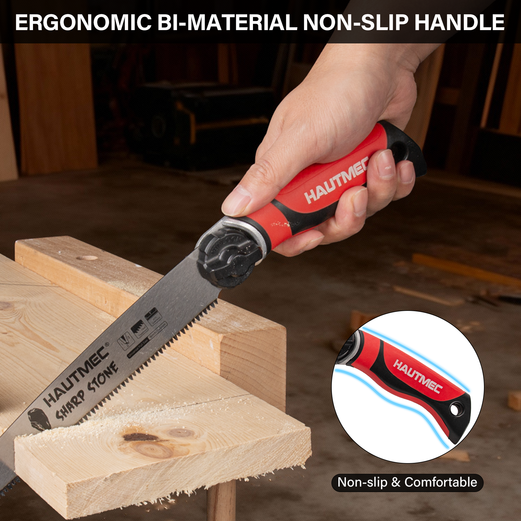 HAUTMEC 3-In-1 Japanese Pull Saw, Replaceable Blade Handsaw with 4-Angle Cutting, Pro Woodworking Cutting Tool (9.5-Inch 17TPI Fine-Cut, 9-Inch 9TPI Quick Cut, 6.5-Inch 6TPI Jab Saw) – HTHDM25050