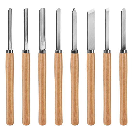 HAUTMEC Professional Wood Turning Chisel 8 pcs Set, Lathe Chisel Set