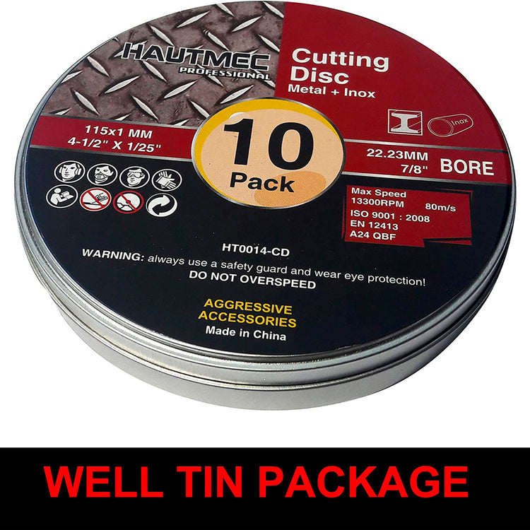 HAUTMEC Expert Grade Cut Off Wheels 4-1/2" x .04" x 7/8", Thin Grinding Disc for Cutting Steel and Ferrous Metals, 10 Pack General Purpose Cut Off Blade for Most Angle Grinder HT0014-CD