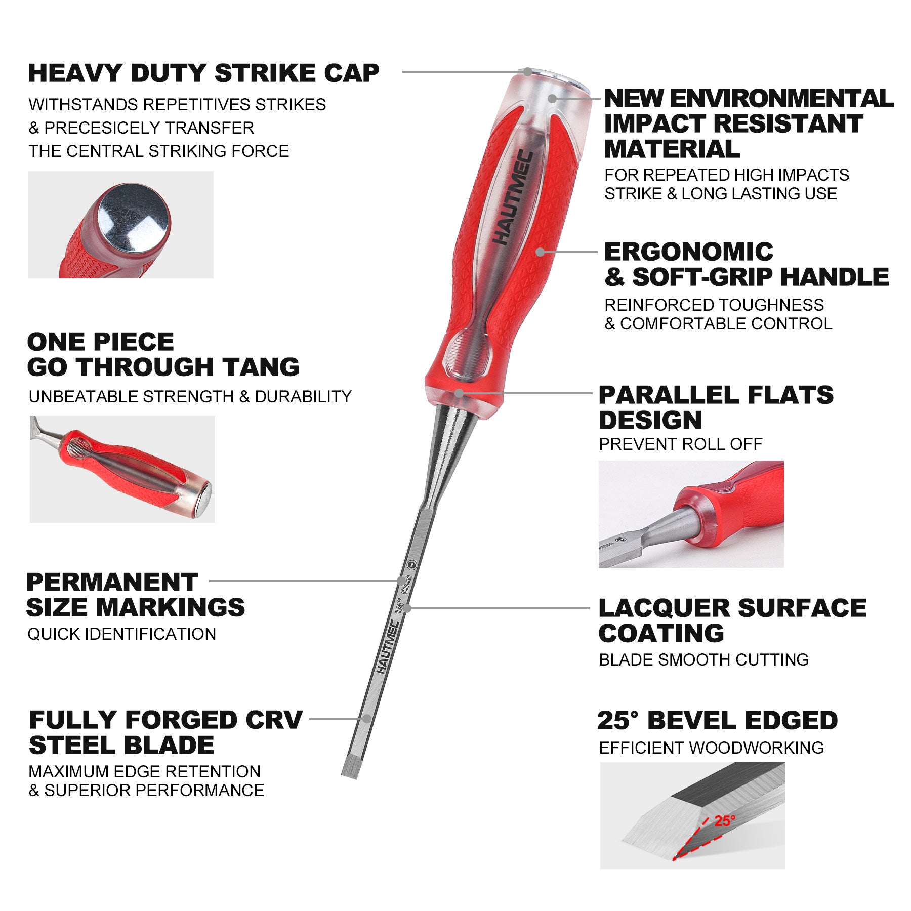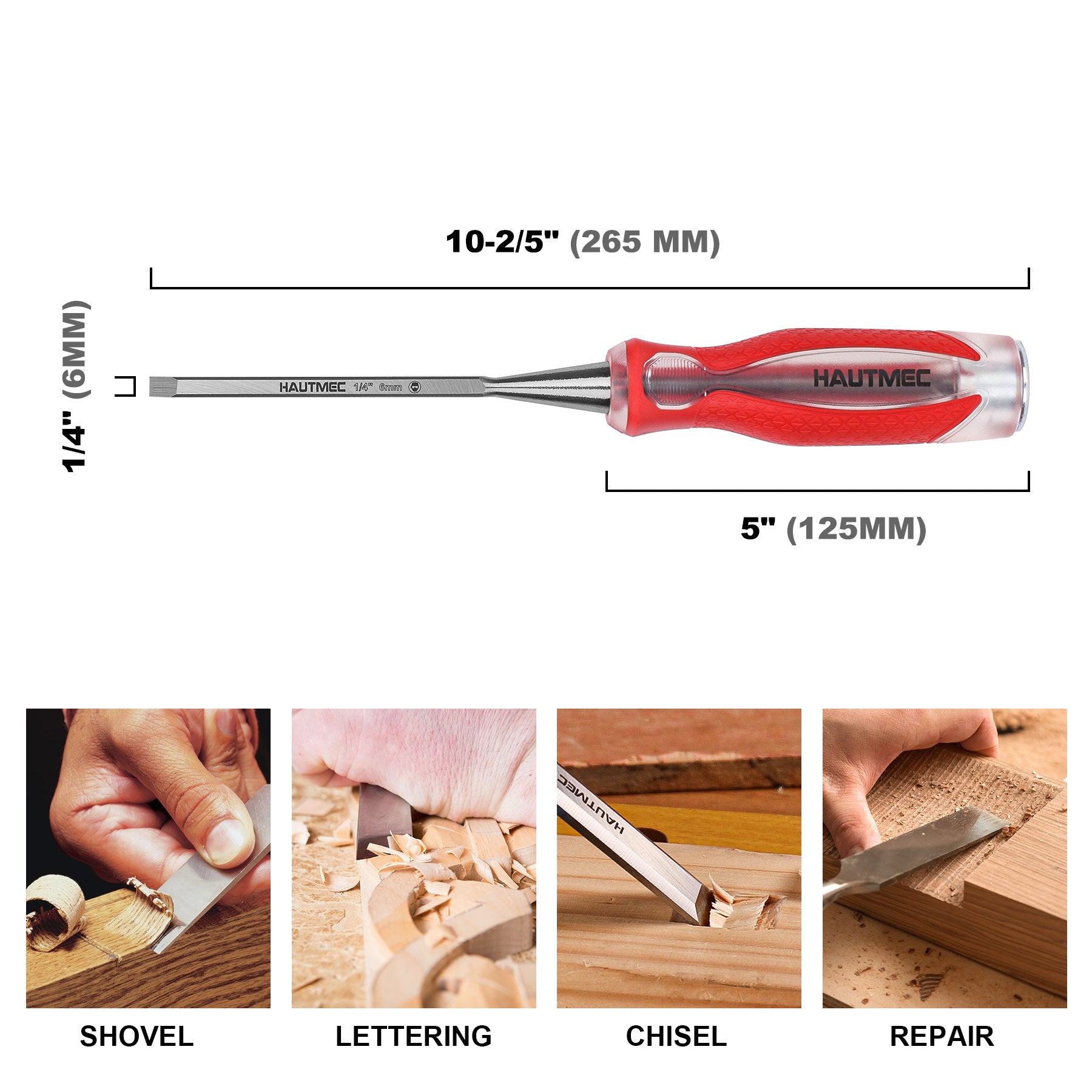 HAUTMEC 1/4" High Impact Wood Chisel for Woodworking, Drop-Forged CRV Steel, Beveled Edge Blade, Ergonomic Handle Wood Chisel for Carpentry,Wood Carvers, HT0359