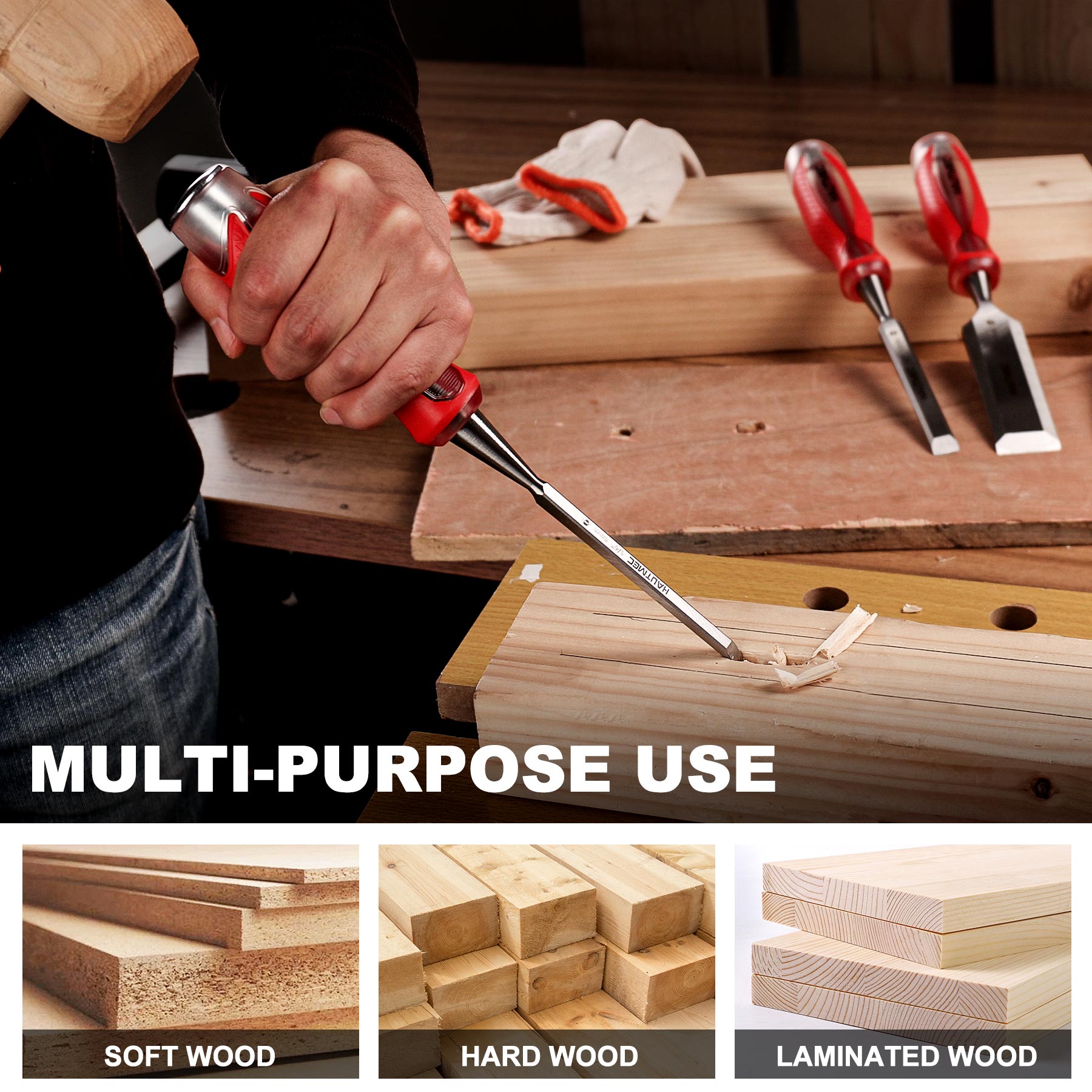 - Industry standard 25°Bevel edge for woodworking carving multi-purpose use, suitable for all soft wood, hard wood and laminated wood. Professional carpenter tools chisel for carving wood, solid wax, soft plastic, art crafting & more.
