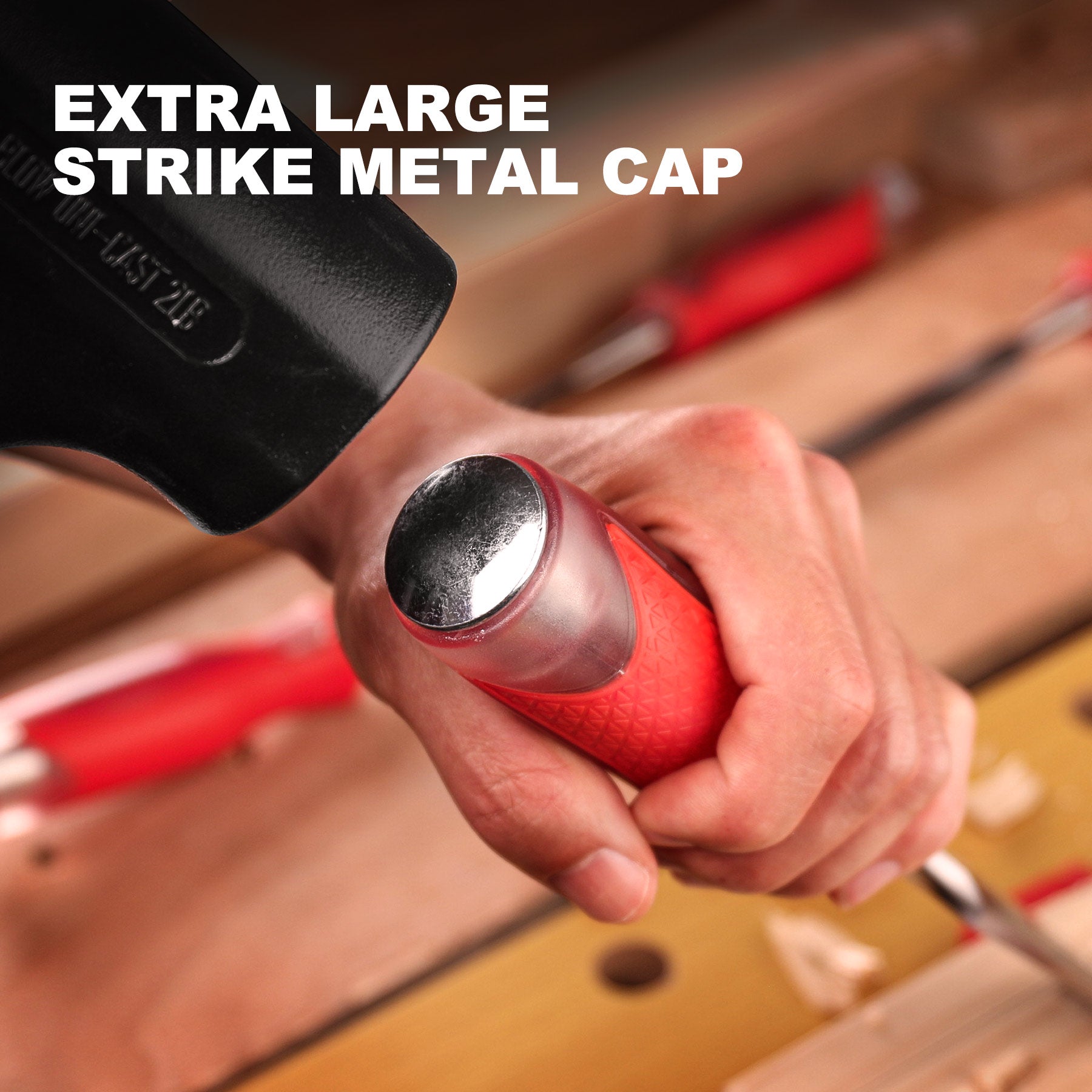 - Extra-large strike cap withstands repetitive hammer strikes and can be hit from multiple angles