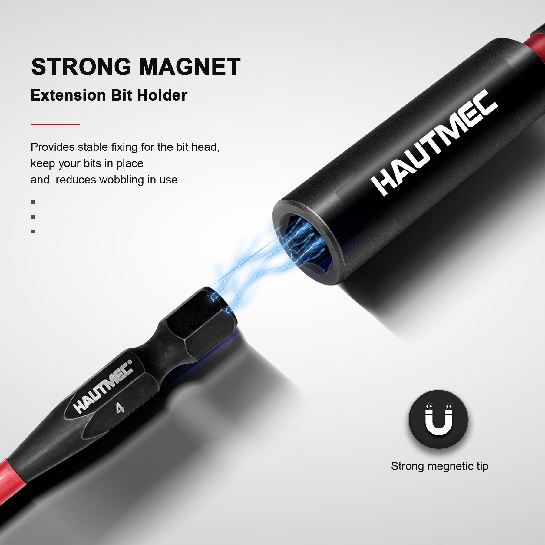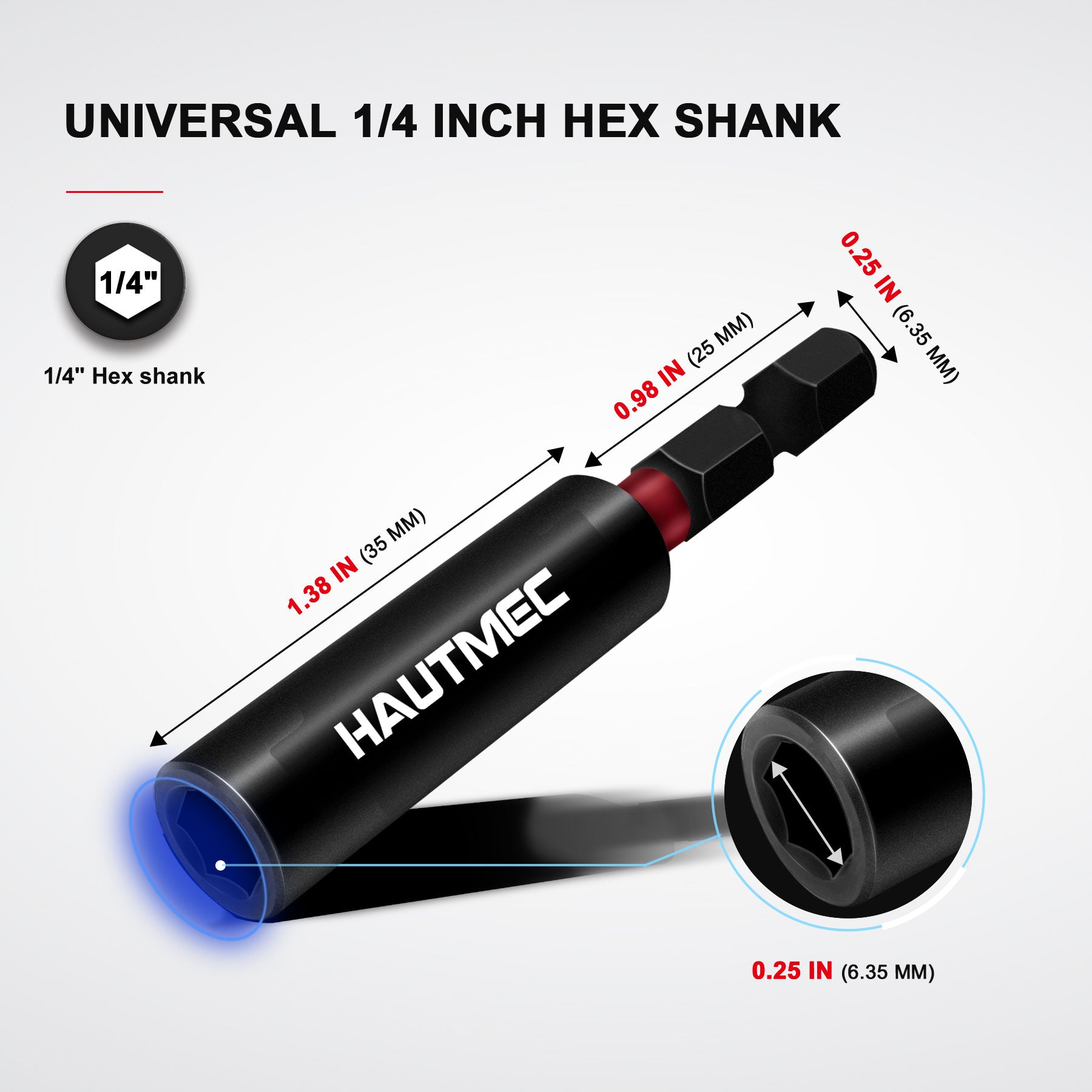 HAUTMEC 1/4”Magnetic Impact Tough Bit Holder,2pcs Screwdriver Extension, Quick-Change Hex Shank Set for Screwdriver Bits Nuts Drills Maintenance and repairing HT0163-SH