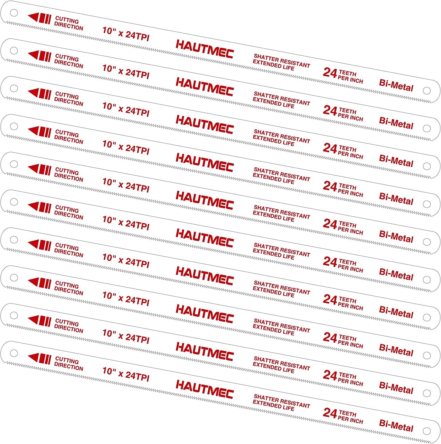 HAUTMEC 10" Hacksaw Blades Replacement Bi-Metal(10 Pack) 24 TPI High Speed Steel Grounded Teeth HT0120-CT