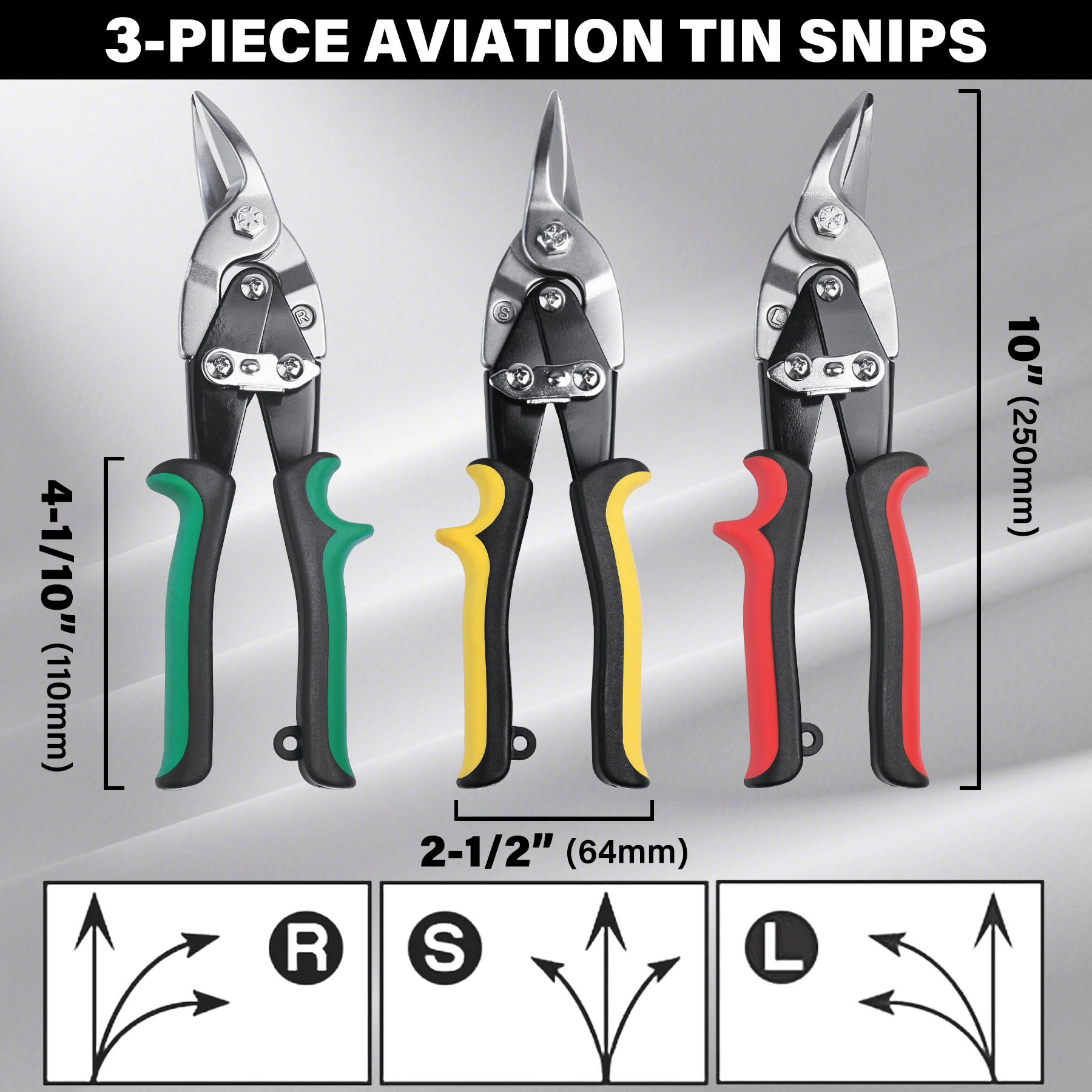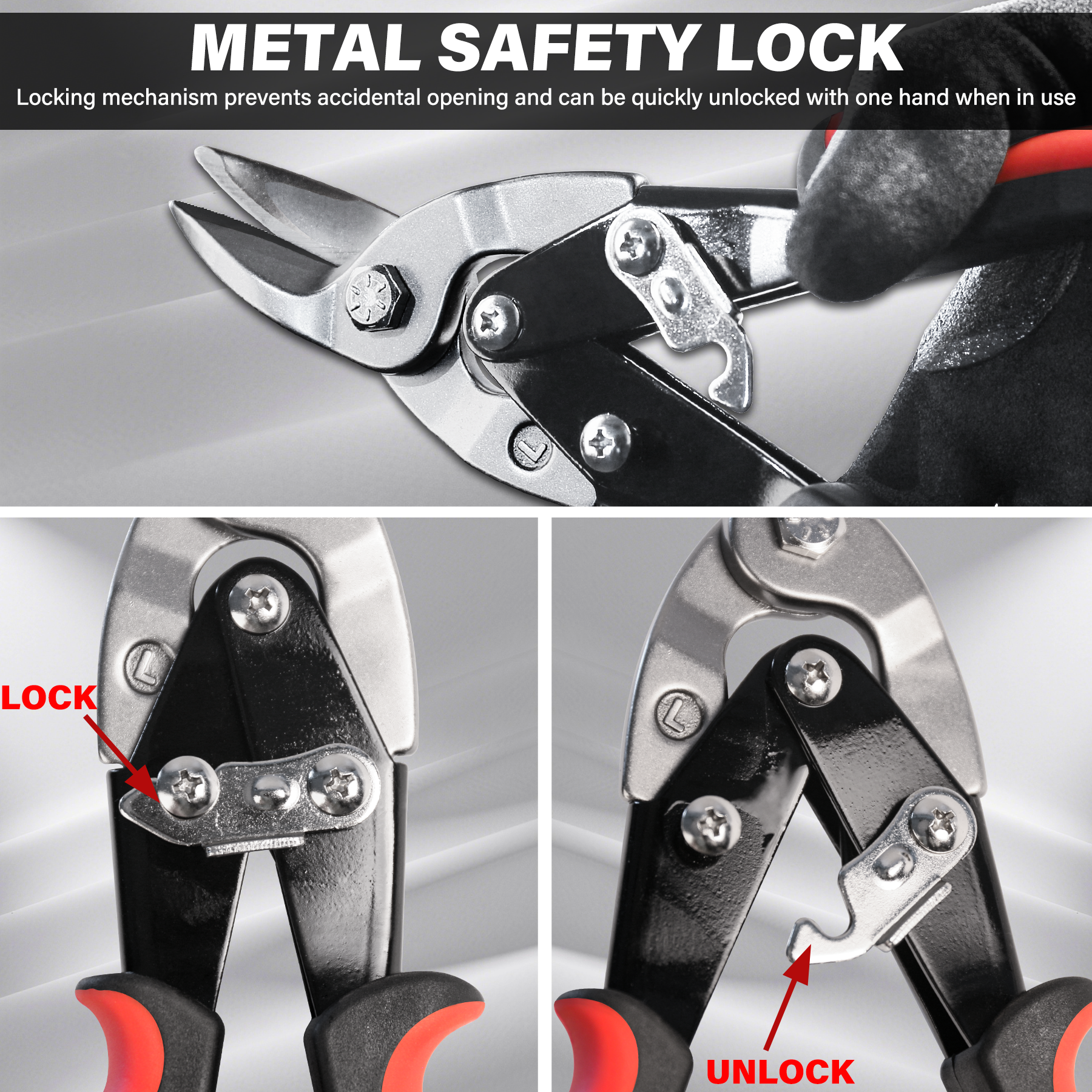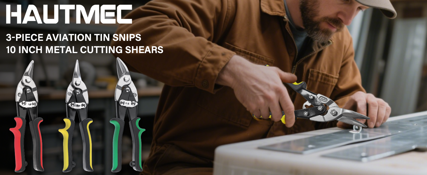 HAUTMEC 3-Piece Aviation Tin Snips for Cutting Metal Sheet, CR-V Steel Miter Shears for Straight, Left & Right Cuts, 10 Inch Heavy-Duty Sheet Metal Cutters with Safety Lock & Ergonomic Grip – HT0068