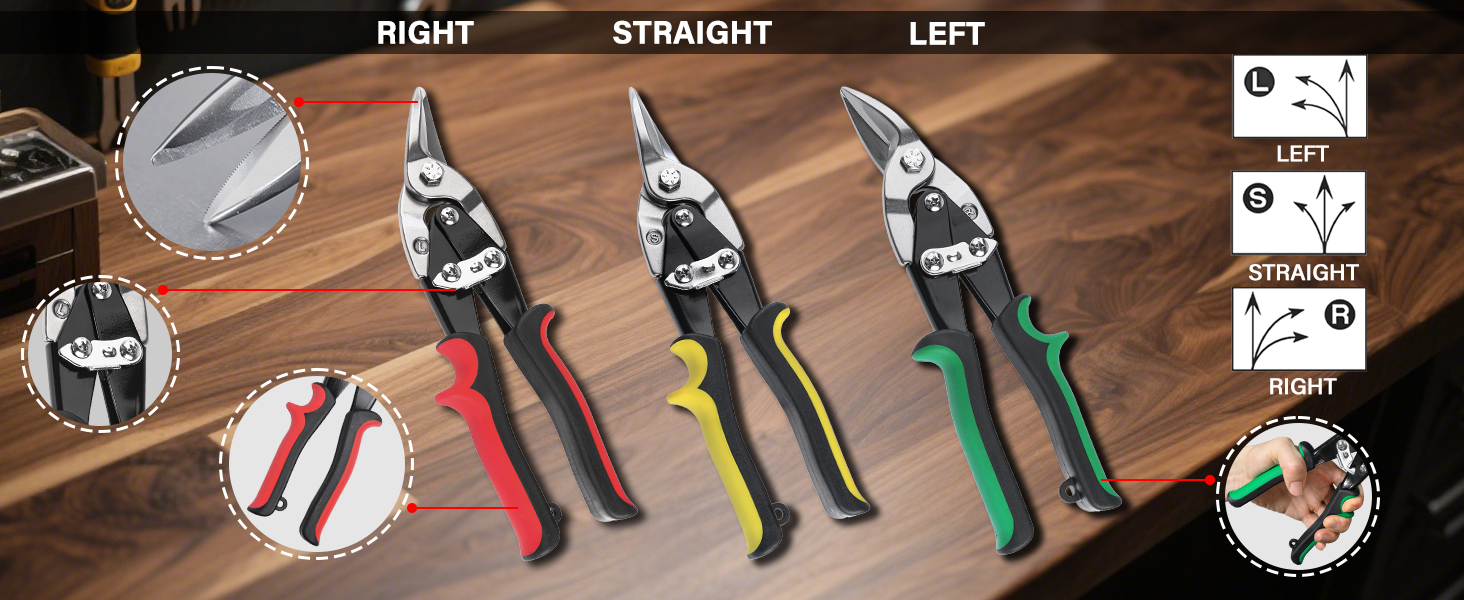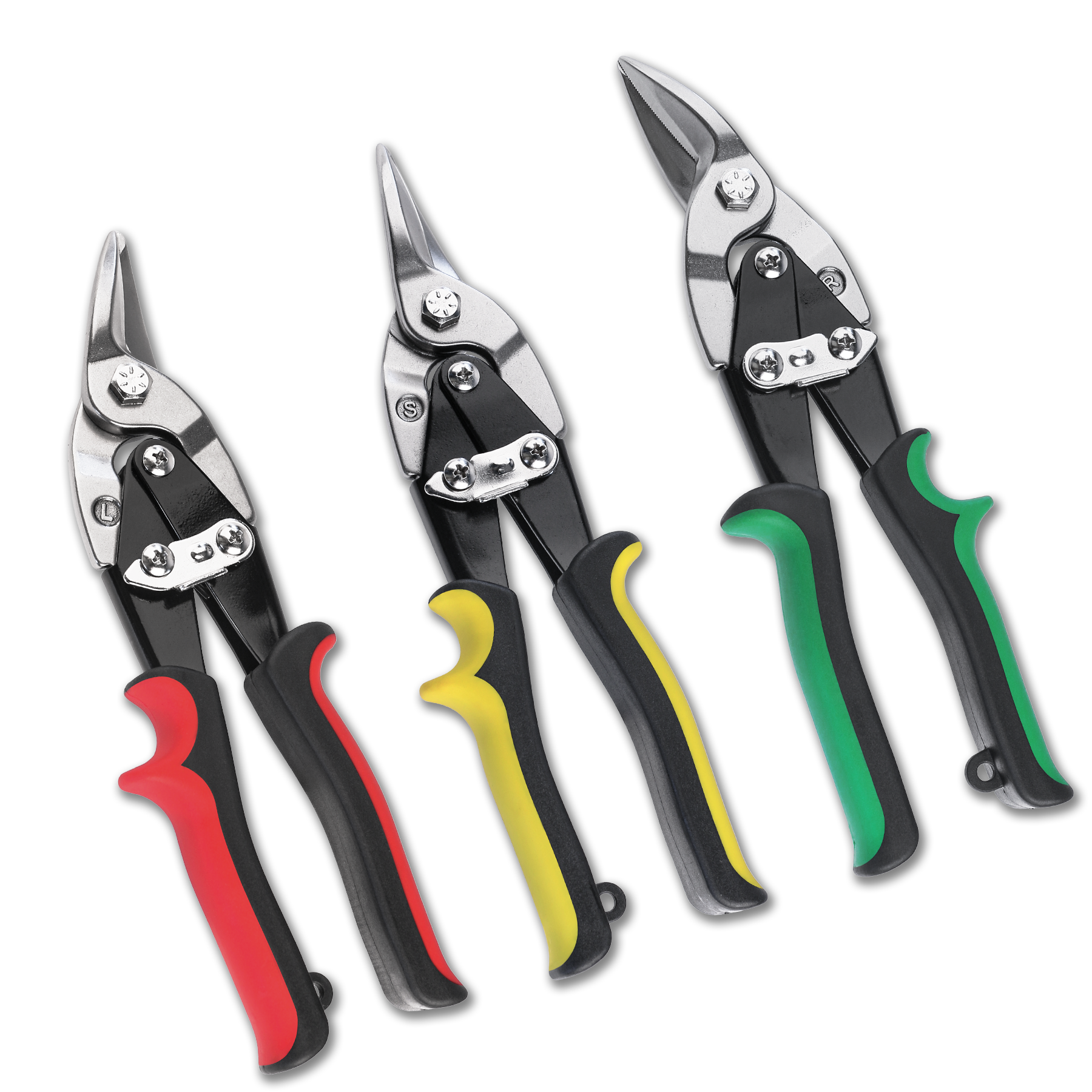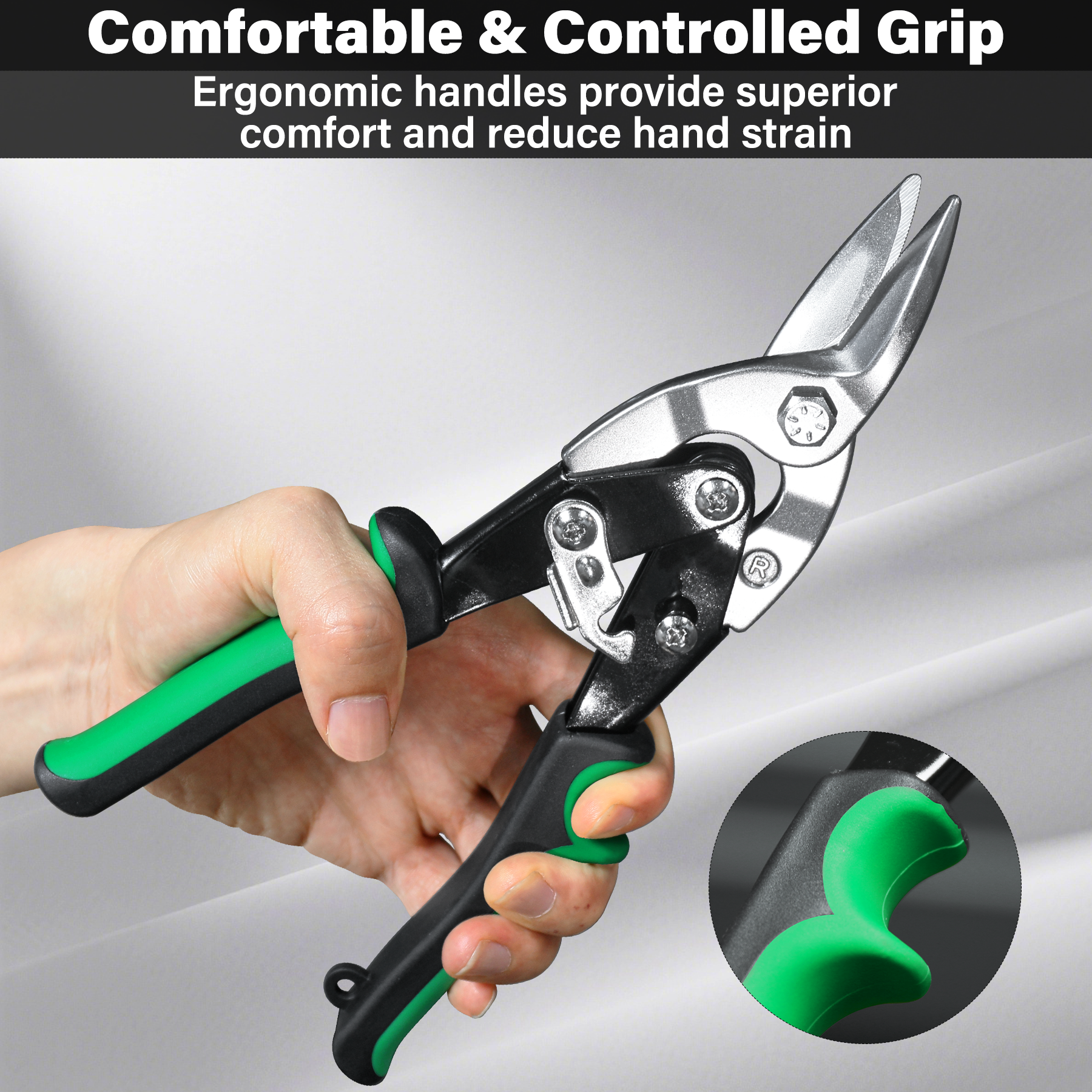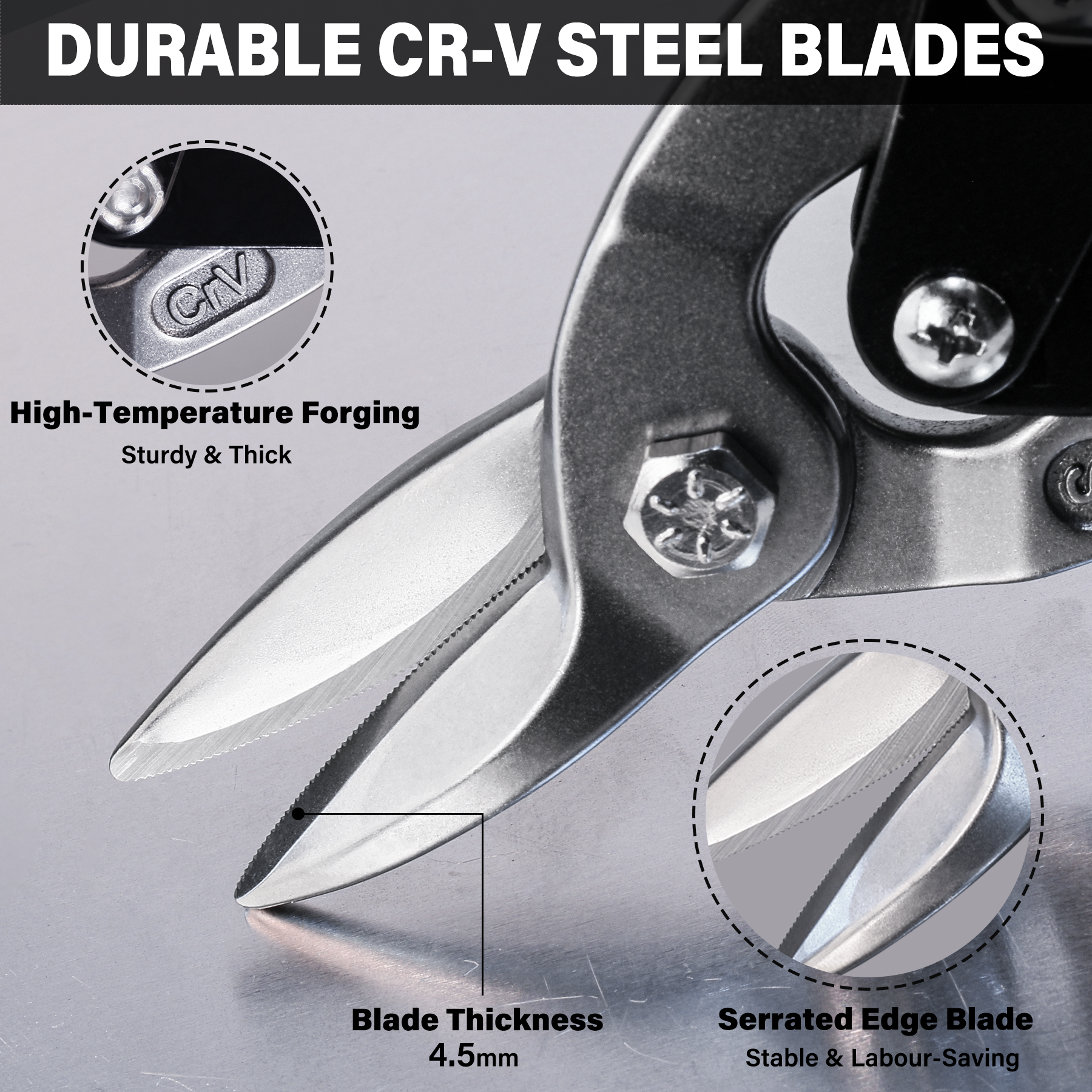 HAUTMEC 3-Piece Aviation Tin Snips for Cutting Metal Sheet, CR-V Steel Miter Shears for Straight, Left & Right Cuts, 10 Inch Heavy-Duty Sheet Metal Cutters with Safety Lock & Ergonomic Grip – HT0068