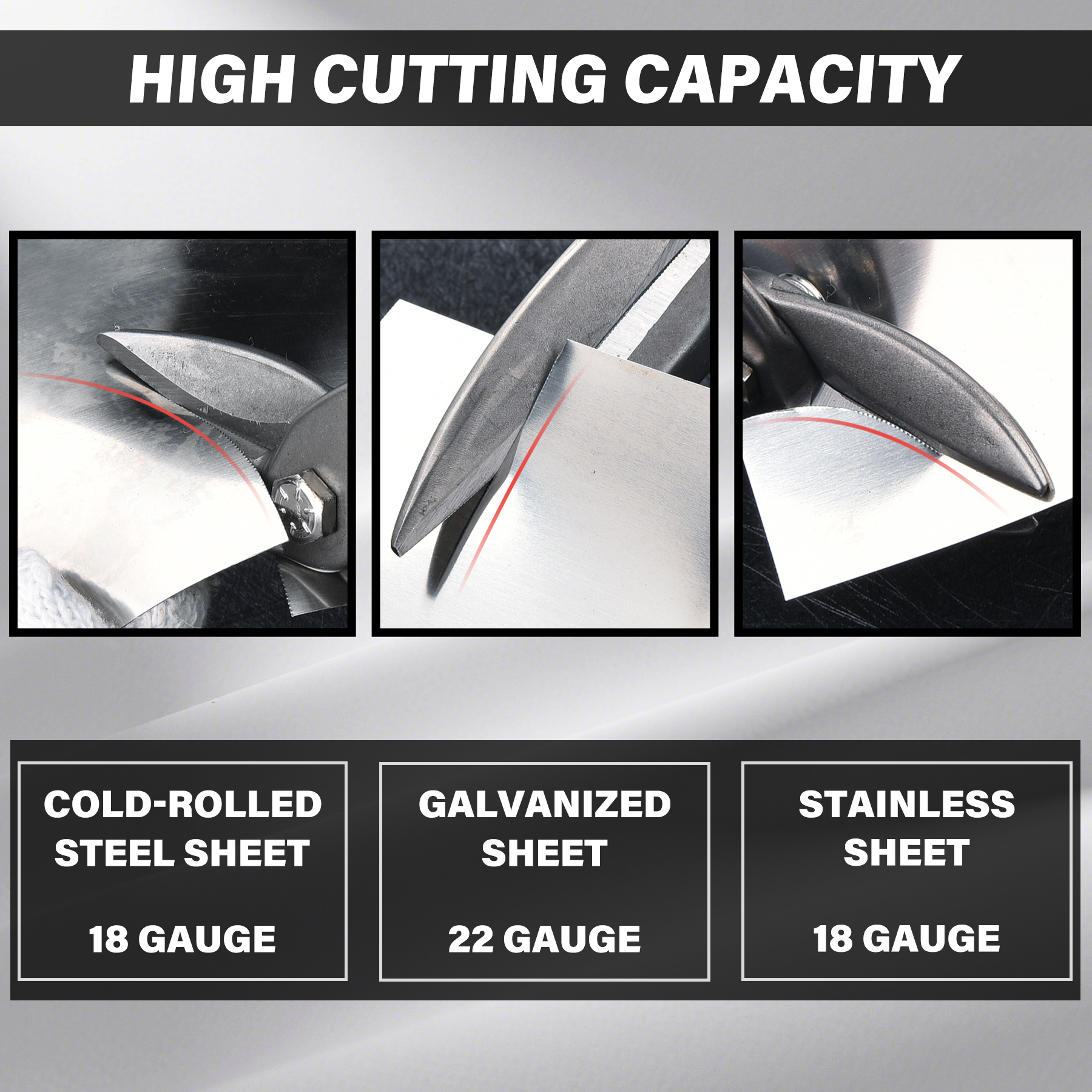 【Versatile Cutting Capacity】Cuts up to 18-gauge (1.2 mm) cold-rolled steel, 18-gauge galvanized sheet, and 22-gauge stainless steel——perfect for sheet metal, PVC pipe, and more.