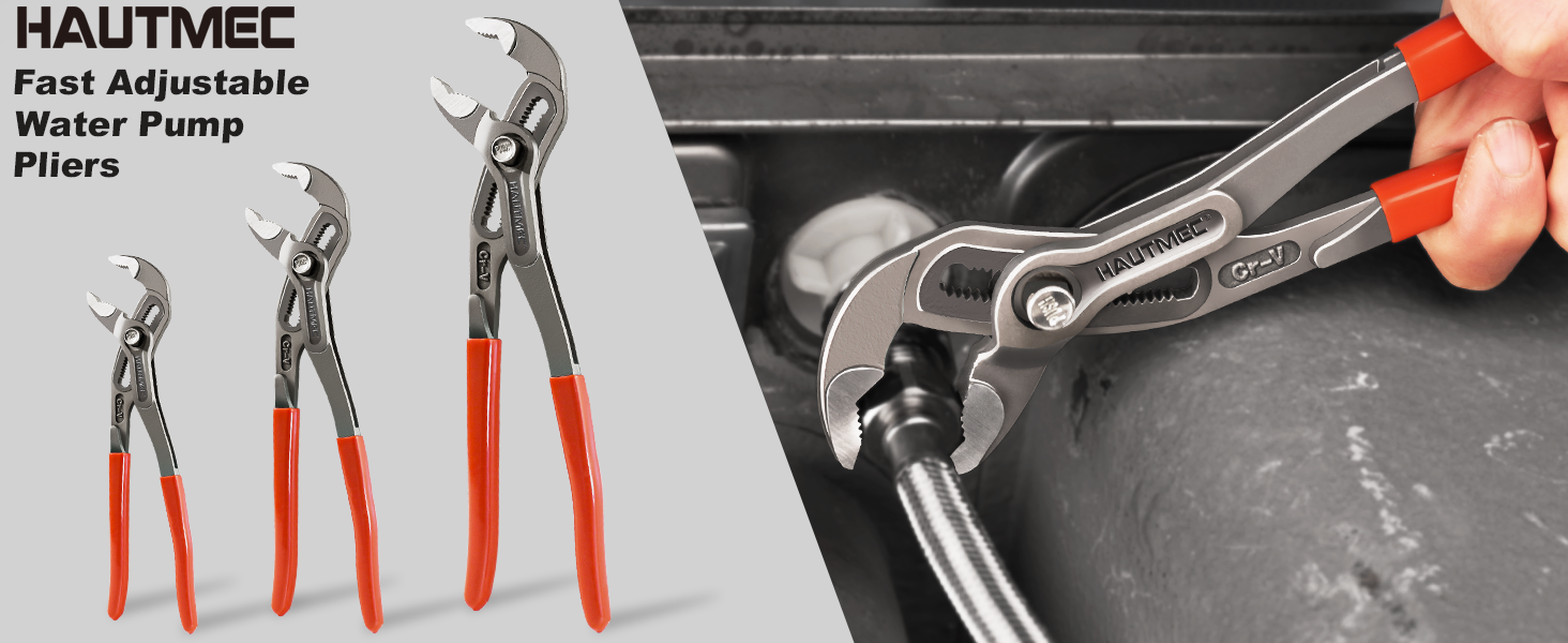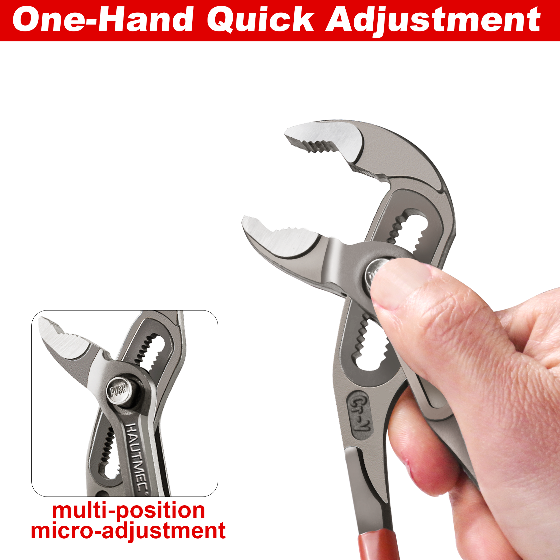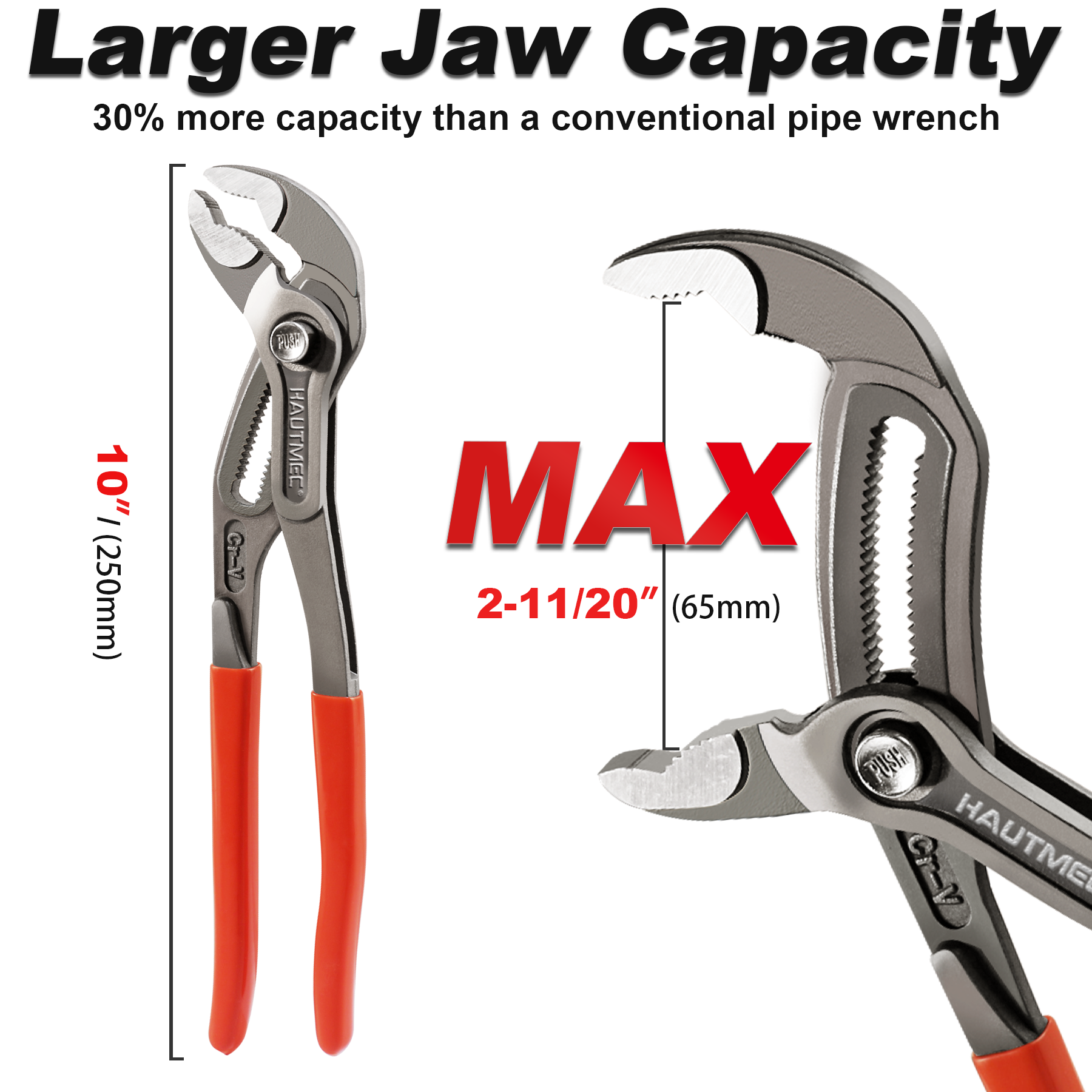 HAUTMEC 10-Inch Water Pump Pliers, Fast Adjustable Tongue and Groove Joint Pliers, V-Jaw with Comfort Grips, Rust-Proof CRV Steel Construction for Plumbing, Home Repair, and Pipe Fittings HT0367-PL