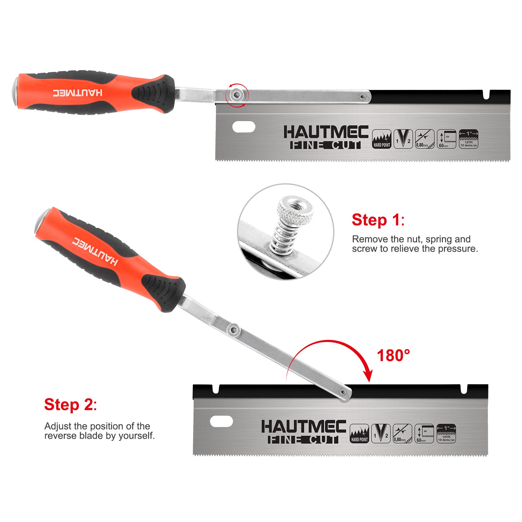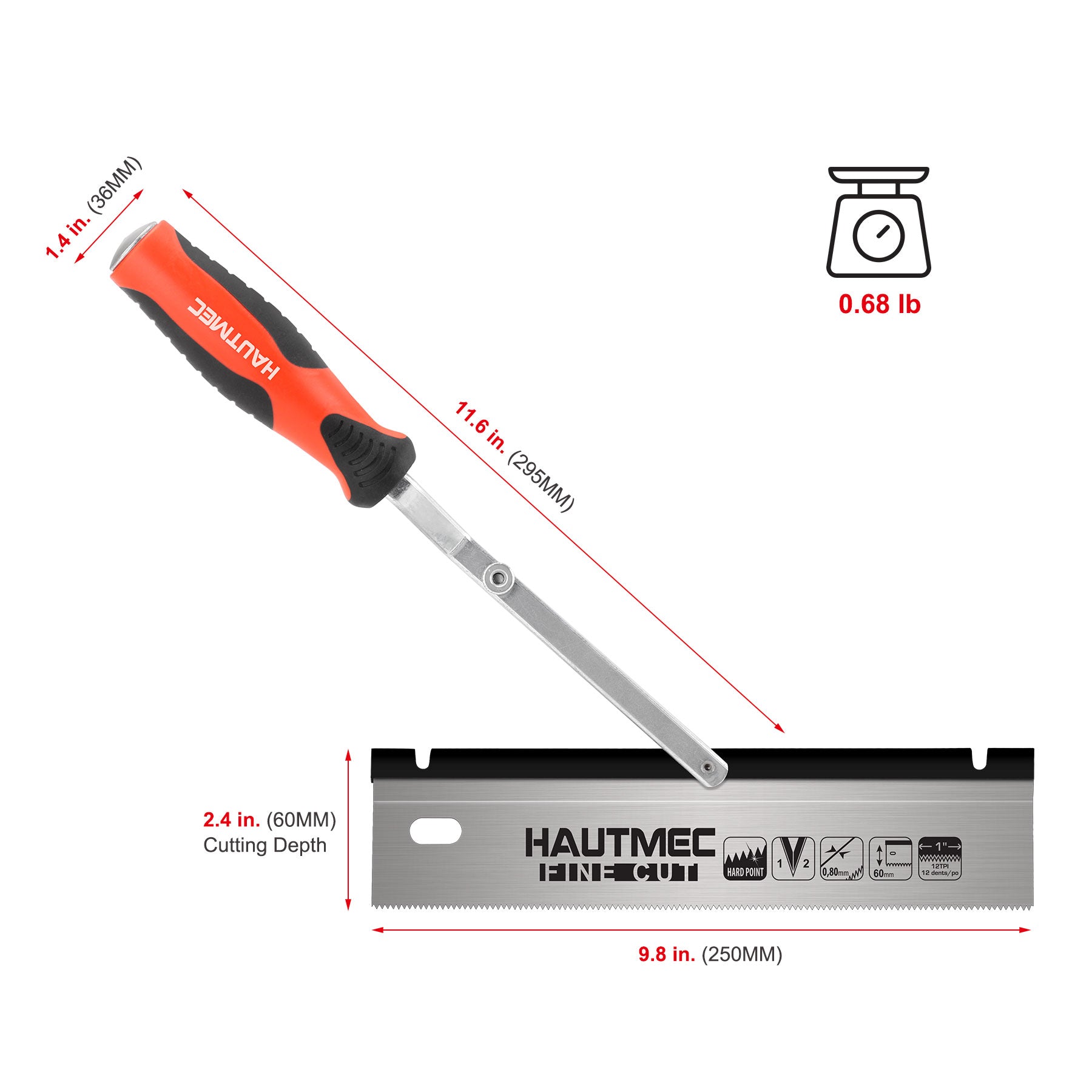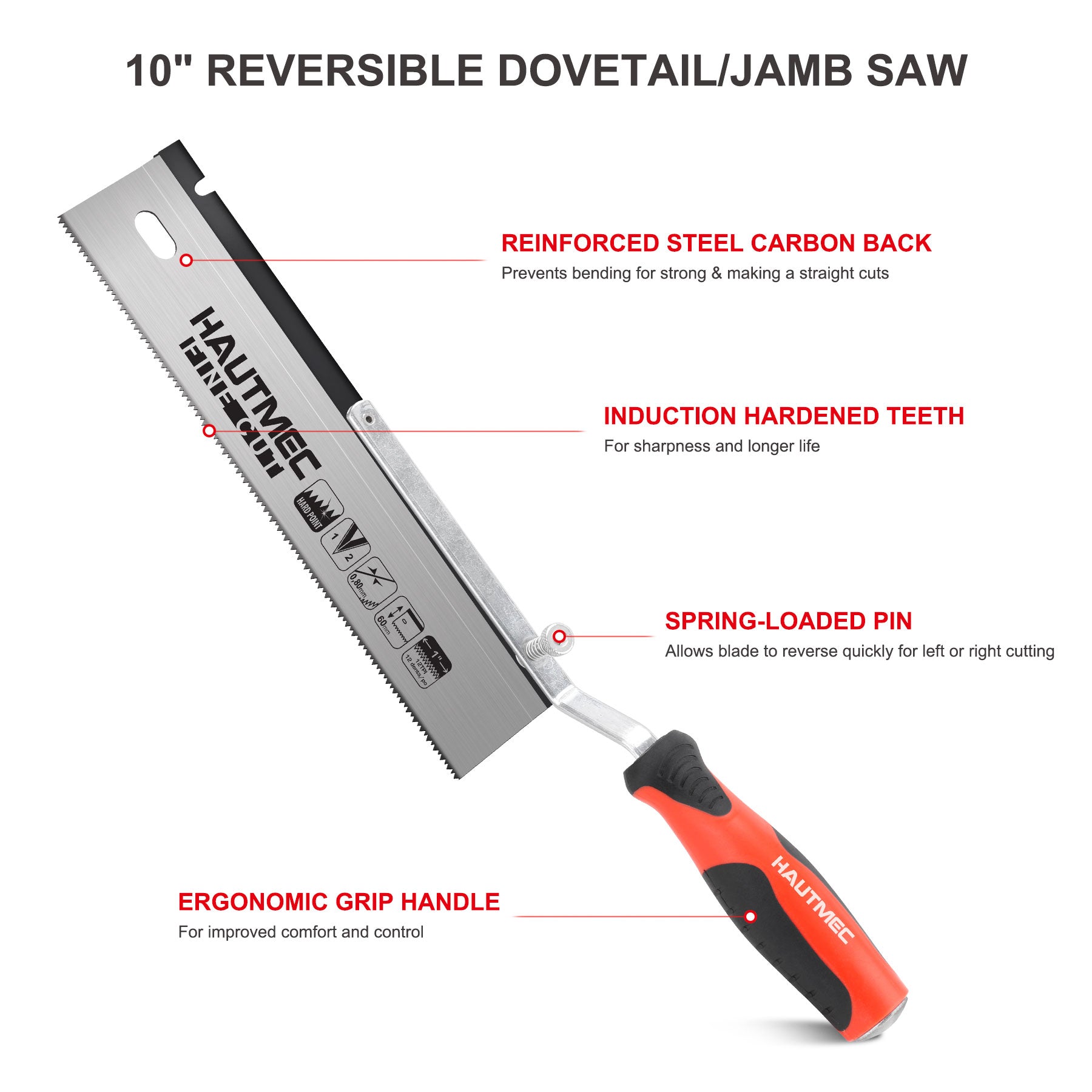 HAUTMEC 10" Reversible Dovetail/Jamb Saw, 12TPI Double Ground Teeth with Spring Loaded Design & Cranked Soft Handle for flush-cutting door jambs and millwork for tile installation and prep