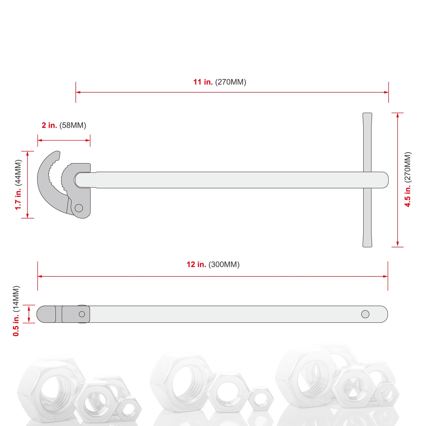 - T-HANDLLE DESIGN - The wrench provides 11 in reach and is slim enough for appplications in tight spaces. Red-sparying on the rod strengthens the water-resistant and rust-resistant performance. Sliding "T" handle enables labor-saving operation while providing a comfortable grip