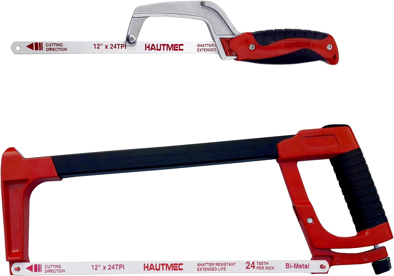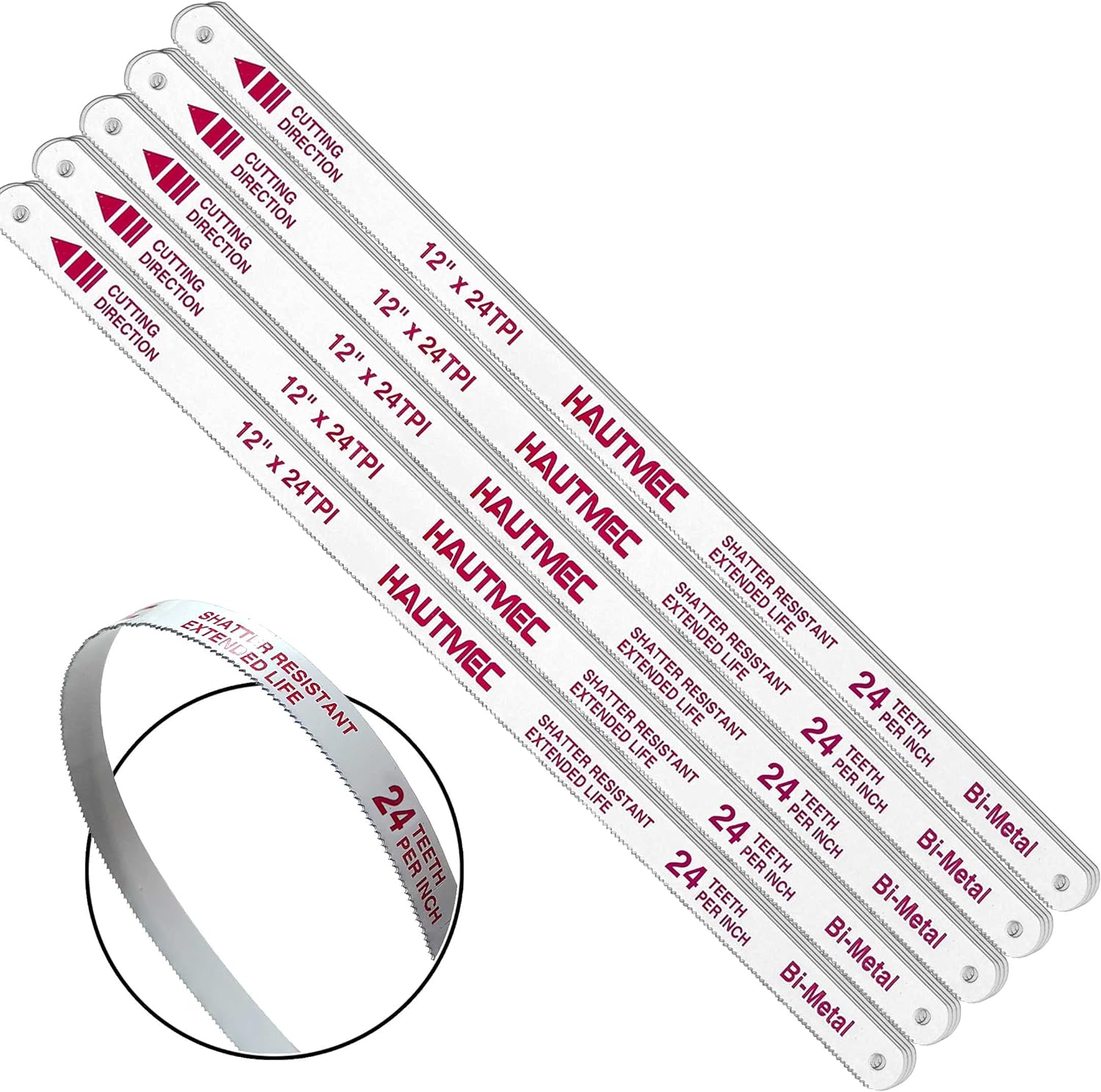 HAUTMEC 12" Hacksaw Blades Replacement Bi-Metal (100 Pack) 24 TPI High Speed Steel Grounded Teeth HT0017-100PC