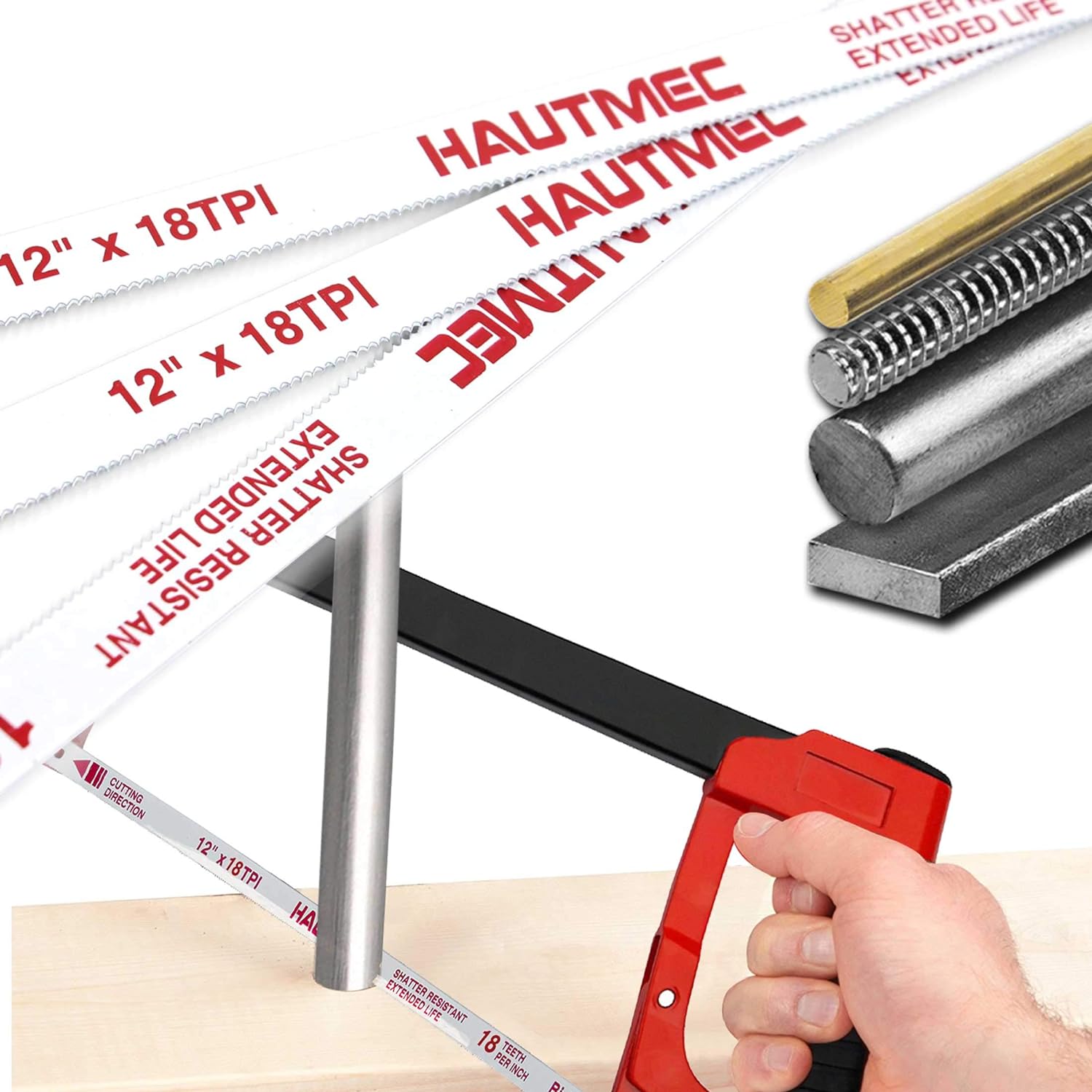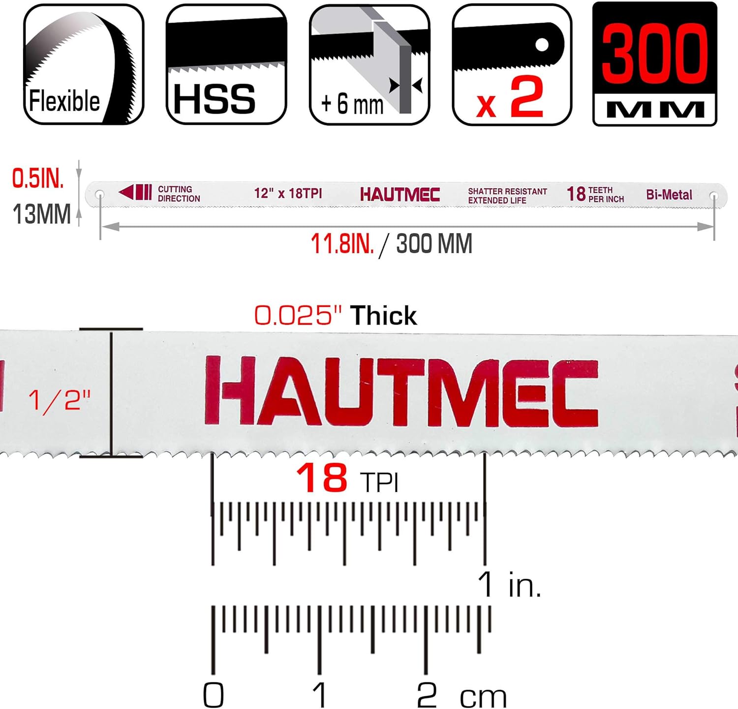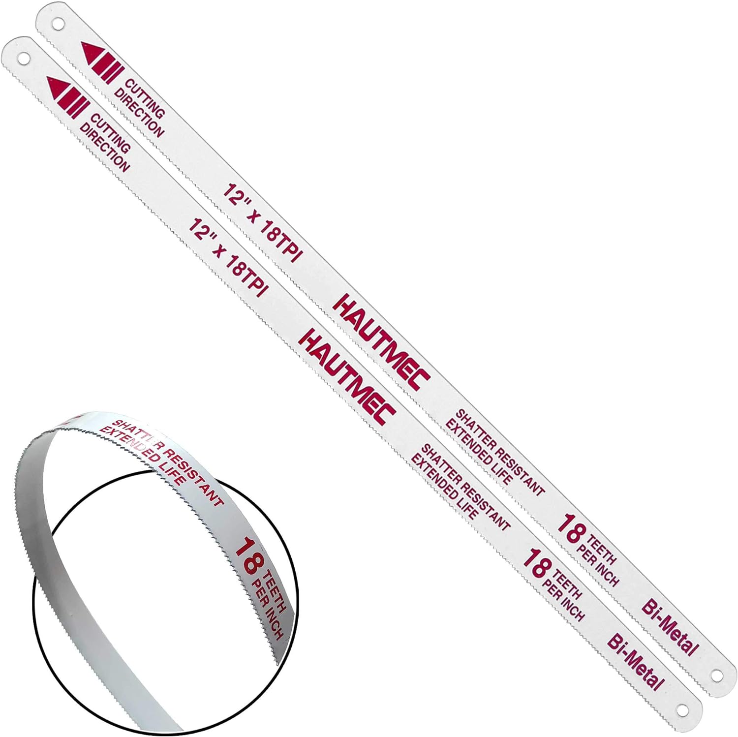 HAUTMEC 12" Hacksaw Blades Replacement Bi-Metal 18 TPI High Speed Steel Grounded Teeth, 2 Pack, HT0016-2PC