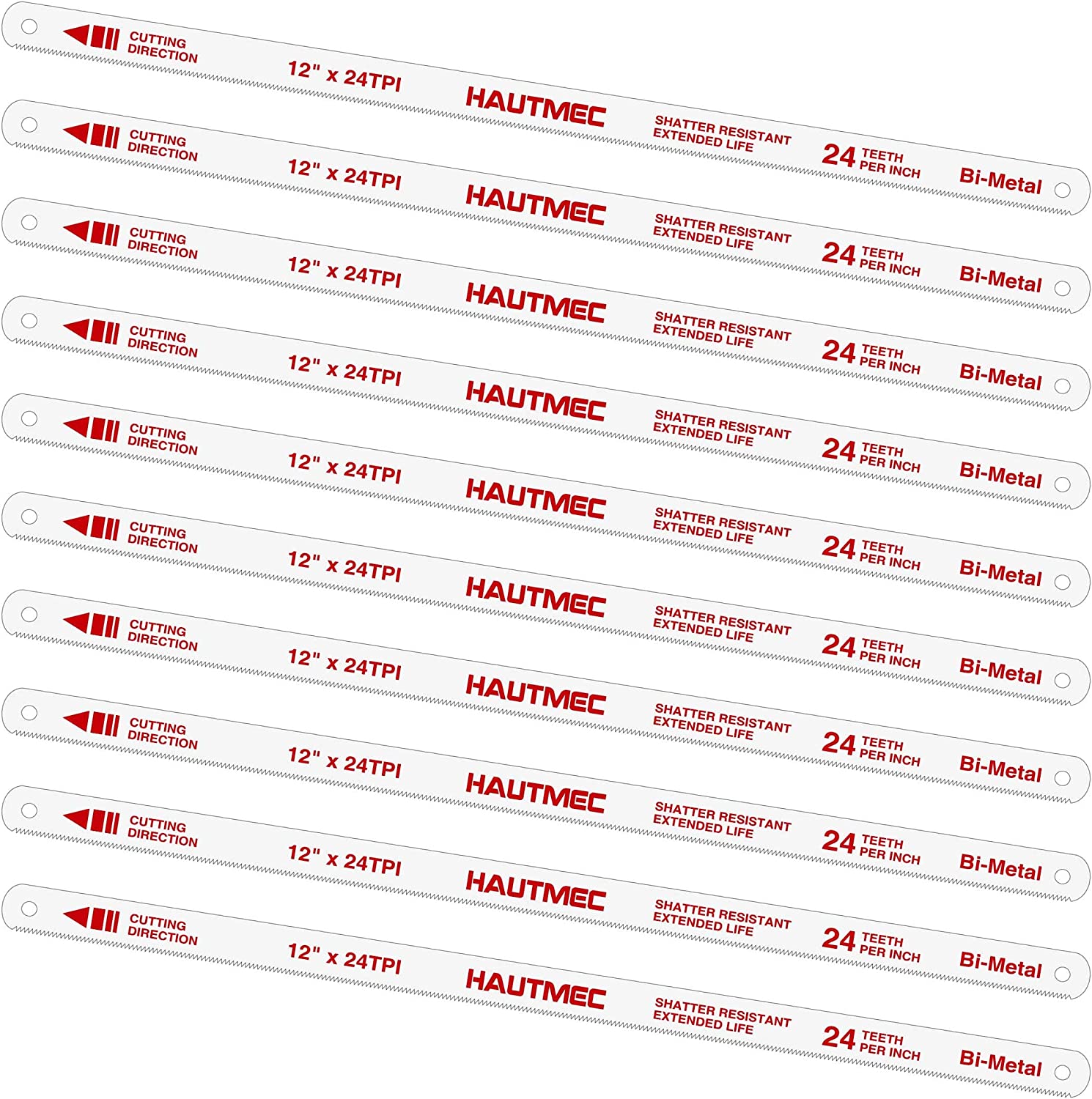HAUTMEC 12" Hacksaw Blades Replacement Bi-Metal(10 Pack) 24 TPI High Speed Steel Grounded Teeth HT0017-CT