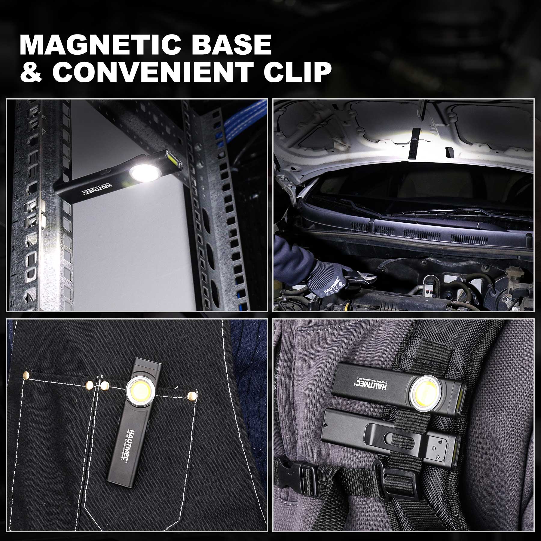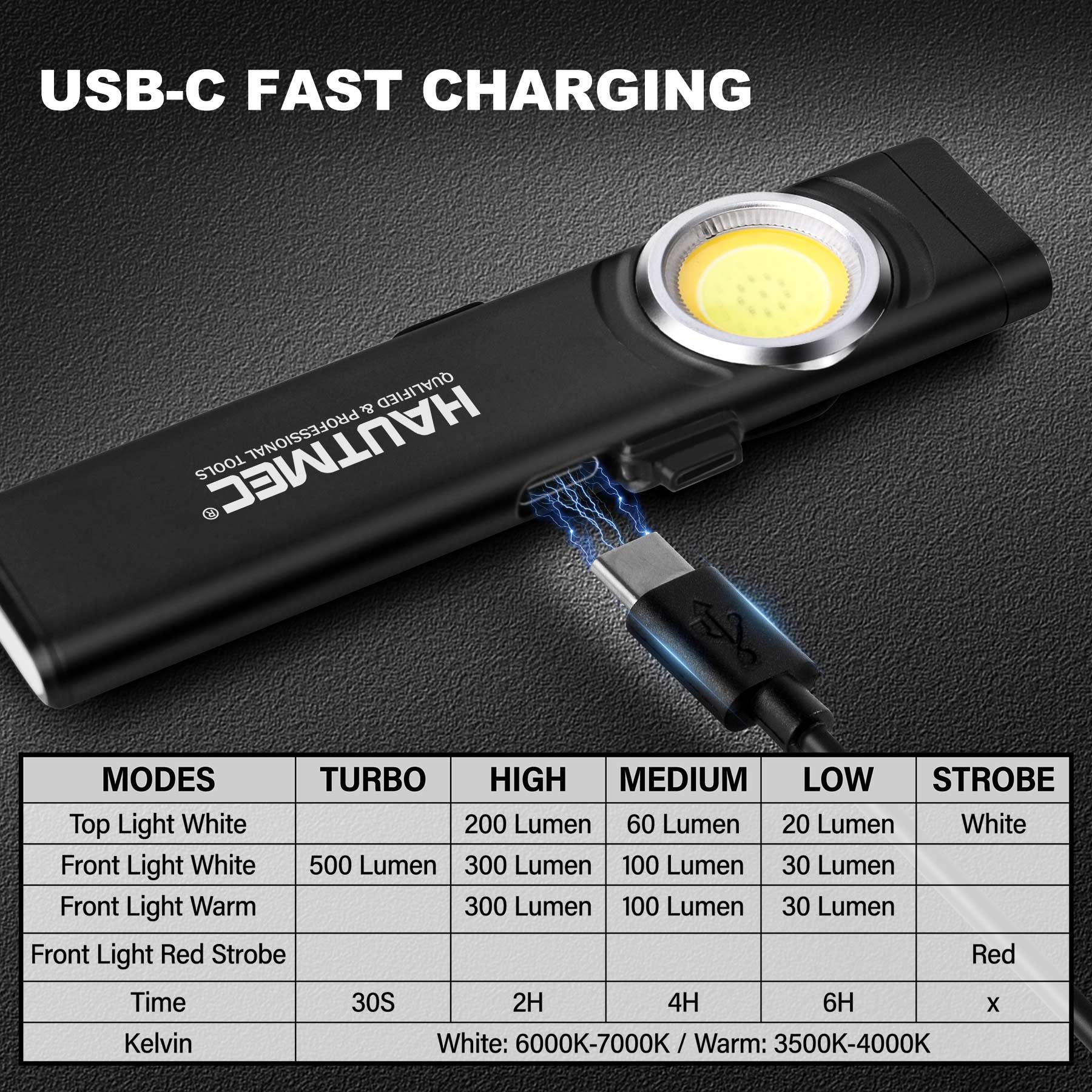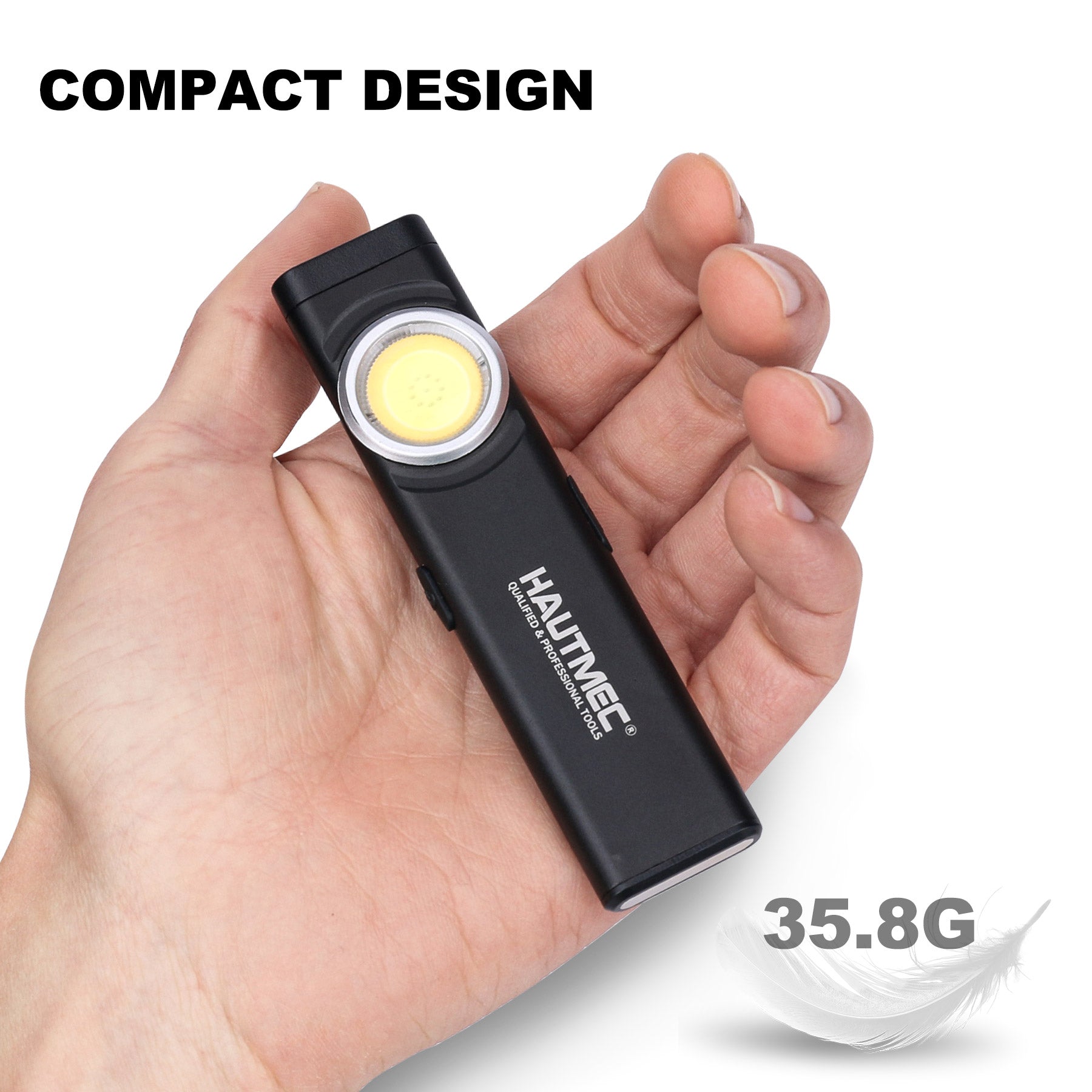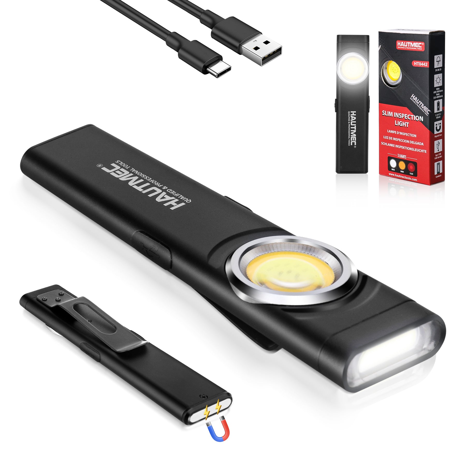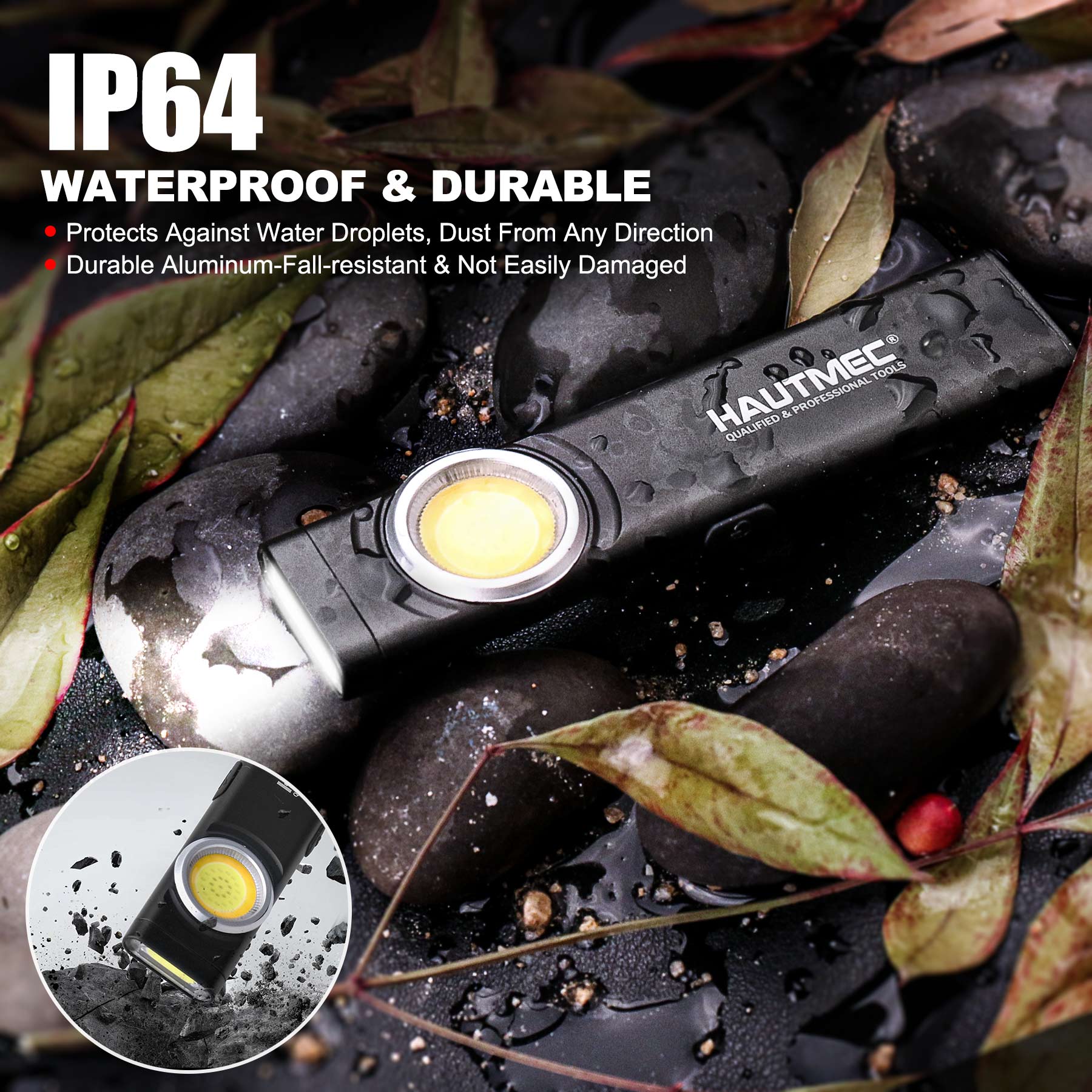 HAUTMEC 12-in-1 Pocket Flashlight with Clip, Slim Flat Flashlight Rechargeable Work Light with USB-C Fast Charging, Dual Light, Magnetic Base, 500LM Aluminum LED Torch IP64 Waterproof & Drop-Resistant, HT0442
