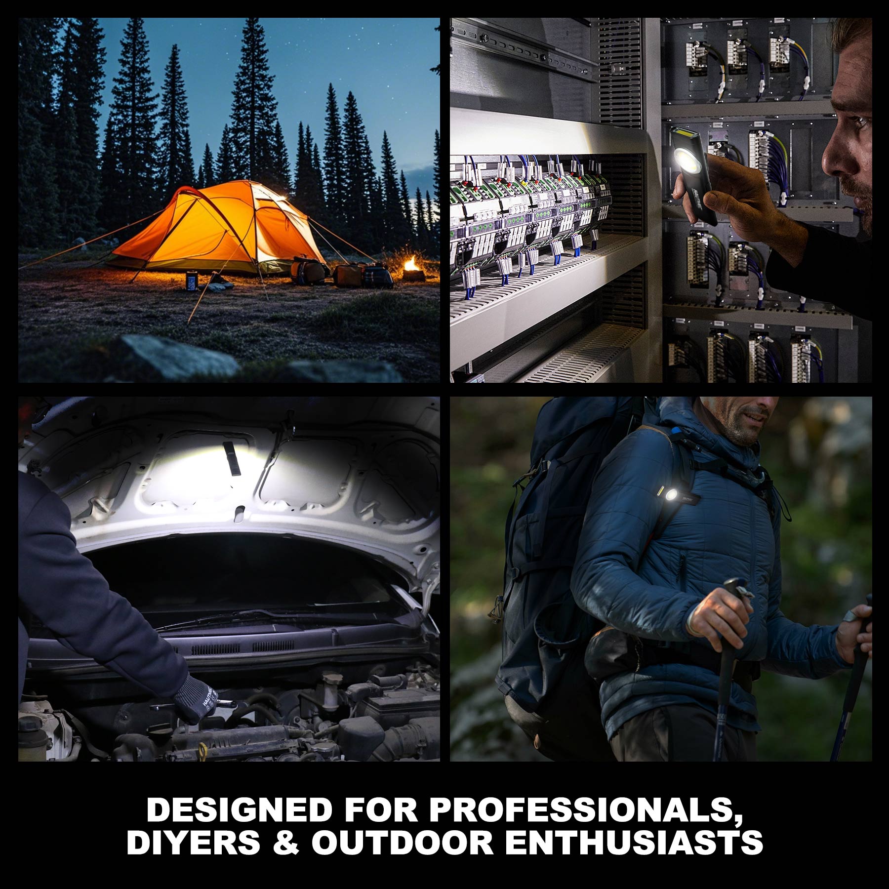 - Compact & Easy to Carry – Designed for portability with a magnetic base for hands-free use on metal surfaces, a pocket clip for secure attachment to hats, bags, or tents, and a lightweight, flat design for easy pocket storage.