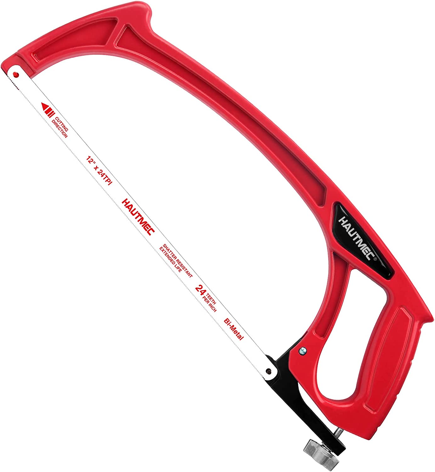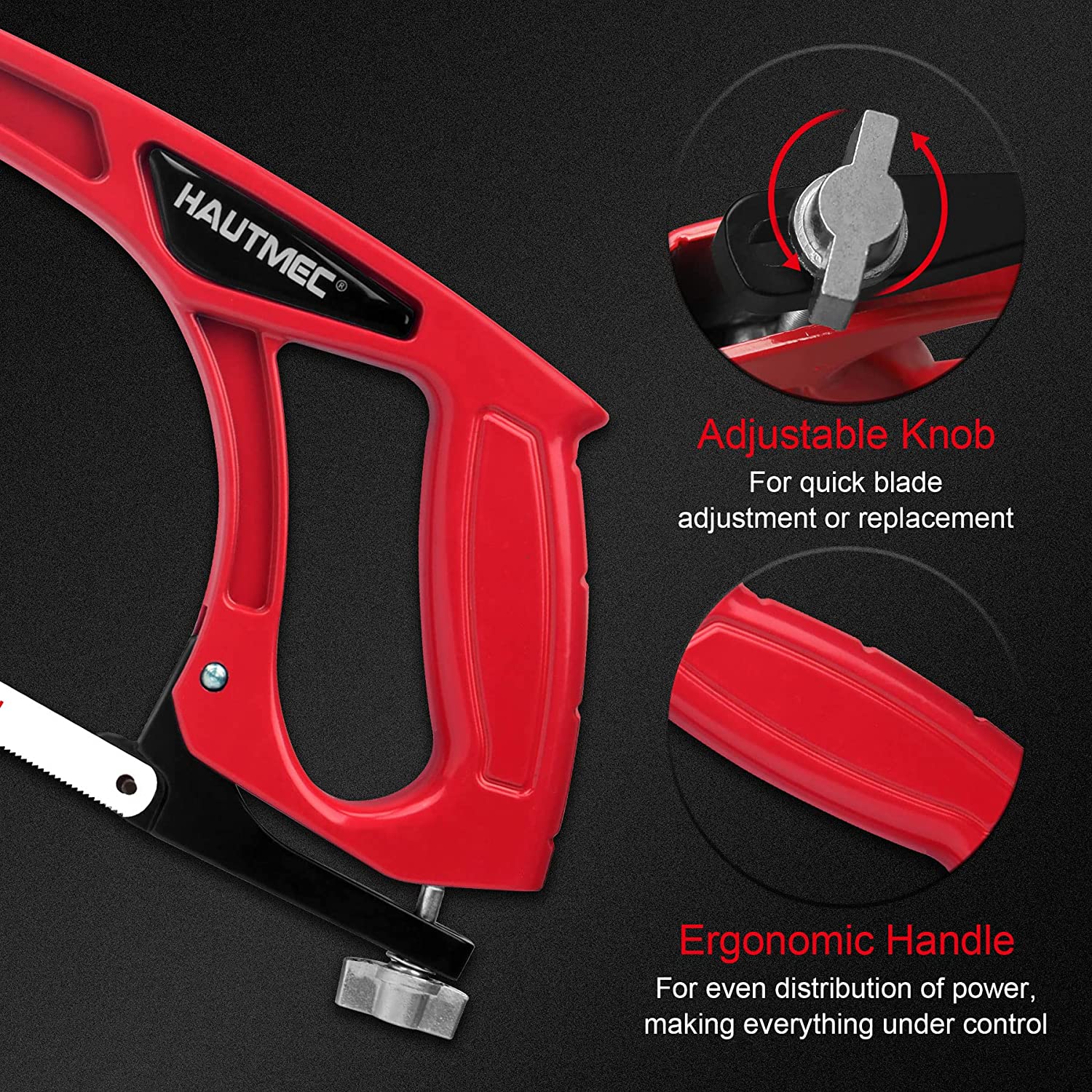 HAUTMEC 12 inch Hacksaw, Adjustable Heavy Duty Hacksaw Frame with High-Tension 24 TPI Bimetal HSS Blade for Metal,Pipe,PVC,Wood Cutting HT0101 Bimetal HSS High Tension Blade, for Metal, Steel Pipe, PVC, Wood HT0101-HS