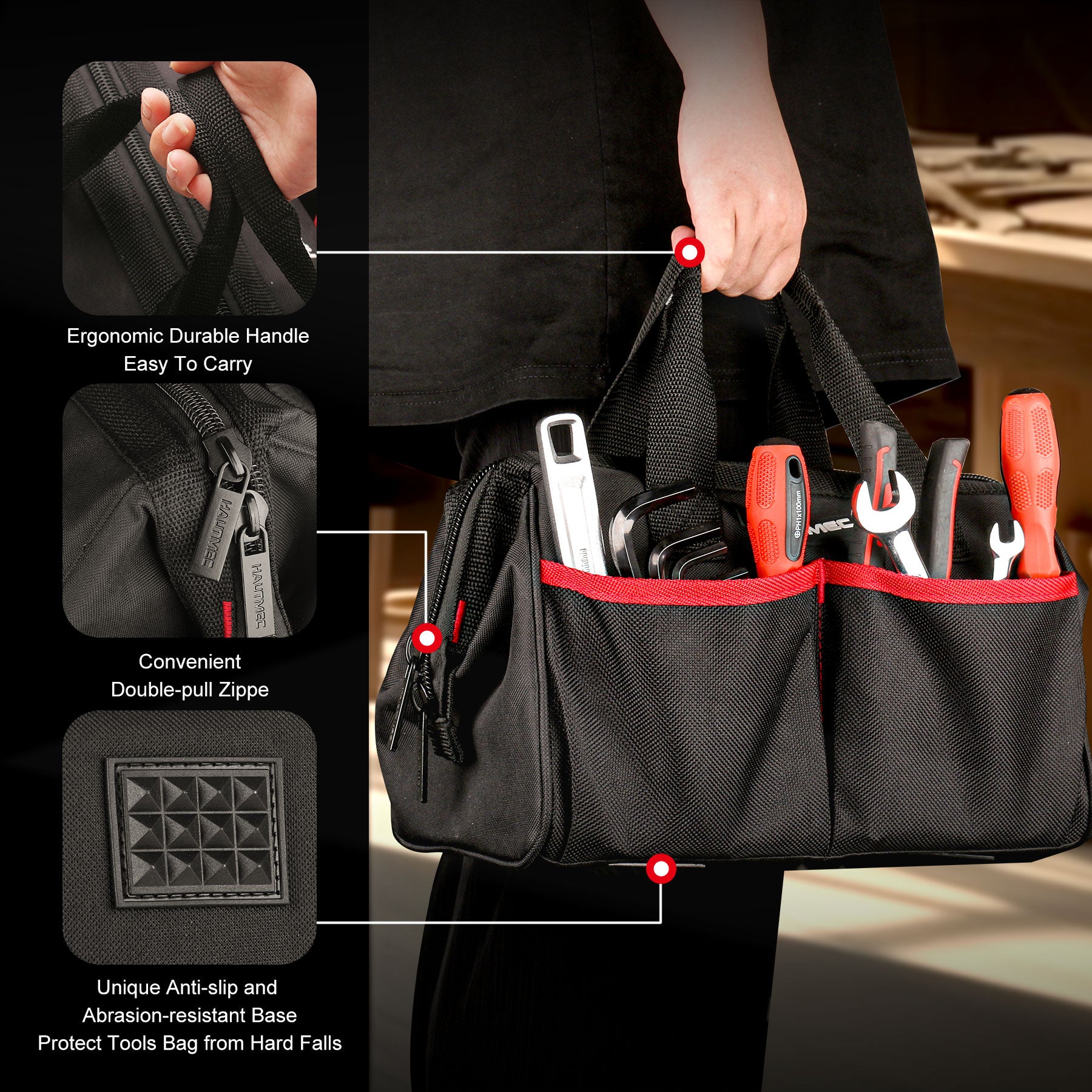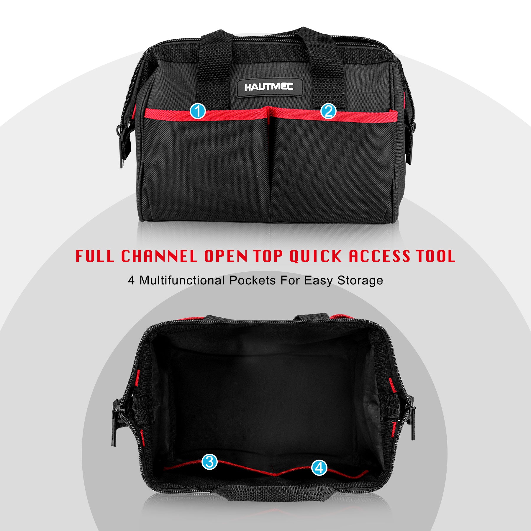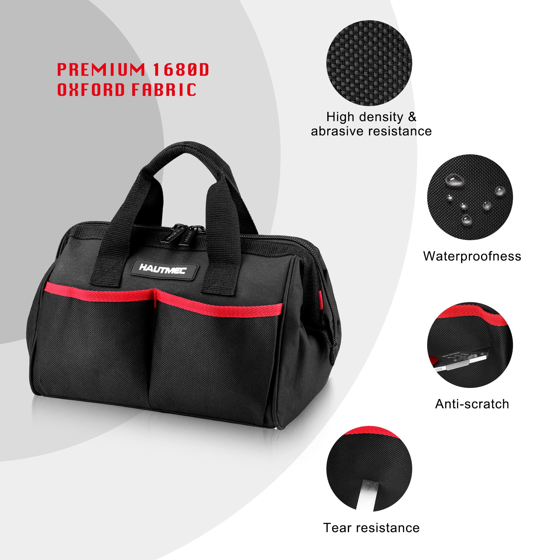 HAUTMEC 12 Inch Small Tool Bag, 1680D Wide Mouth Tool Box Organizer, Portable Utility Bag with Wear-Resistant Non-Slip Base and Double Zipper Design, HT0286