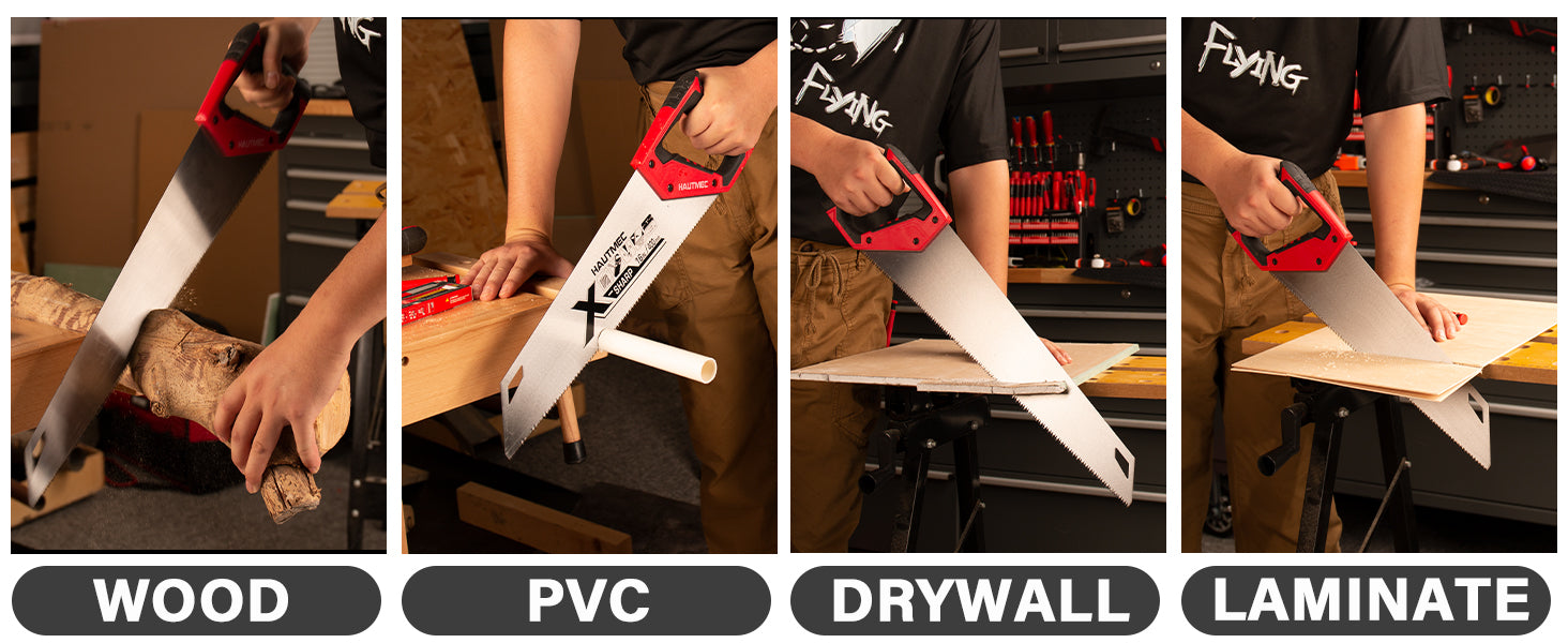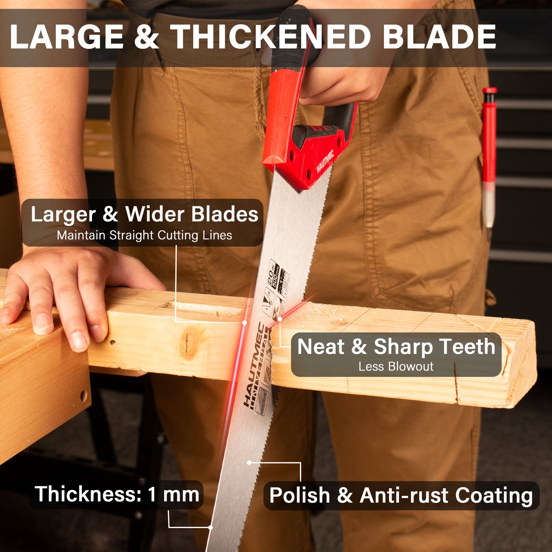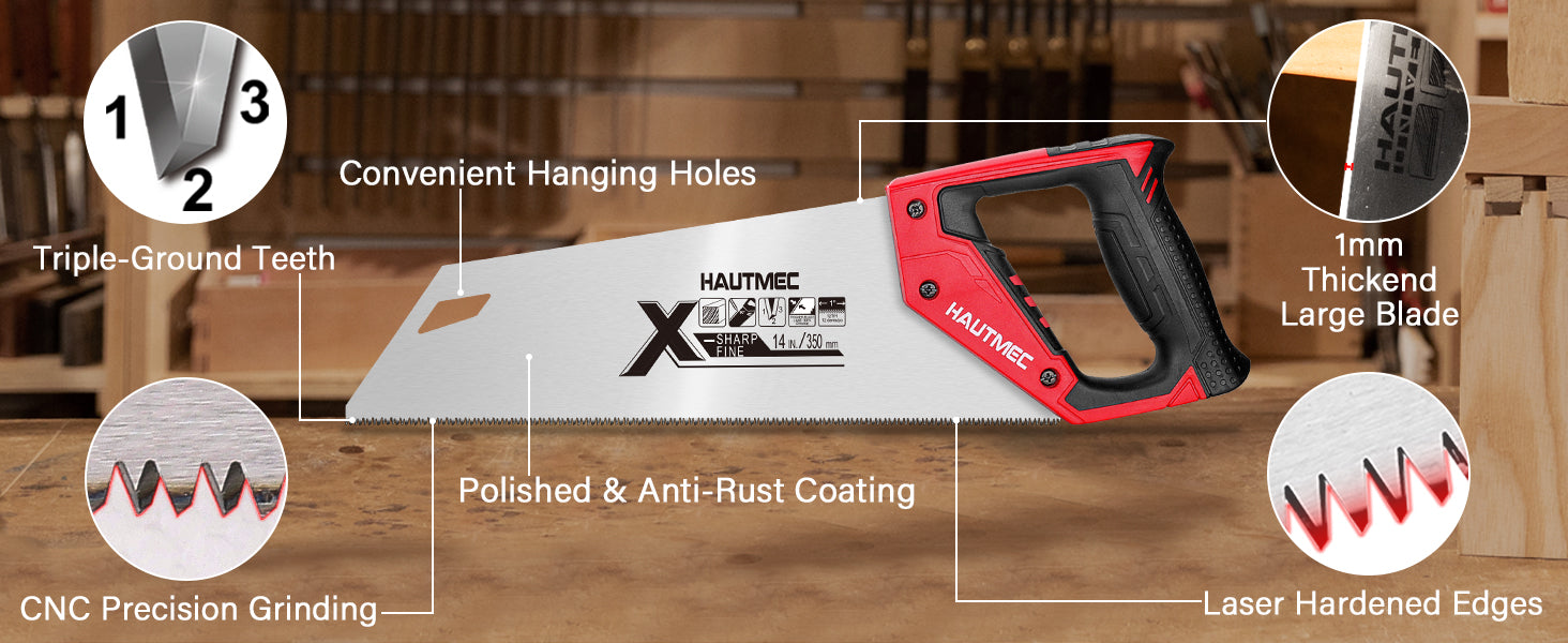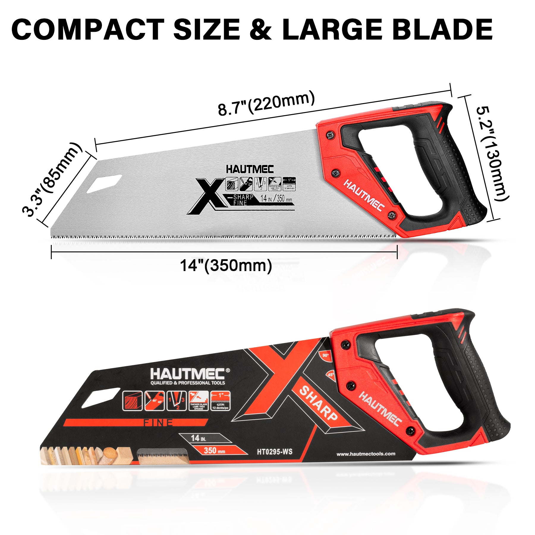 HAUTMEC 14-Inch X-Sharp Pro Hand Saw, Universal Wood Saw with 12 TPI Triple Ground Teeth, Thickened Carbon Steel Blade & Ergonomic Handle, Multi-Use Handsaw for Wood, Plastic, Drywall, PVC – HT0295