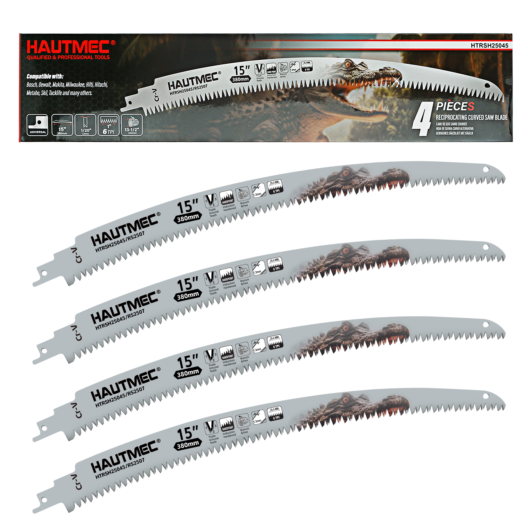 HAUTMEC 15 Inch Japanese Teeth Reciprocating Saw Blade, Cr-V Sawzall Blades with 6TPI Harden Teeth, Arc Edge Design, Medium Cut for for Tree Trimming, Wood, PVC Pipe Cutting, 4 Pack – HTRSH25045
