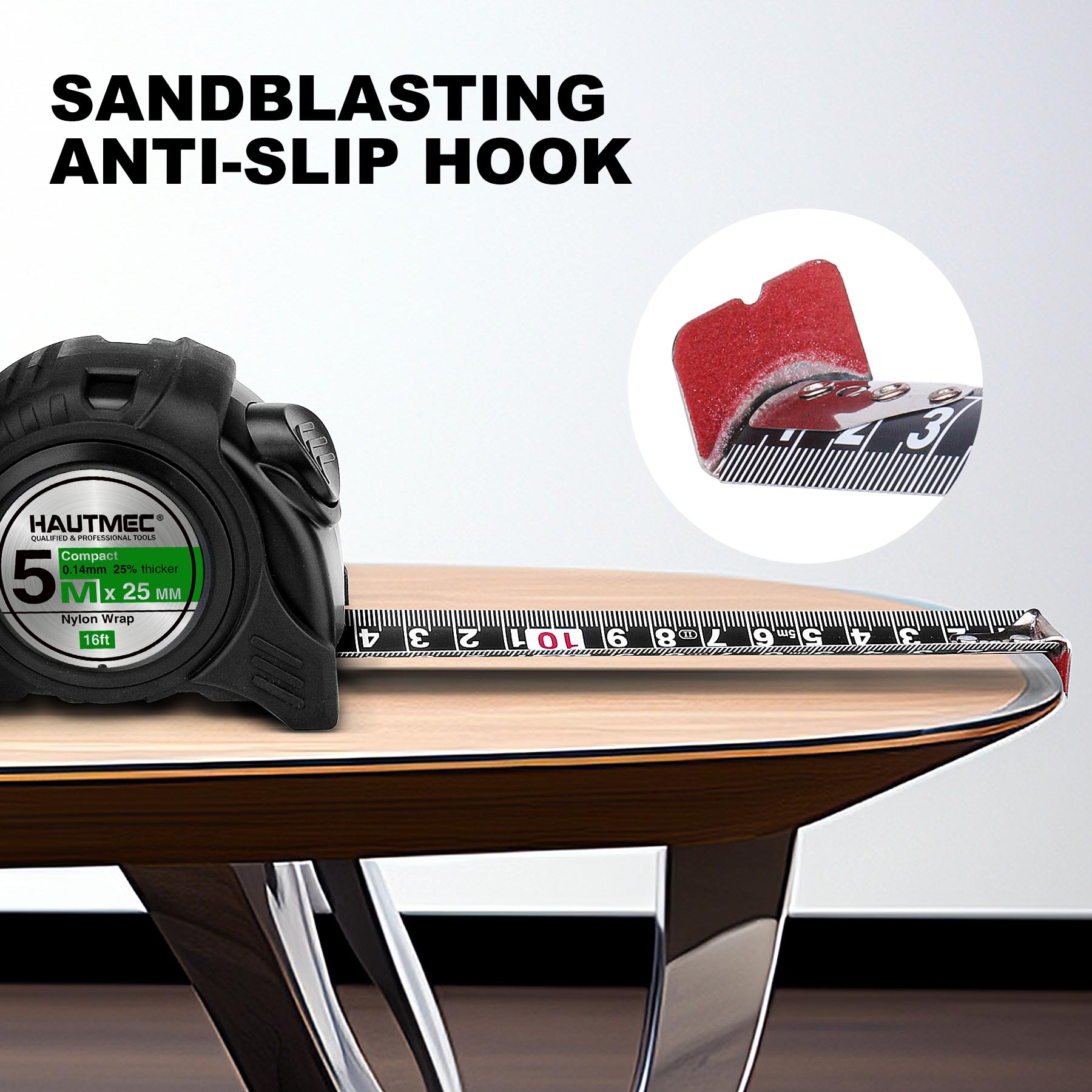 - Heat treated thick black nylon-wrapped steel blade,very strong to stand out more than 8 feet/2.5m. Highly precise and useful for many worker