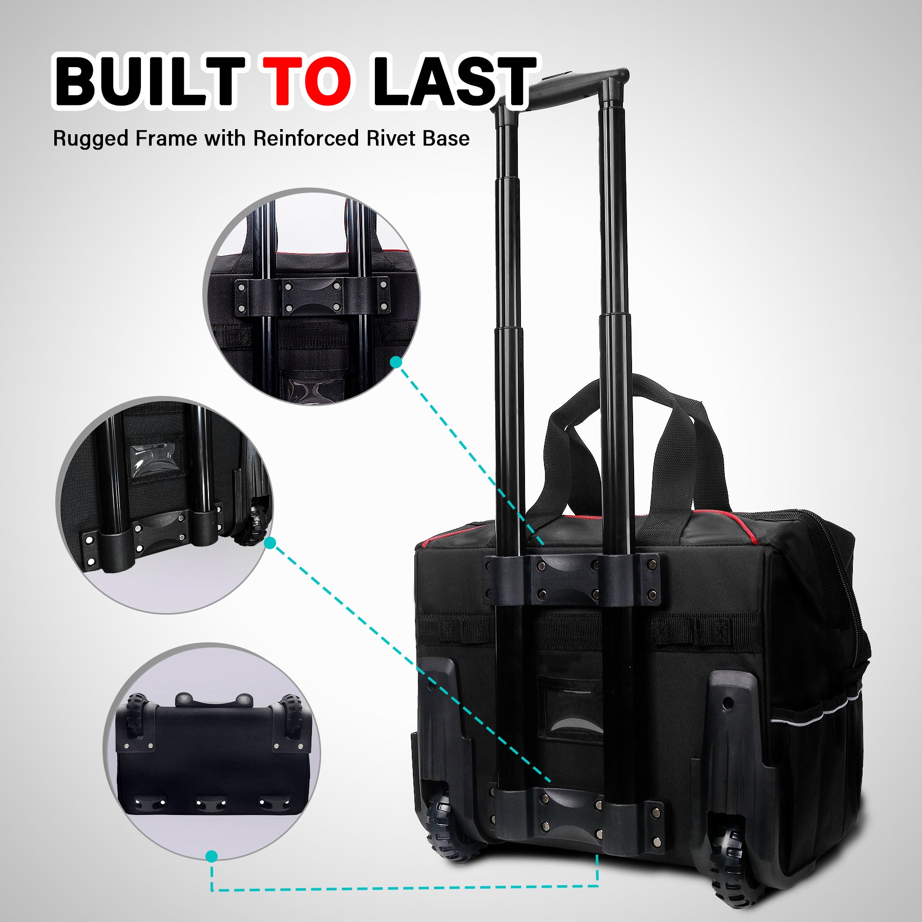 - 【Durable & Weather-Resistant Material】Made from tough 600D polyester with reinforced 1680D pockets and a waterproof coating, this rolling tool bag is built to withstand rough job sites and challenging environments