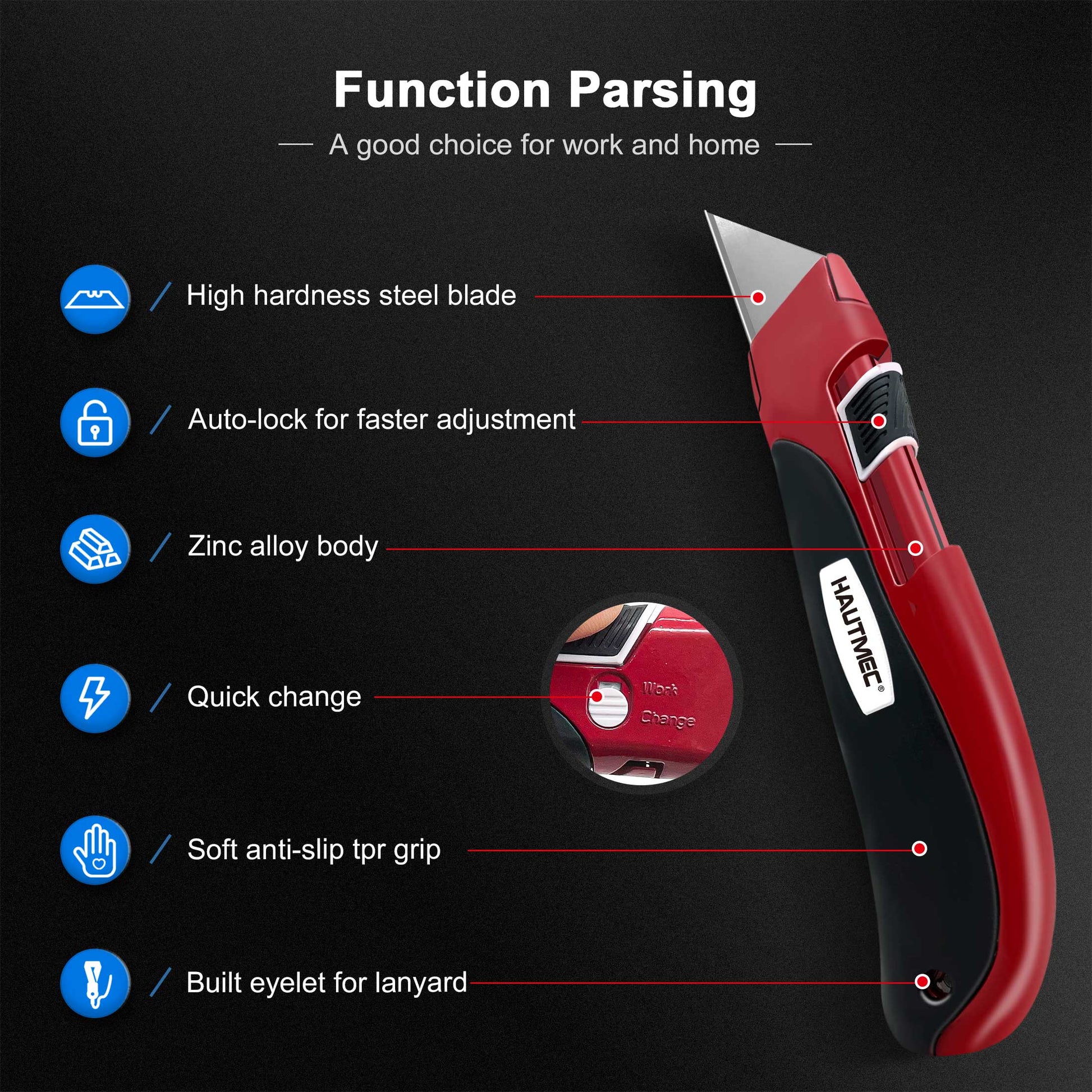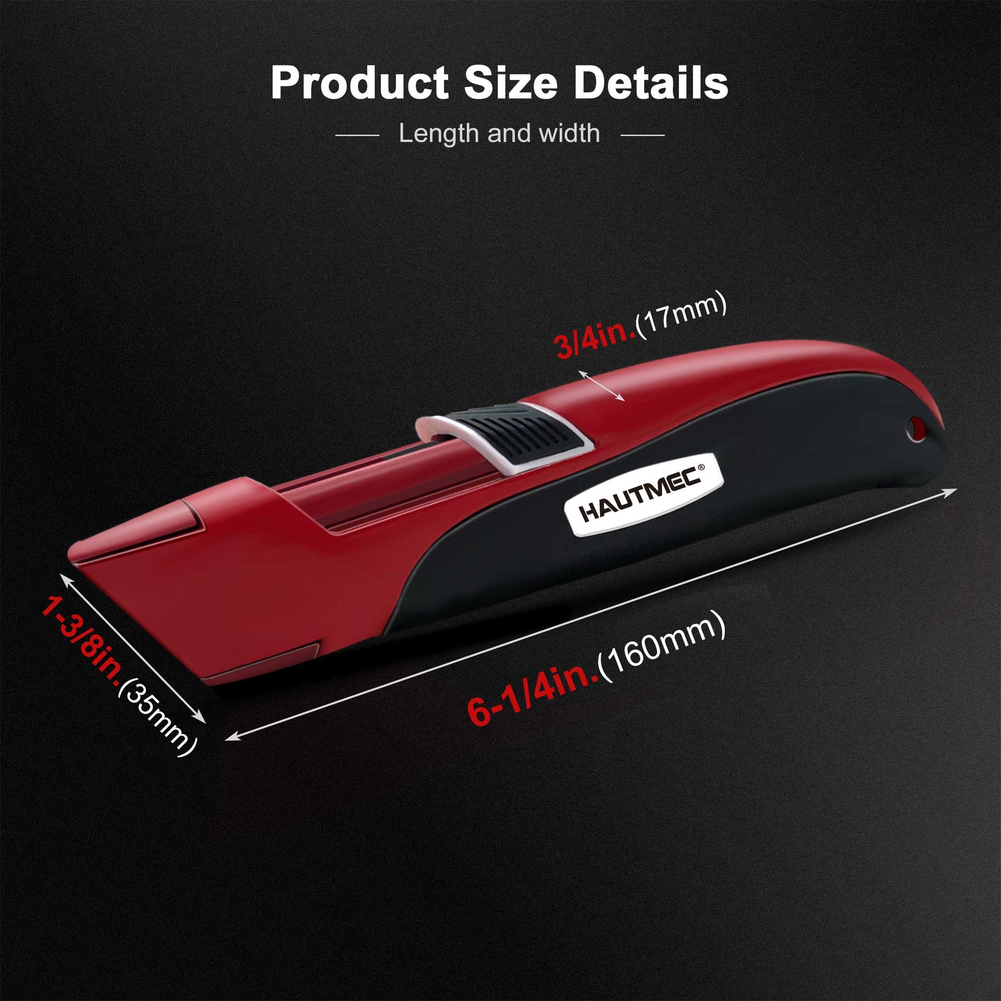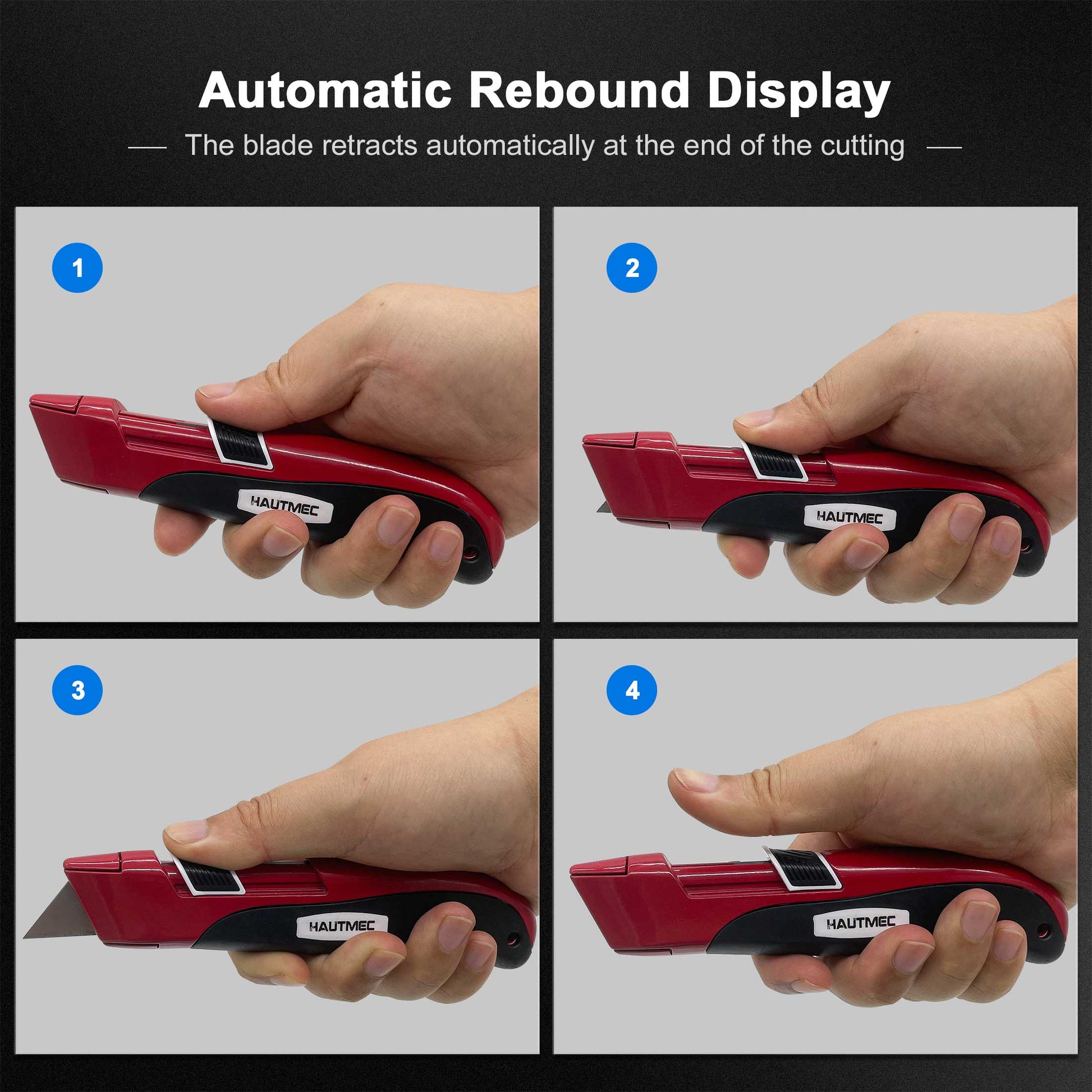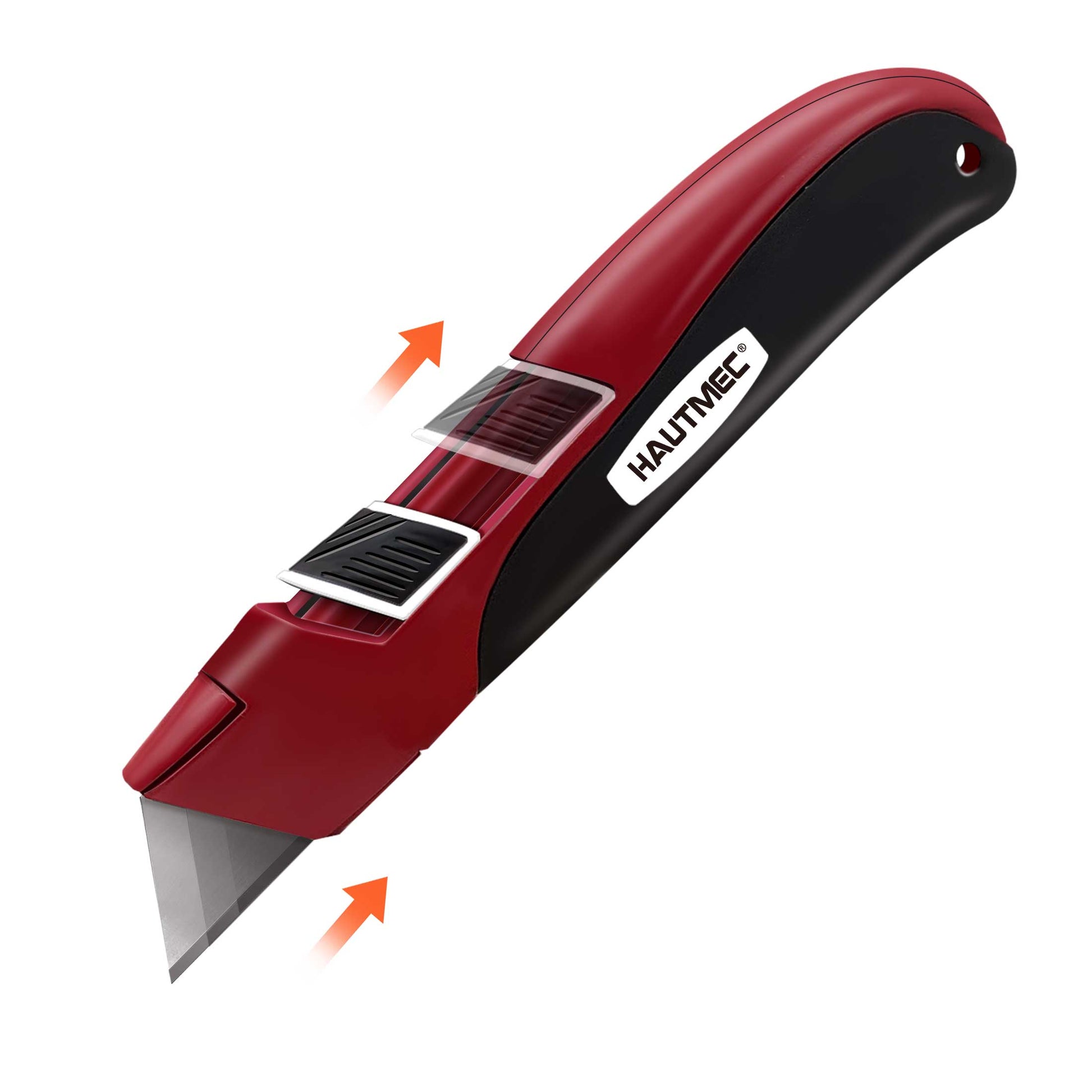 HAUTMEC High Safety Utility Knife With Double Self-Retraction Mechnism, Automatic Blade Retraction After Cuts & Self-retraction by Release Push Button, Self-retracting Box Cutter HT0195-KN