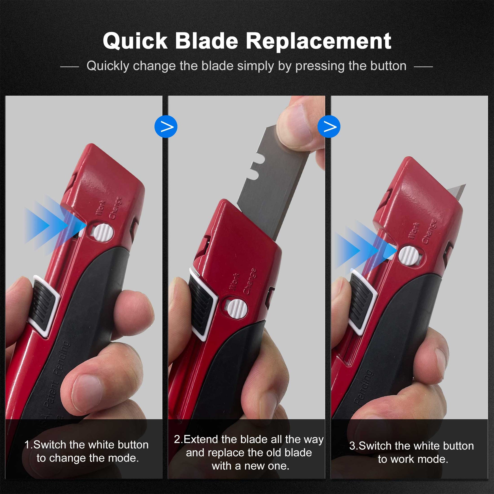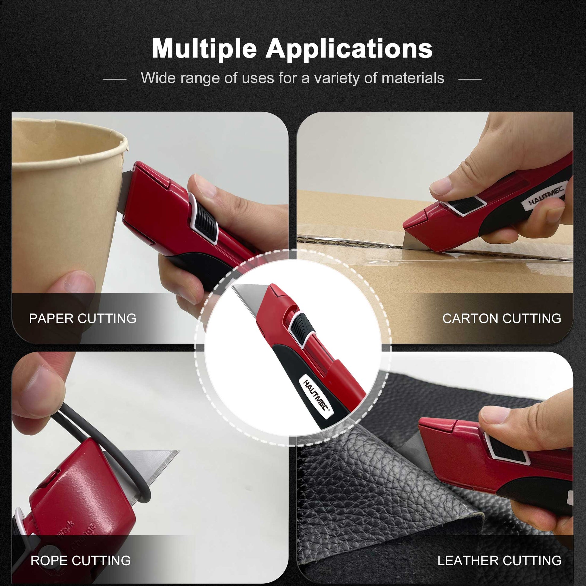 - 【Auto Retracting Mechanism】Equipped with an advanced auto-retracting design, the blade automatically retracts after cutting or the moment it loses contact with the cutting surface. This ensures that our users will not be exposed to danger as soon as the cutting is completed or when the knife slips off the cutting surface, reducing the likelihood of injury