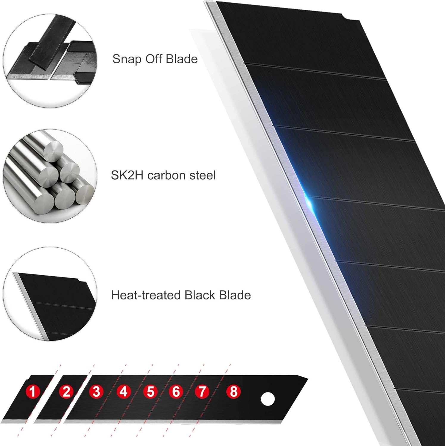 - ULTRA-SHARP BLADES - With upgraded construction, the SK2 black snap-off blades features better sharpness, edge retention than traditional blades. The heat-treated and black treated tech increases the hardness and rust-proof performance, ensuring smoother and faster cutting experience