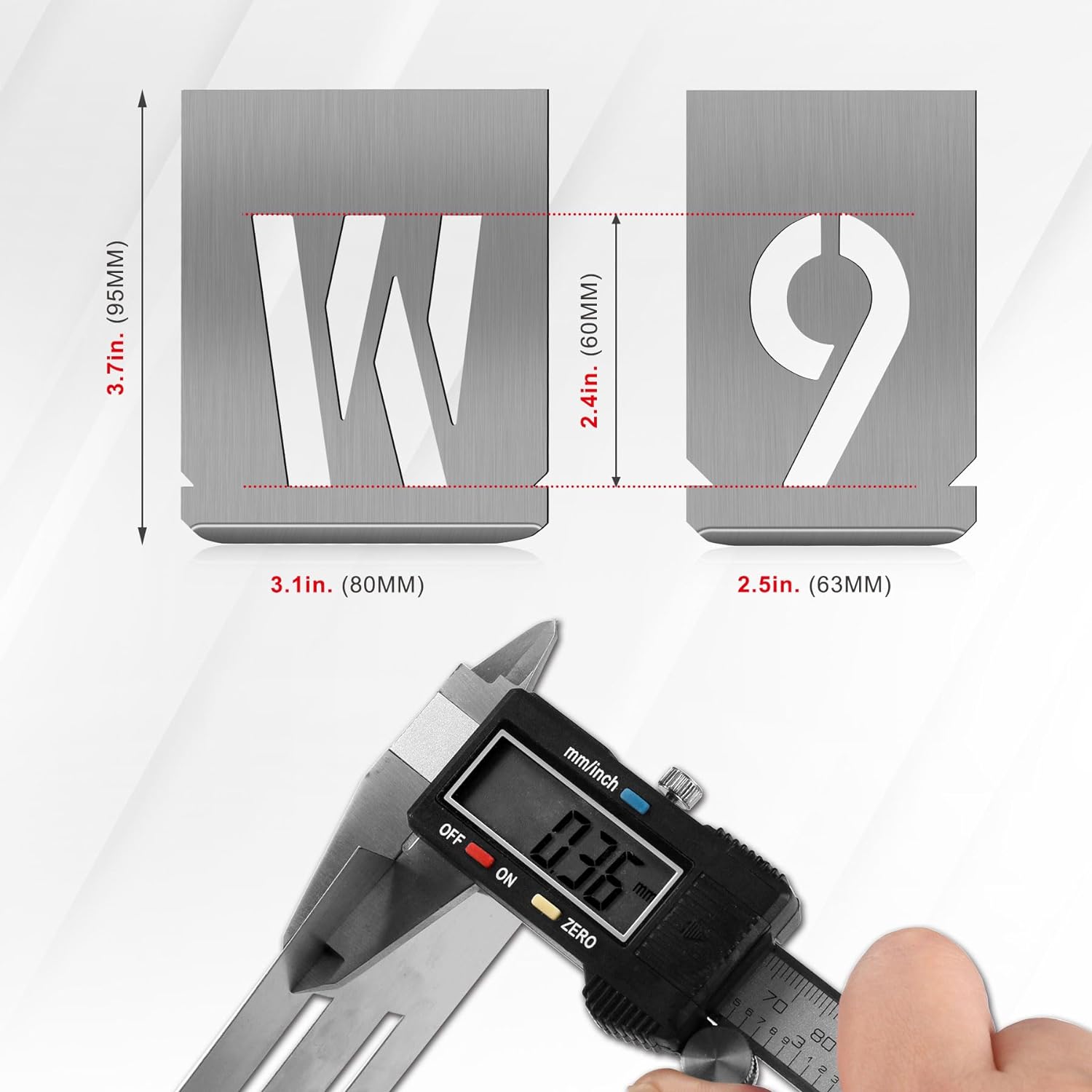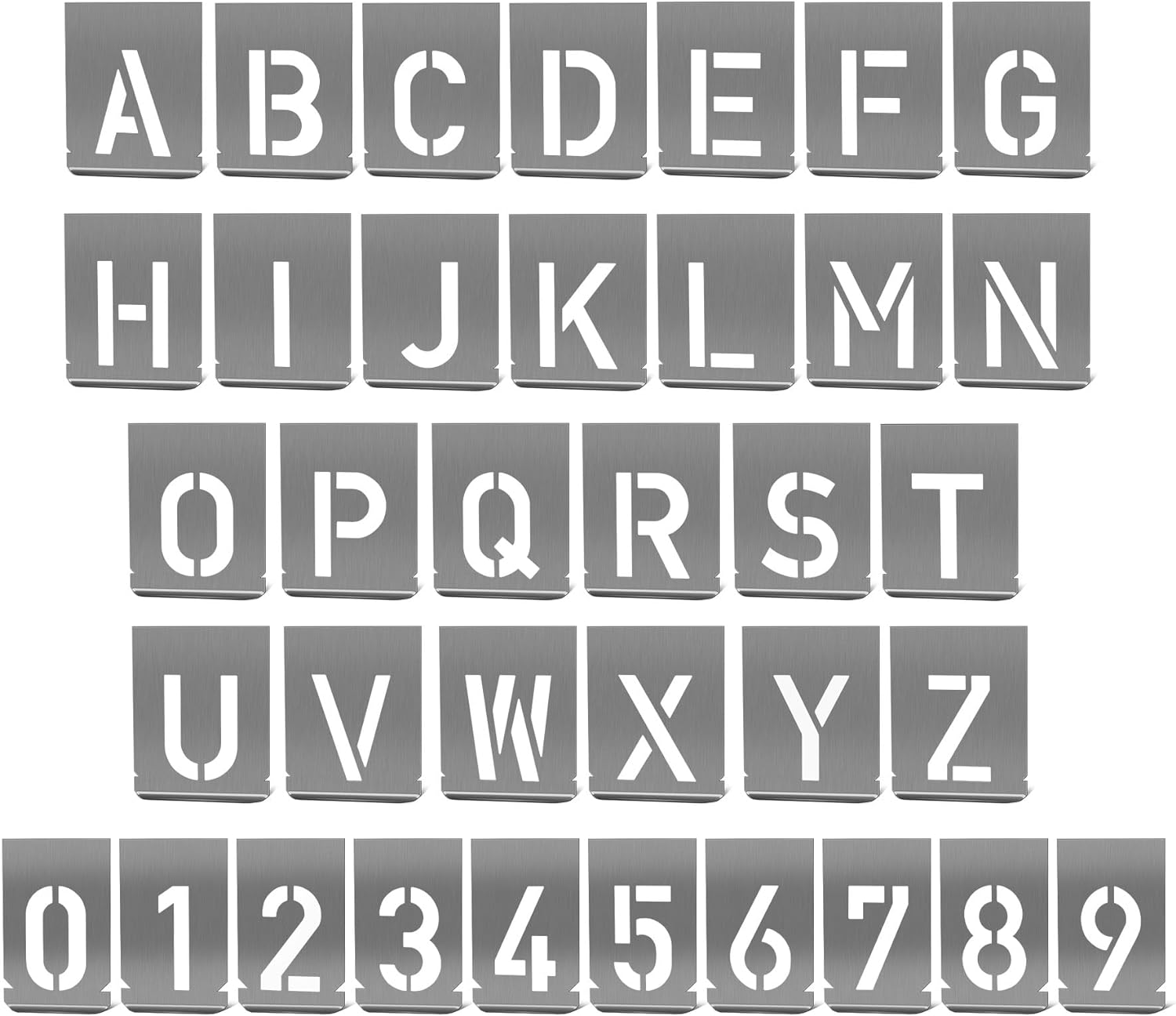 HAUTMEC 2.4Inch(60mm) Letter Number Stencils Set, 36 Pcs Stainless Steel Templates for Spray Painting, Reusable for Signs, Craf Metal DIY,Journaling, Narrow HT0347
