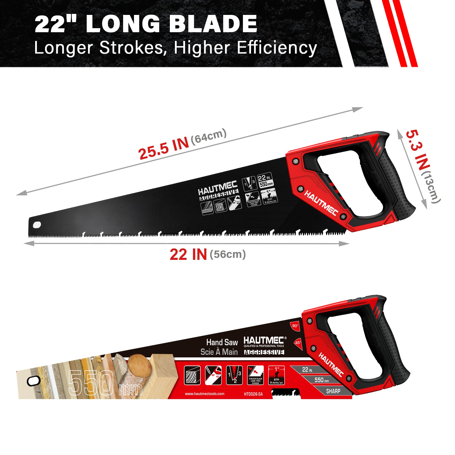 HAUTMEC 22-Inch Aggressive Hand Saw, Ergonomical Handle, Rust-proof Wood Saw With Chip Removal Design, for Heavy Duty Sawing, Trimming, Gardening of Wood, Drywall, Laminate And Plastic HT0026-SA