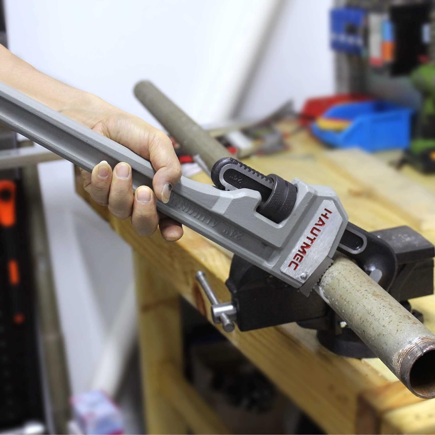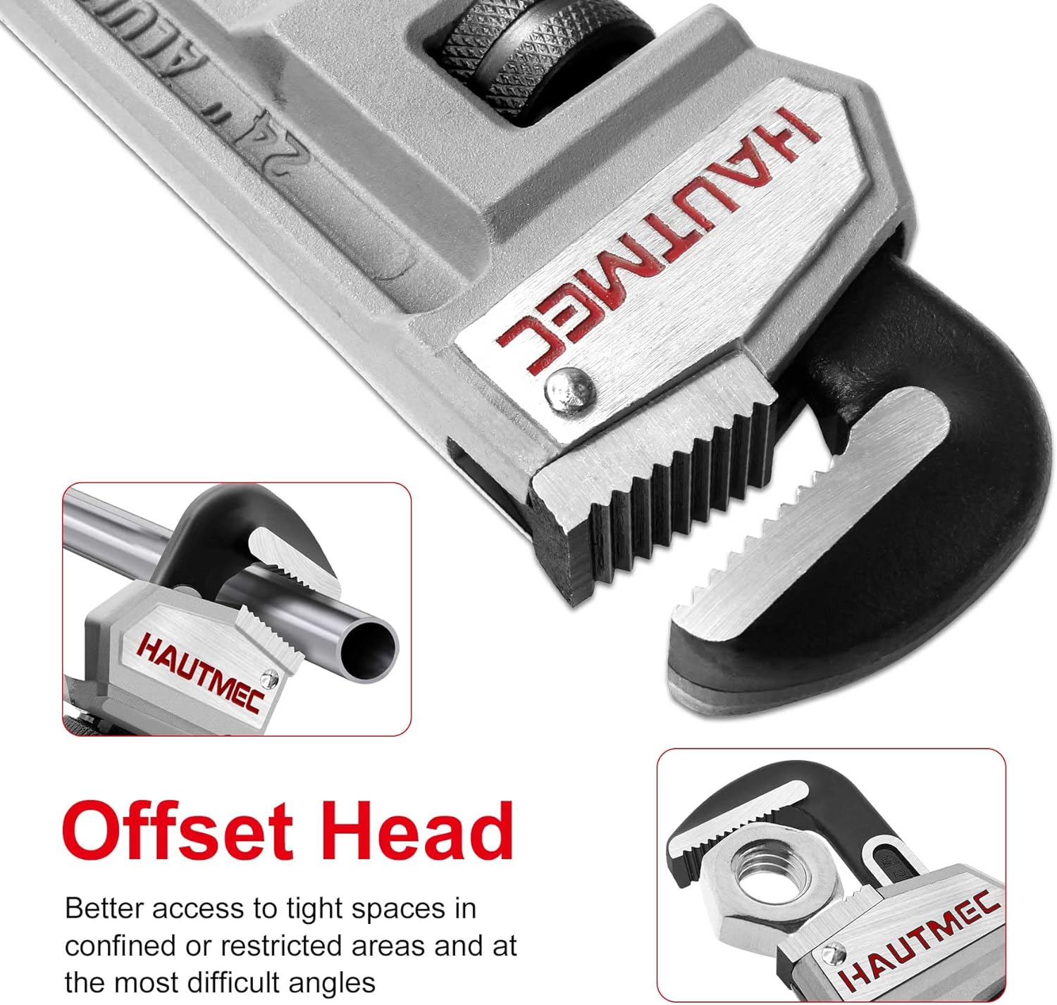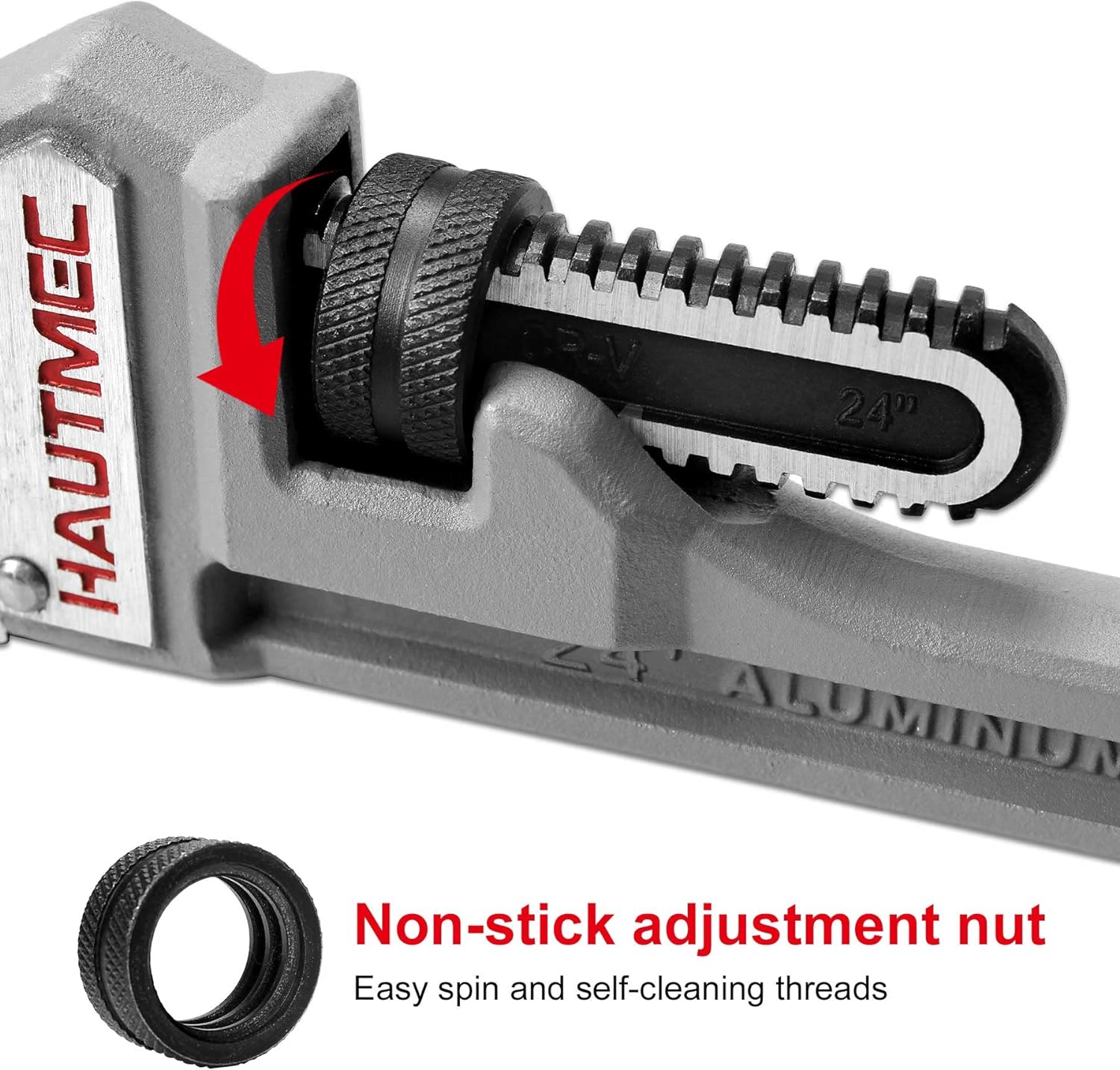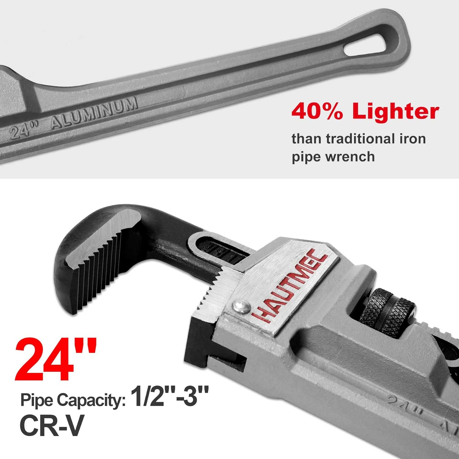 HAUTMEC 24 Inch Heavy Duty Aluminum Straight Pipe Wrench, Adjustable Plumbing Wrench, 3" Jaw Capacity, for Pipes, Tees, Ball Valves and Other Objects HT0187-PW
