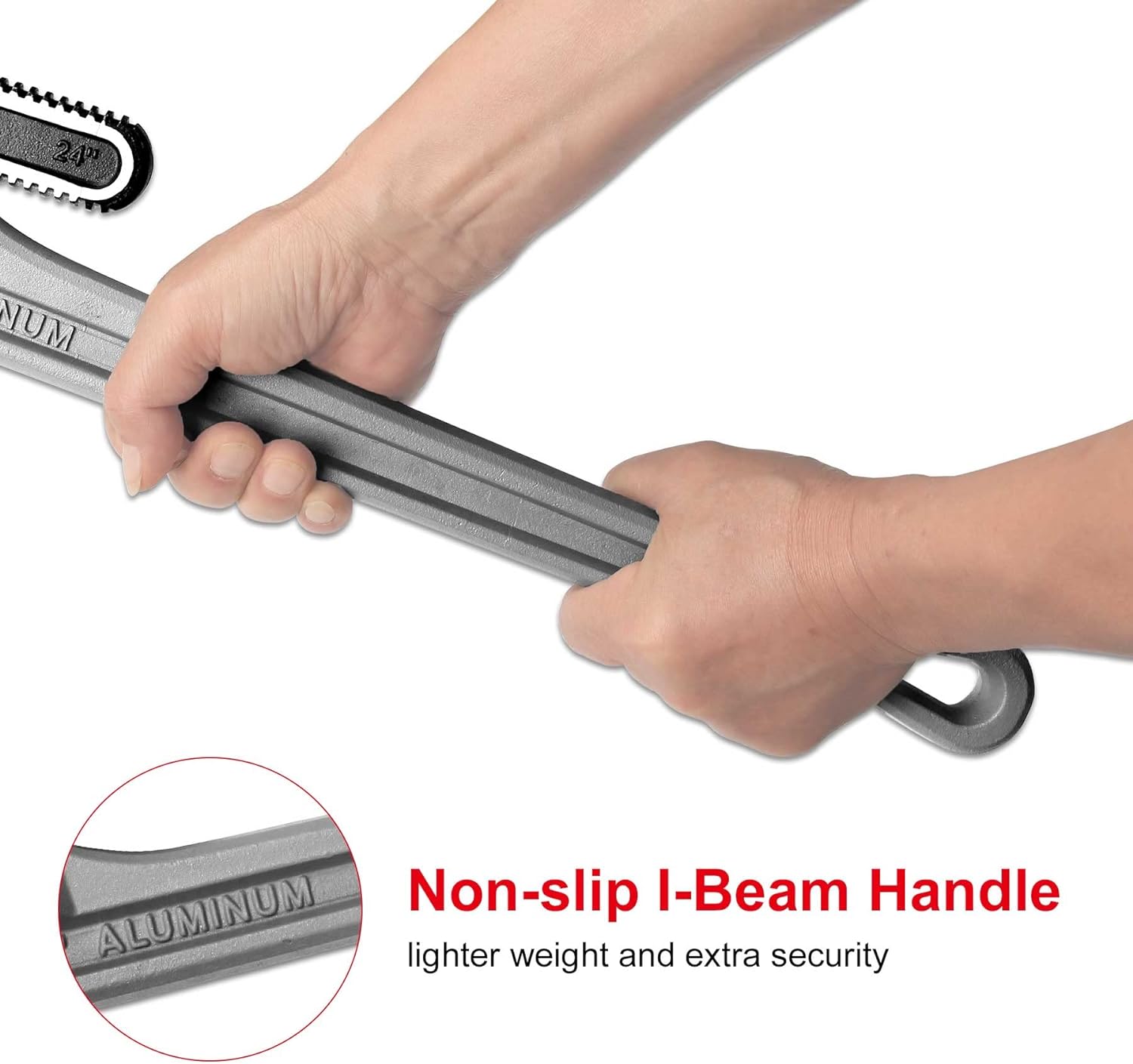 - ERGONOMIC AND LABOR-SAVING: Longer aluminum non-slip I-Beam handle features a lighter weight to ensure safe use and longtime use. Ergonomic design makes it easier to tighten or loosen pipes or remove stubborn bolts
