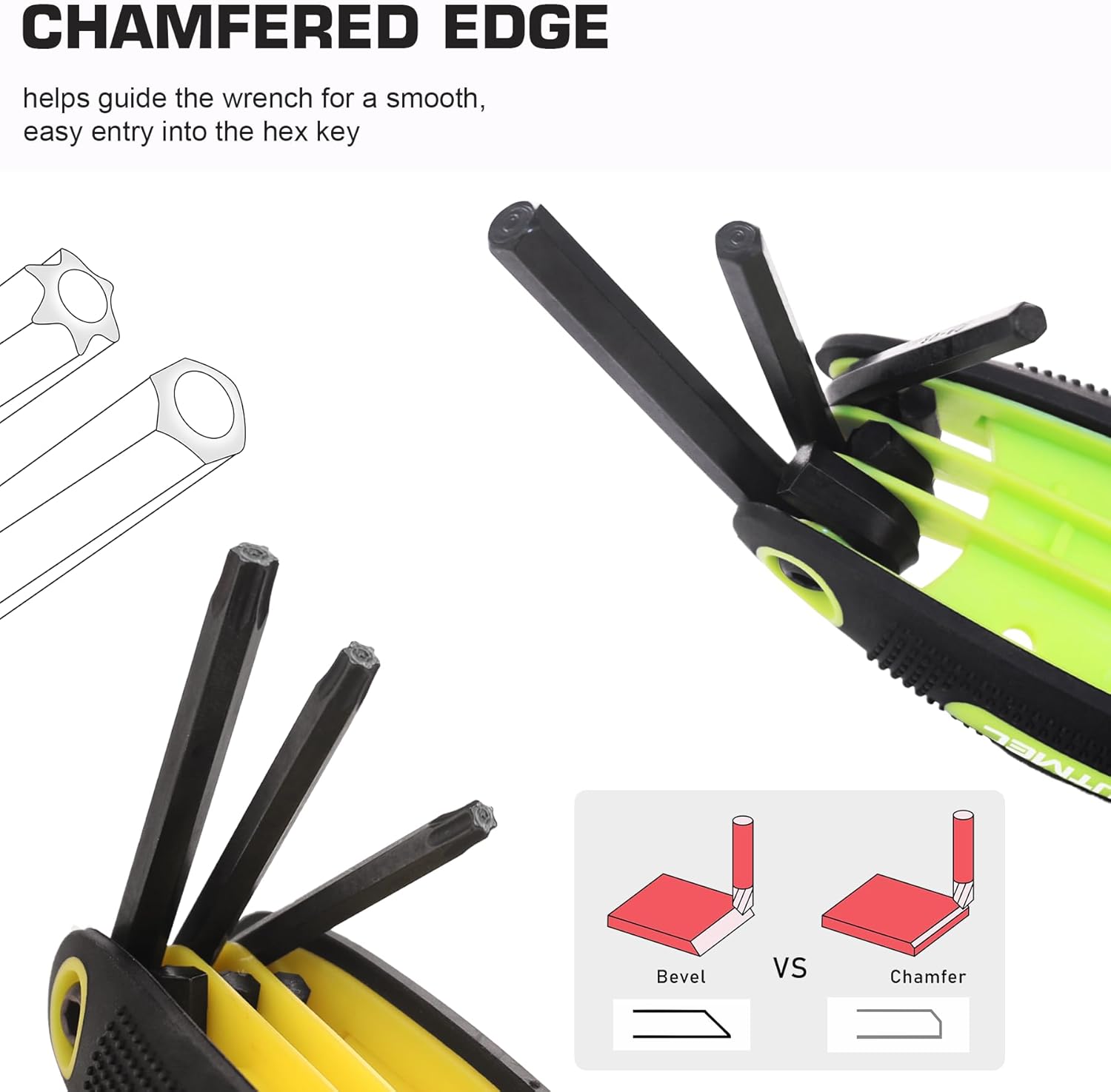 - Premium Quality: 3 piece hex wrench set is made of heat treated chrome vanadium steel for strength and durability; Hex keys coated with black-oxide finish resist rust and corrosion, which stands up to tough place. Chamfered ends helps guide the wrench for a smooth, easy entry into the fastener.