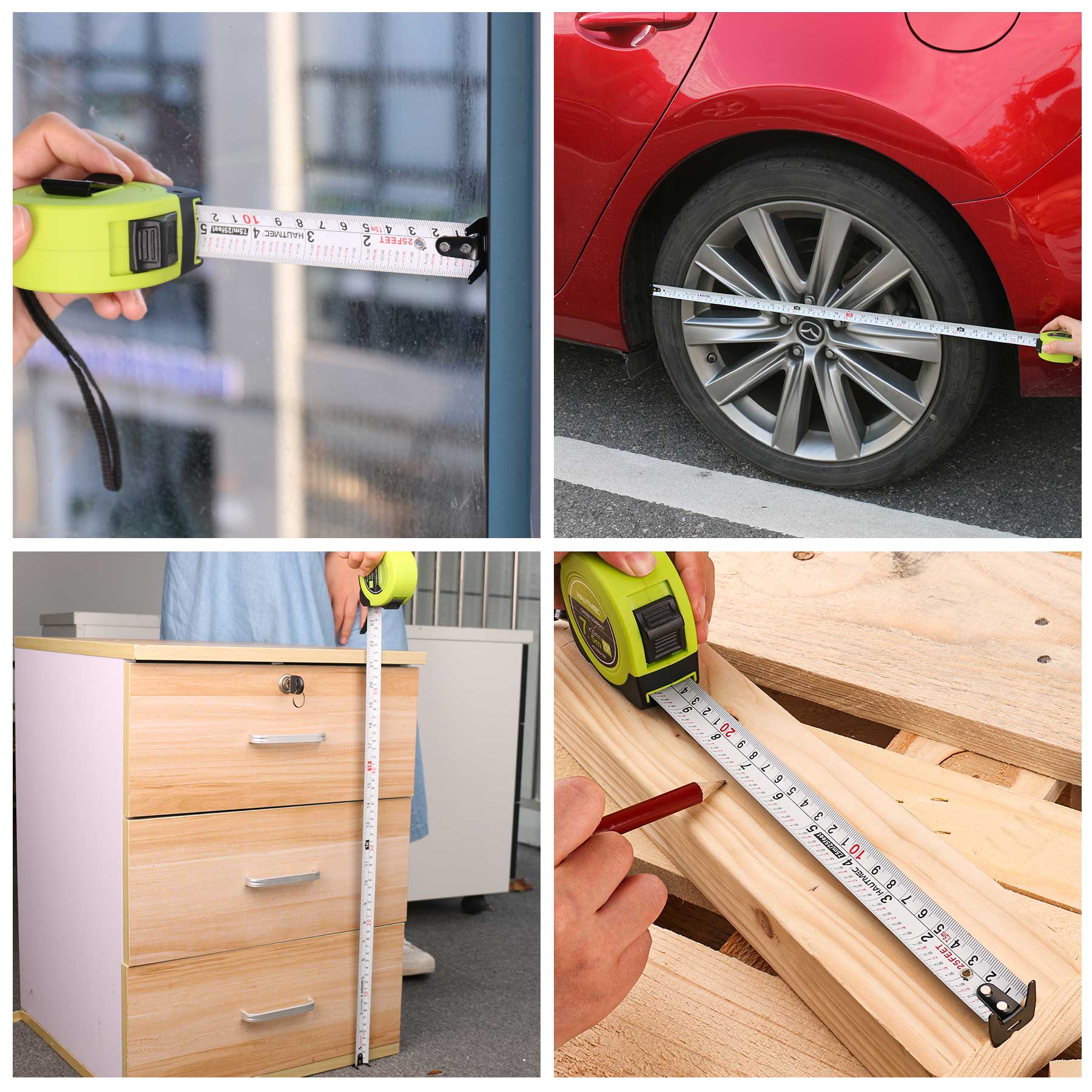 - THICK BLADE: The 25FT tape measure features a 25mm-wide thickened blade that won't break with repeated use, remaining straight up to 8FT/2.4 meters. It has easy to read numerals with accurate dual-sided metric/imperial scales.