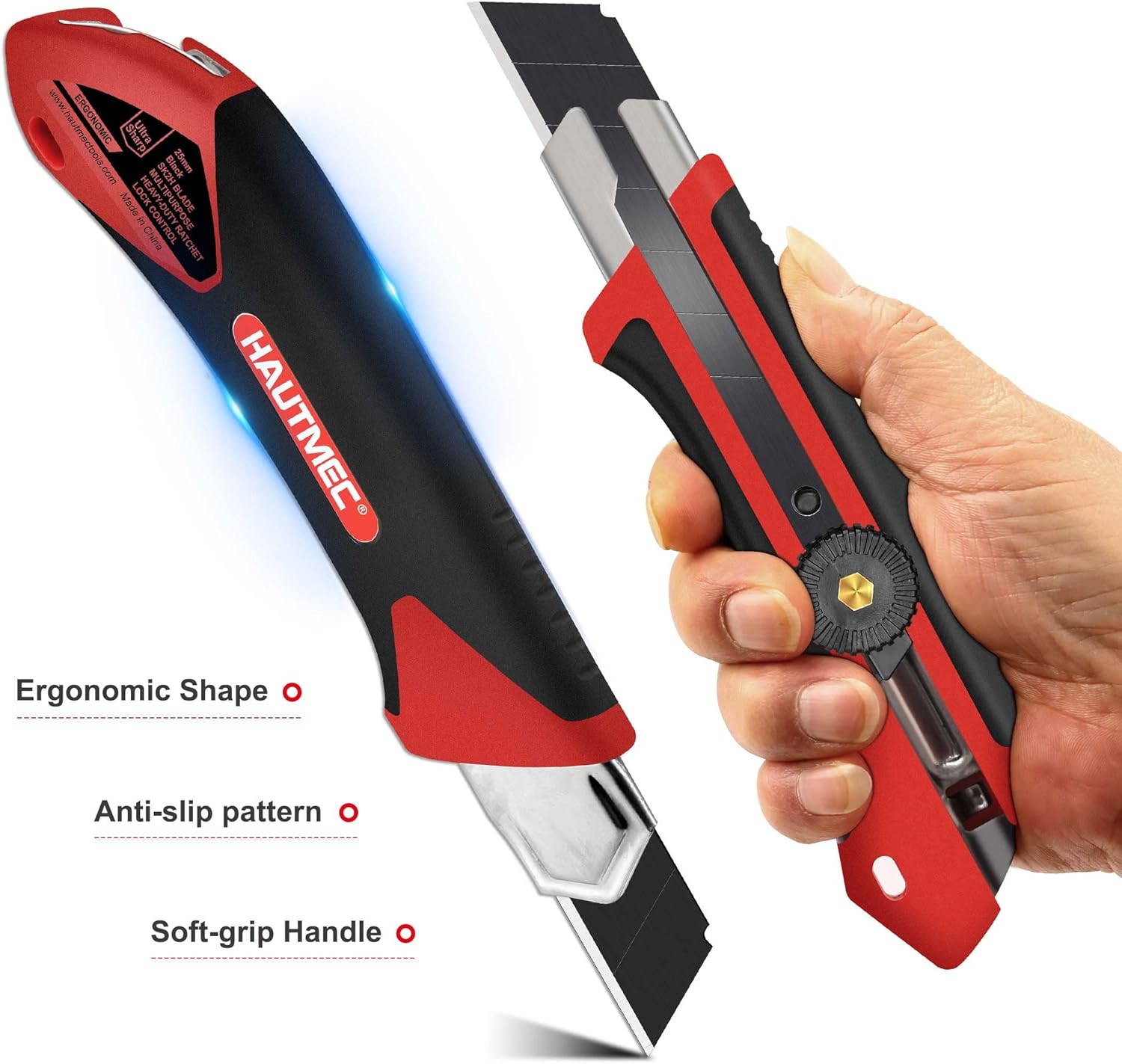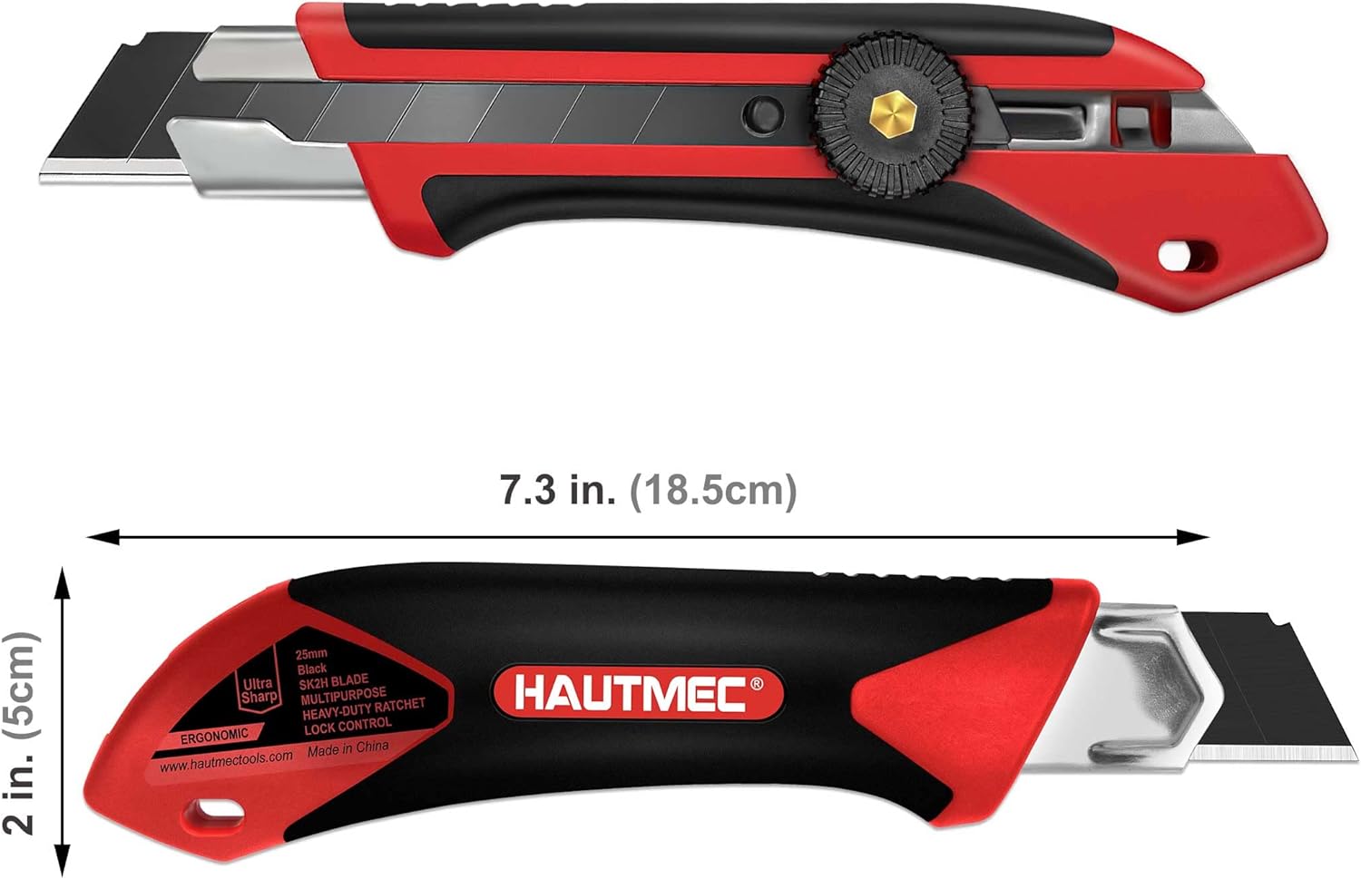 HAUTMEC 25mm Extra Heavy-Duty Utility Knife, Multi-Purpose Snap-off Box Cutter, Ratchet-lock Mechanism, Reinforced Fiberglass Handle HT0250-KN