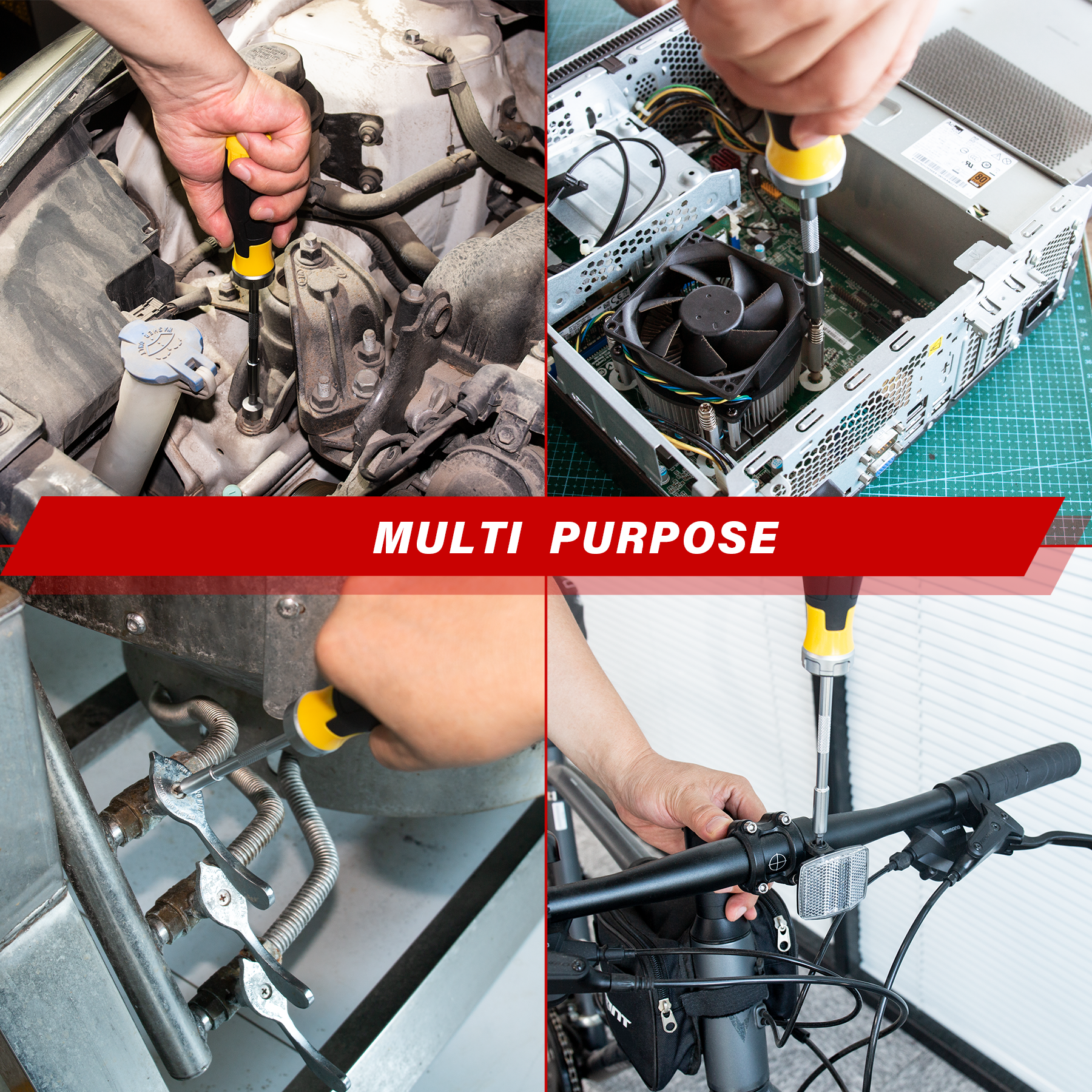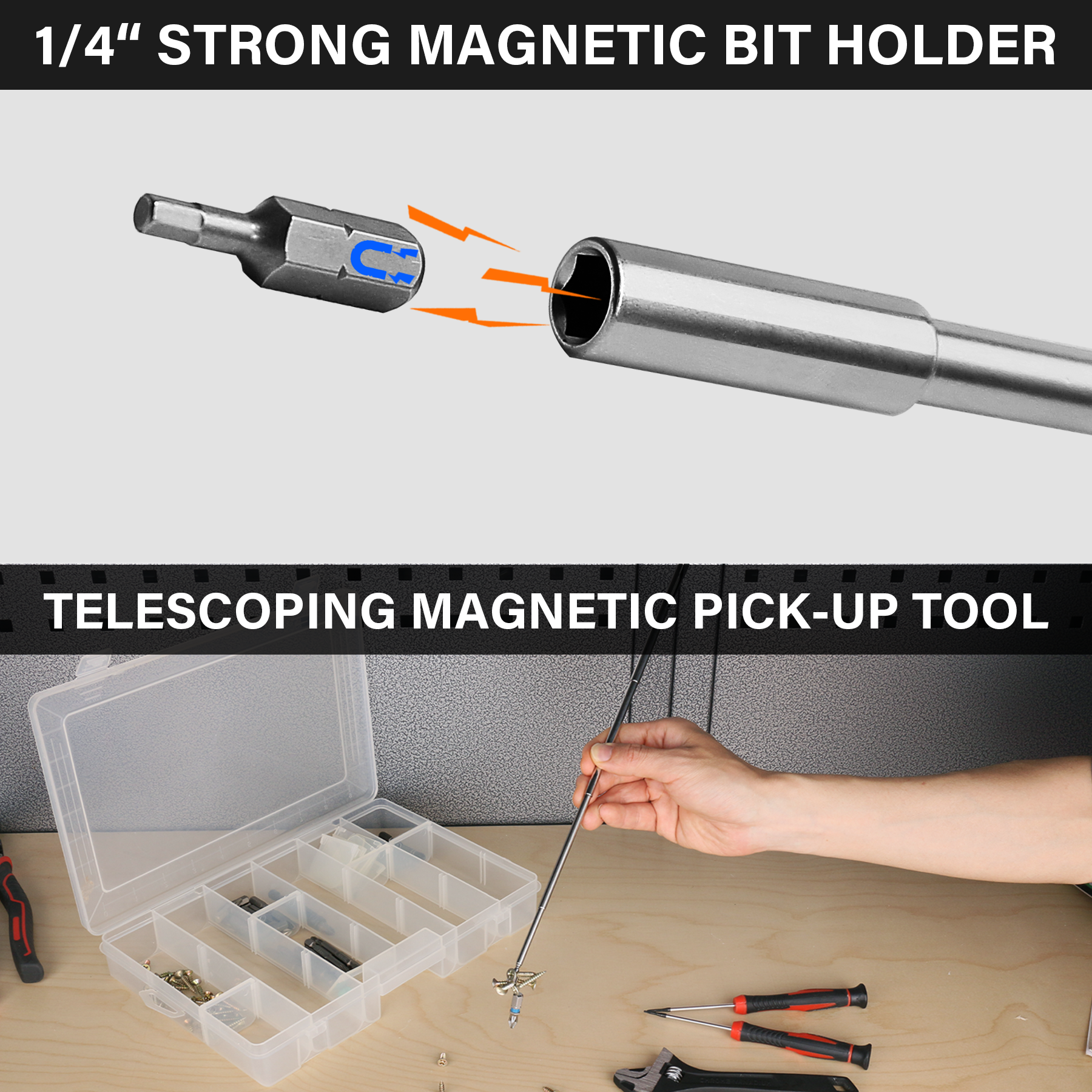 - Magnetic Pick-up Tool: The telescoping magnet stick (extends up to 24") grabs dropped screws, nuts, or metal parts in tight spaces—perfect for auto repair, HVAC work, or electronics