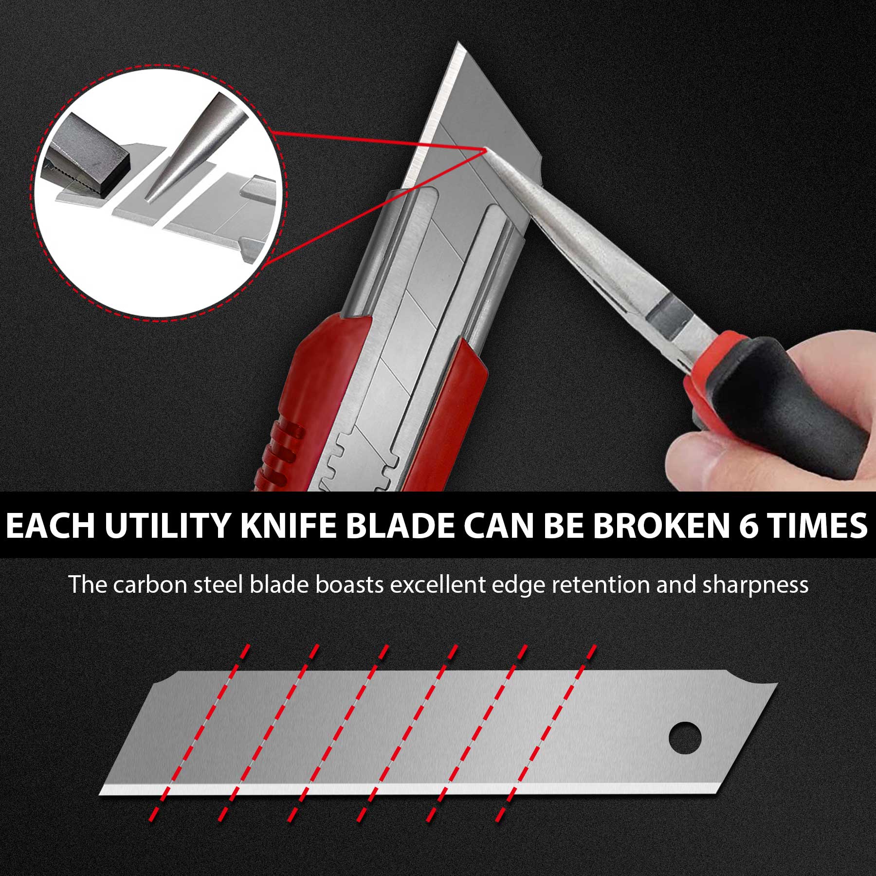 - 【Quality Sharp Blade】Blades play a vital role in knives. This knife has 3pcs 25mm Extra Heavy-Duty SK4 blades which are greater in edge retention, thickness, sharpness and durability than traditional blades, effectively cutting through a variety of materials like drywall, cardboard, cartons, leather, carpets and more