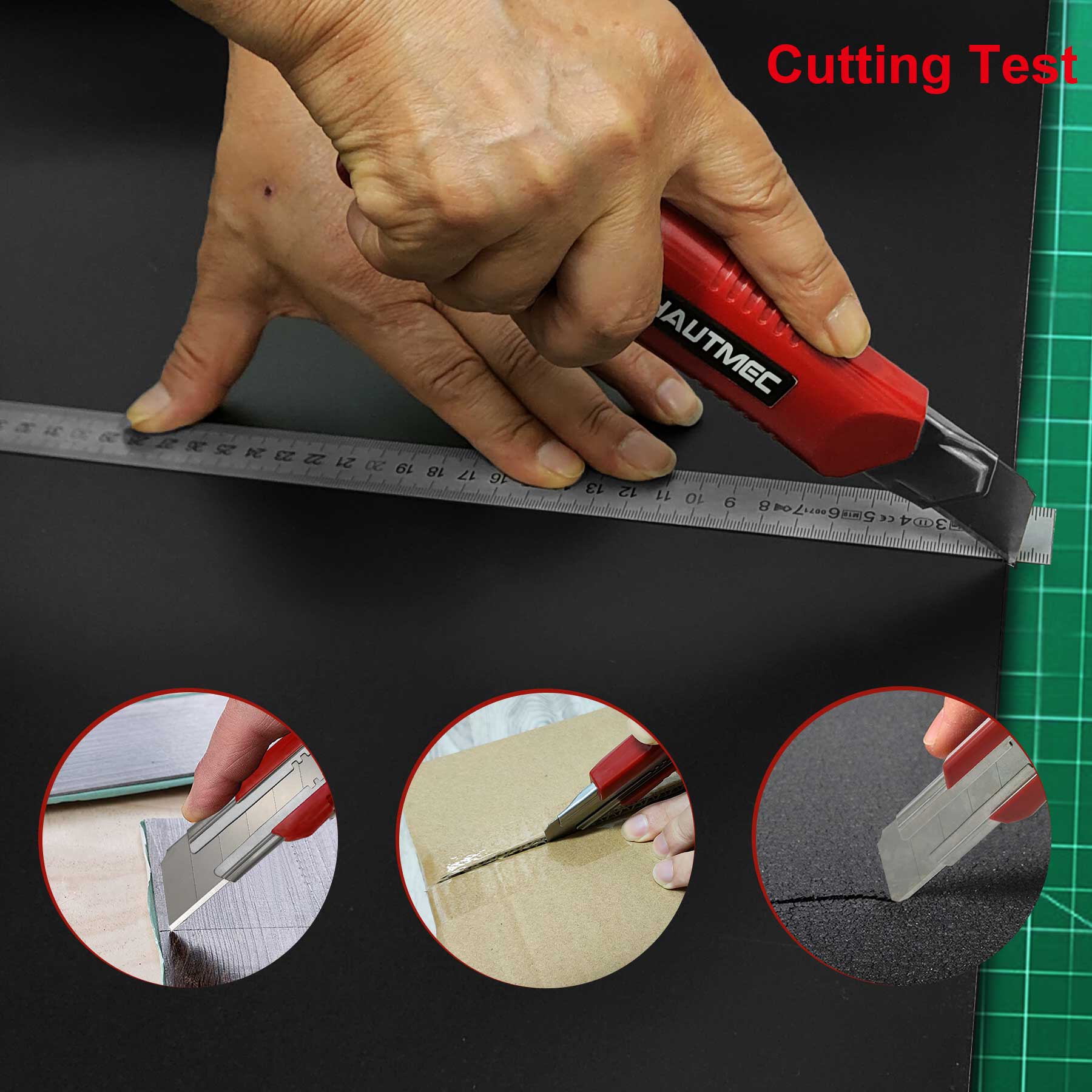 - 【Extra Heavy Duty Knife】HAUTMEC 25mm Extra Heavy-Duty Utility Knife will satisfy your heavy-duty job site expectations. It has durable thick blades which cut through hard materials easily. With its sturdy handle, you are free from worries caused by accidental dropping and pounding. The blade is secured in stainless steel channel which provides a strong support for the blade to cut