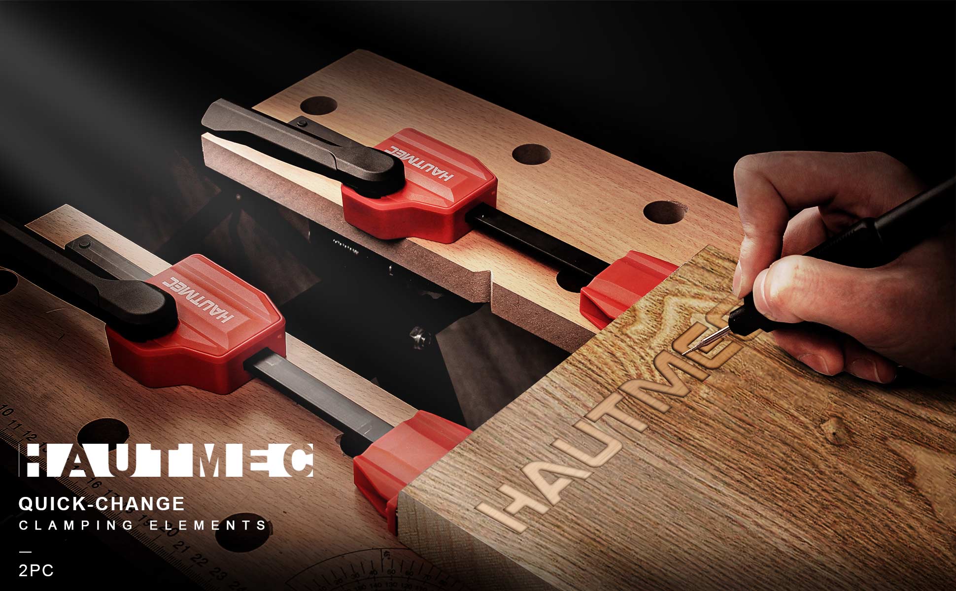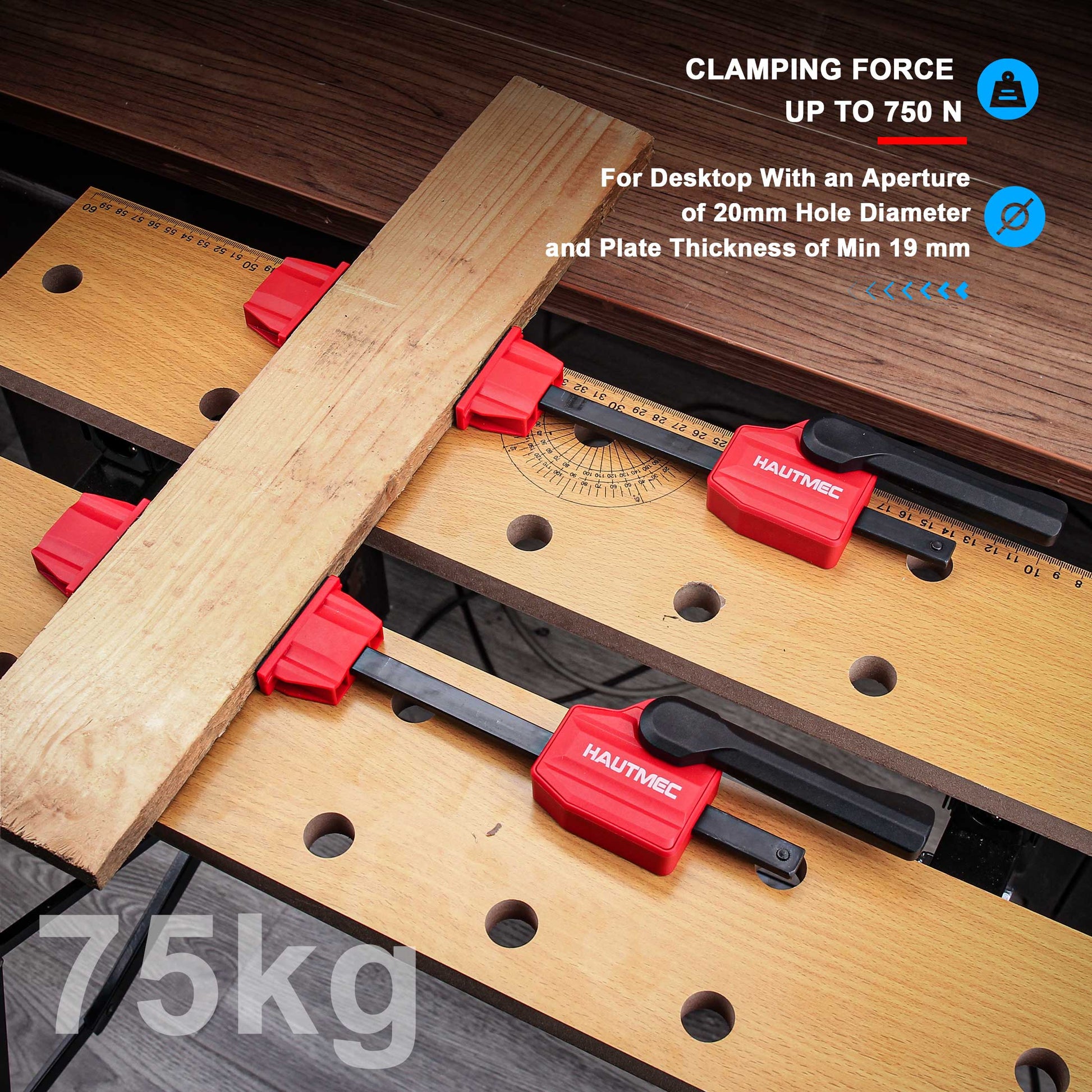 HAUTMEC 3/4" Bench Dog Clamp, Quick-Release Hold Down Clamps for 19mm Dog Holes, 170 Lbs Clamping Force, Adjustable Bench Clamps for Woodworking, Assembling, Gluing, 4 Pack - HT0276-2pc