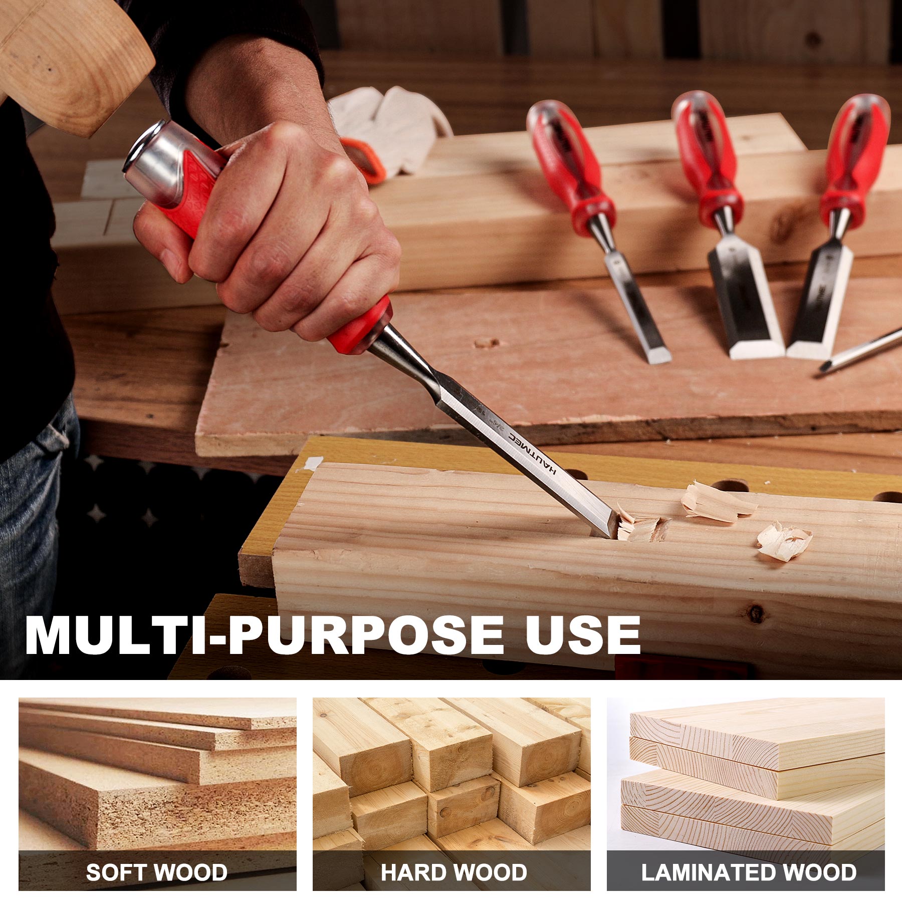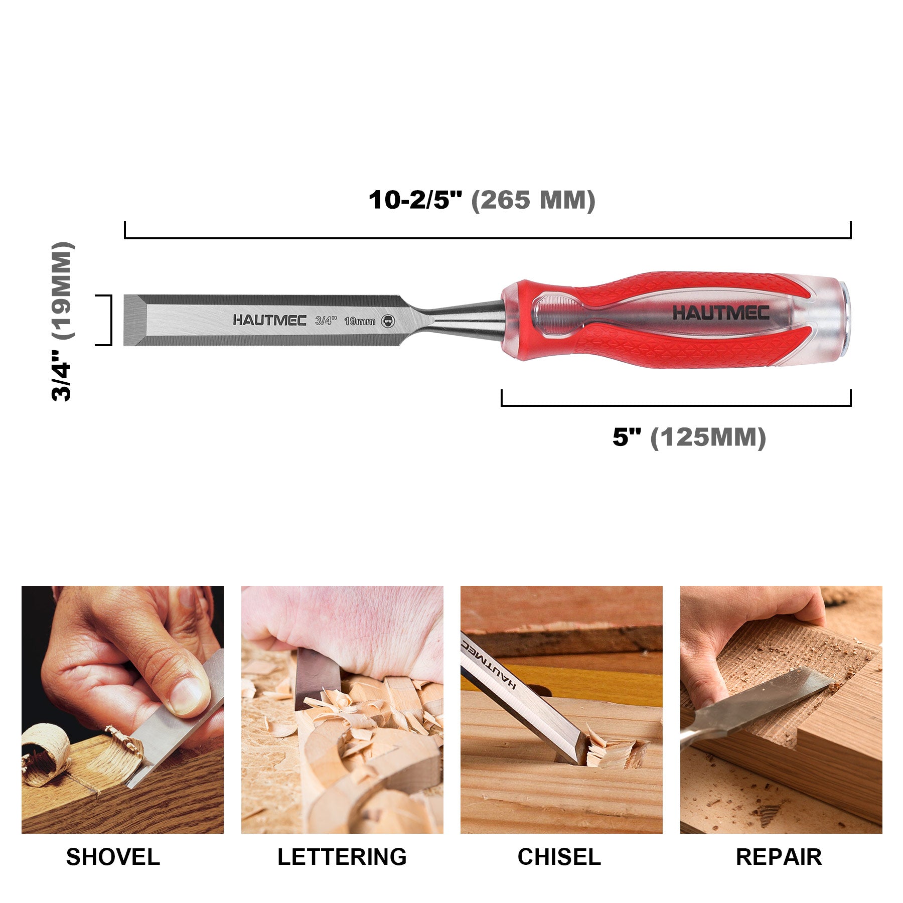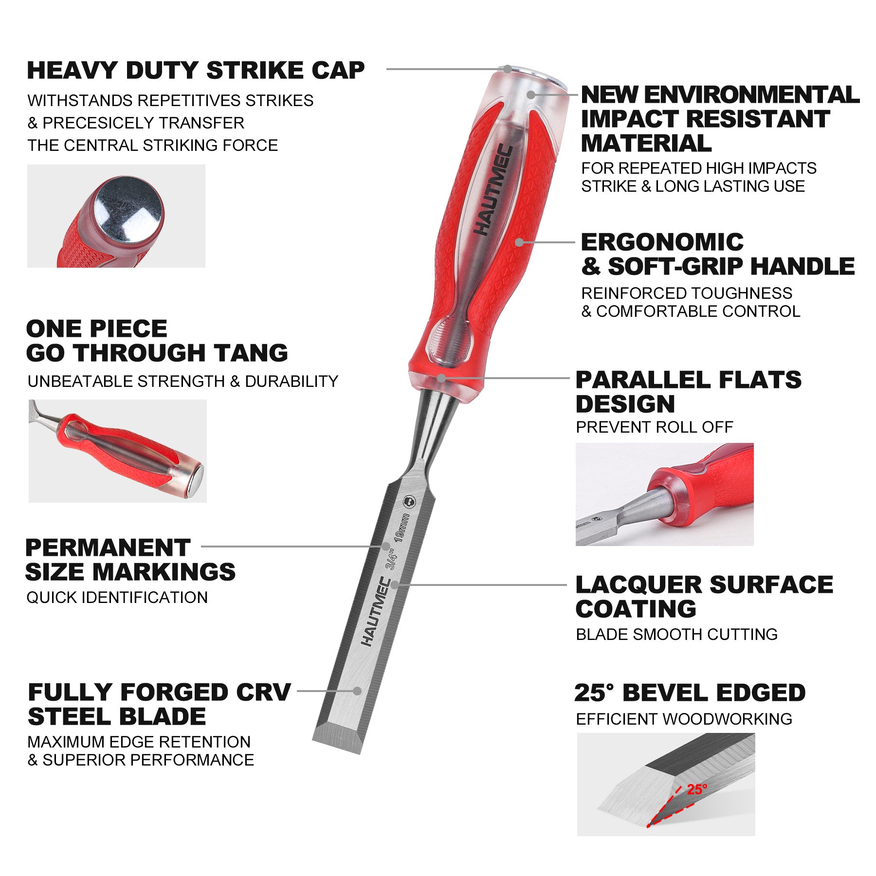 HAUTMEC 3/4" High Impact Wood Chisel for Woodworking, Drop-Forged CRV Steel, Beveled Edge Blade, Ergonomic Handle Wood Chisel for Carpentry,Wood Carvers, HT0361