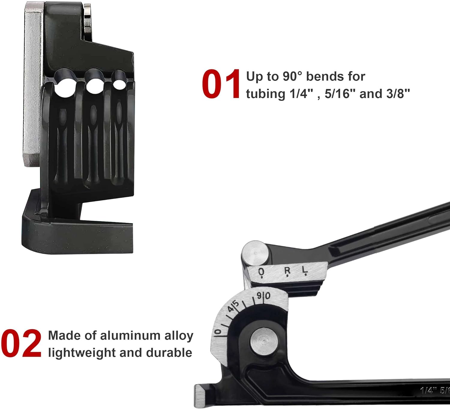- 【3-in-1 Capacity】Suitable for bending 1/4, 5/16, 3/8 (6, 8, 10mm) O.D tubing, can be used for copper, brass, aluminum and thin steel pipes