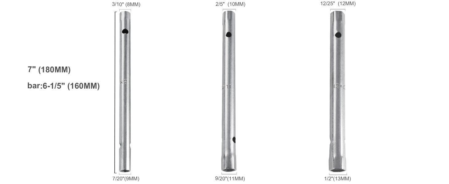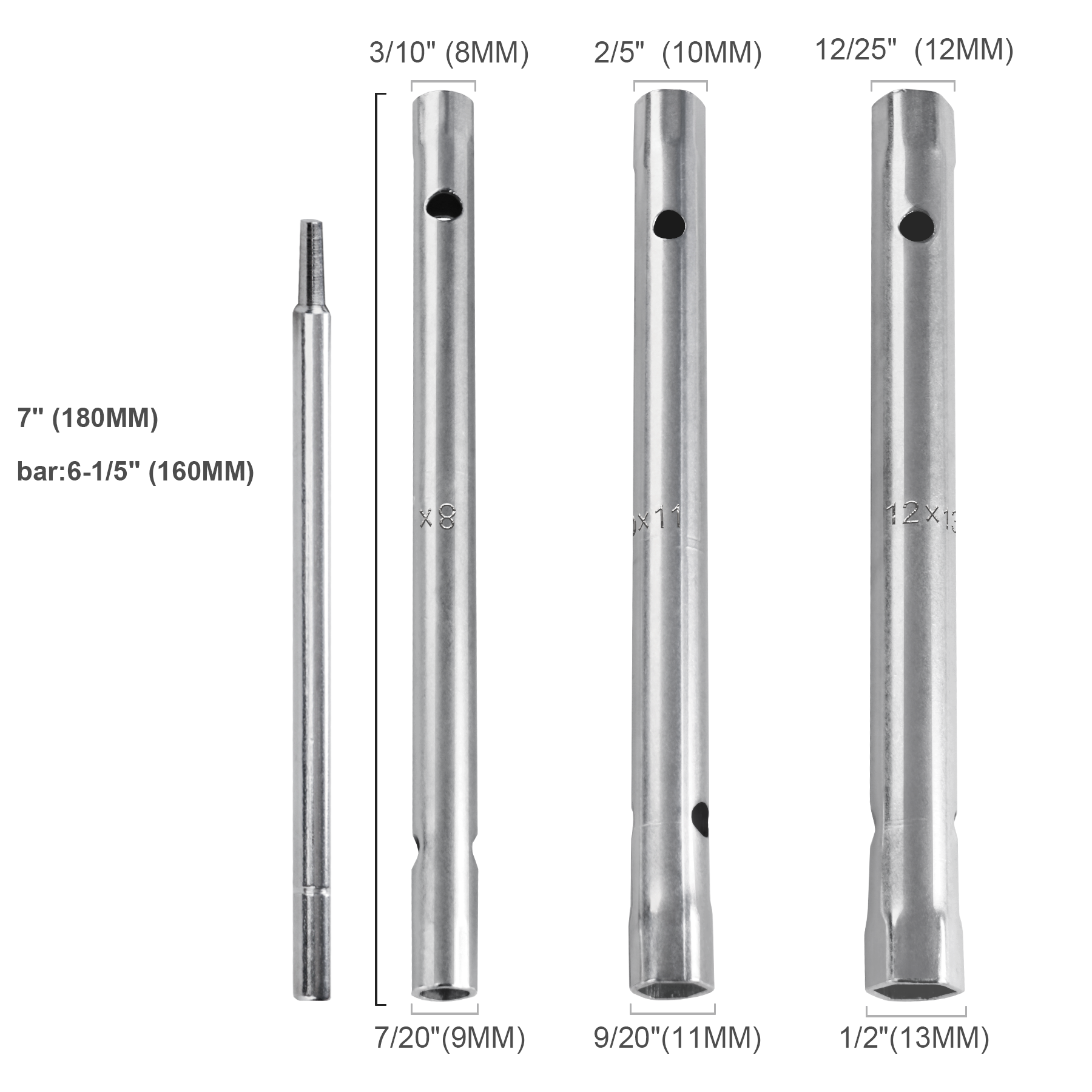 - Includes: 3pcs double end design wrench socket(8/9mm, 10/11mm, 12/13mm) and 1 tommy bar. Please confirm the wrench socket size before ordering.
