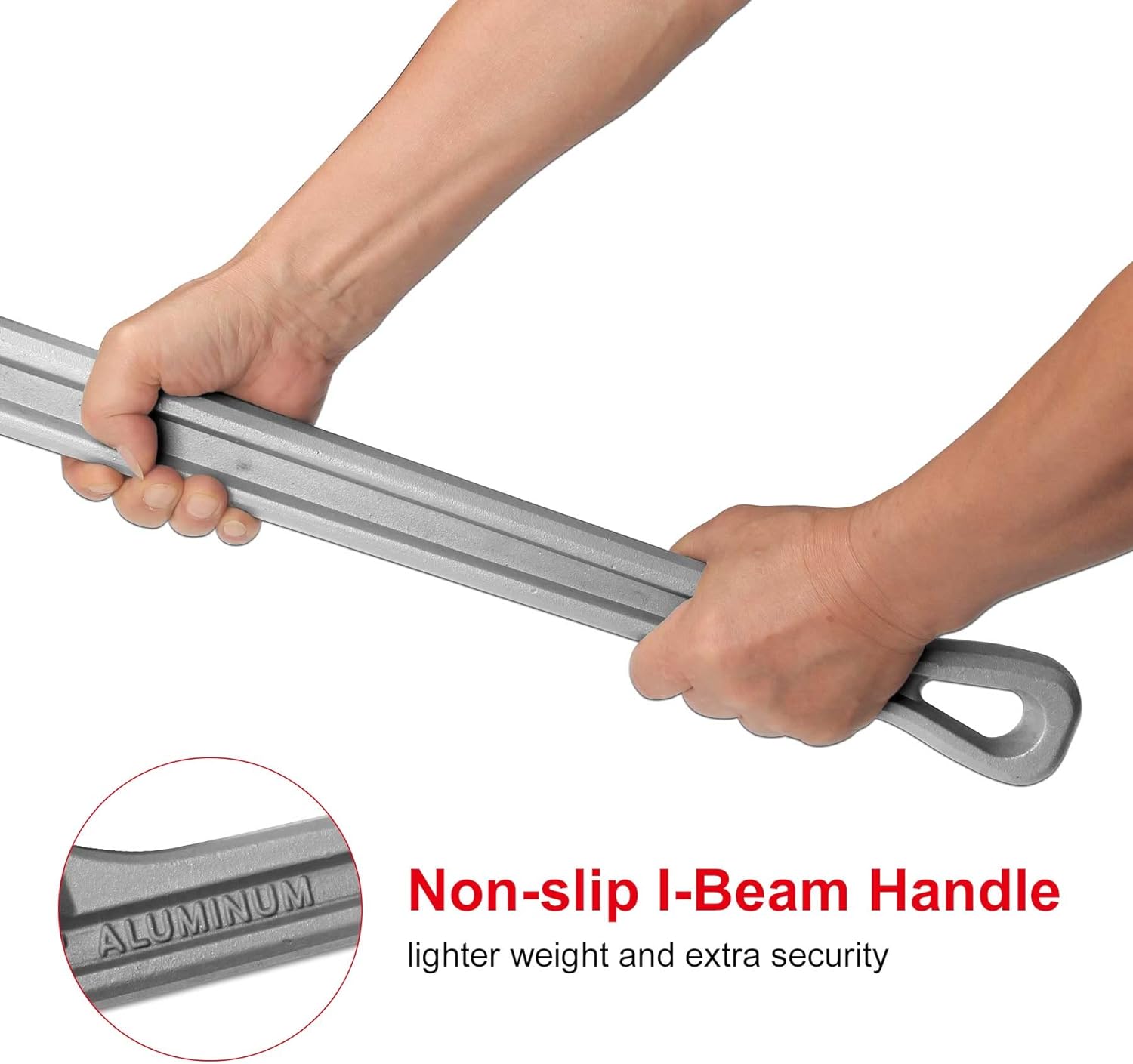- ERGONOMIC AND LABOR-SAVING: Longer aluminum non-slip I-Beam handle features a lighter weight to ensure safe use and longtime use. Ergonomic design makes it easier to tighten or loosen pipes or remove stubborn bolts. "