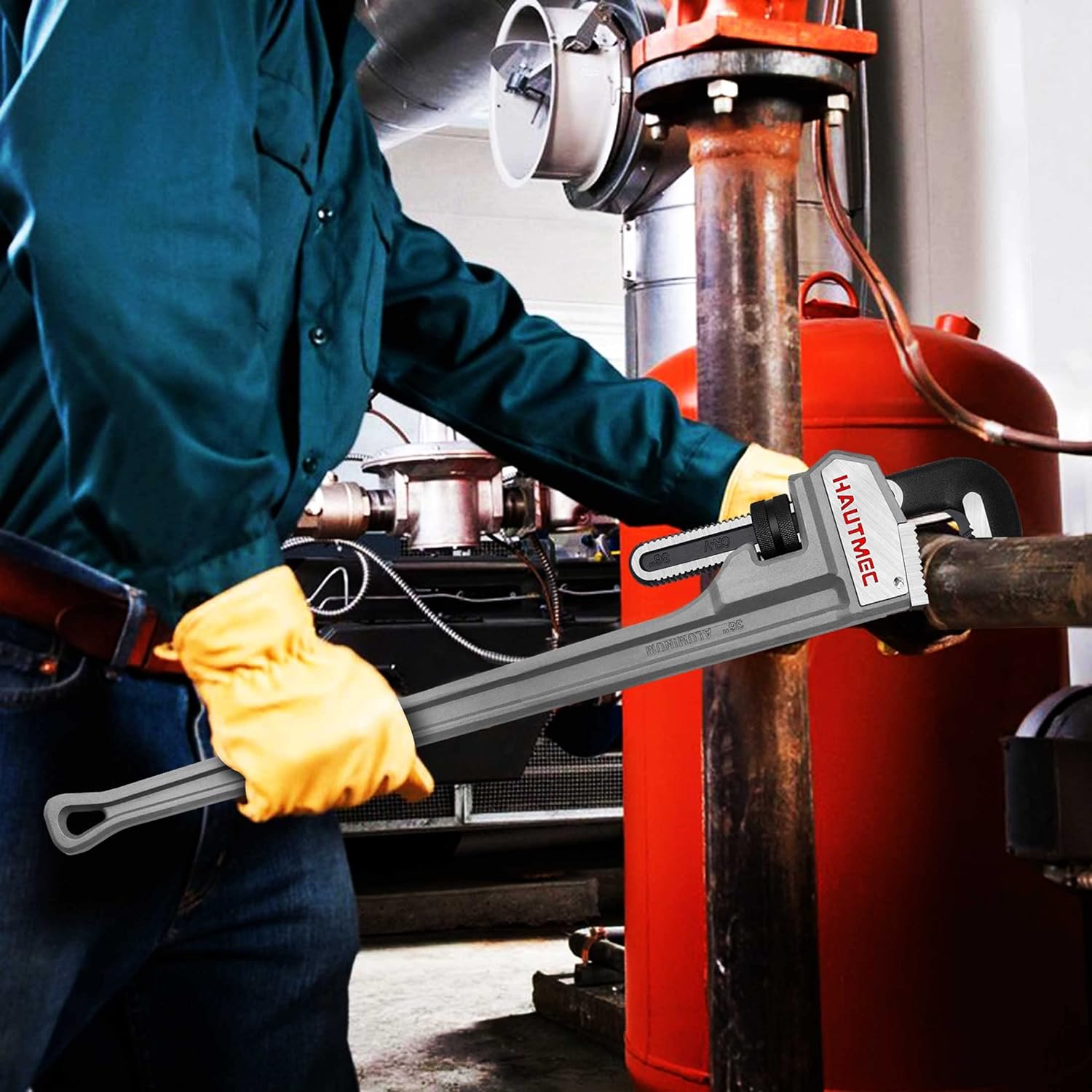 HAUTMEC 36 Inch Aluminum Straight Pipe Wrench, Heavy Duty Adjustable Plumbing Wrench, 4" Jaw Capacity, for Pipes, Tees, Ball Valves and Other Objects HT0188-PW